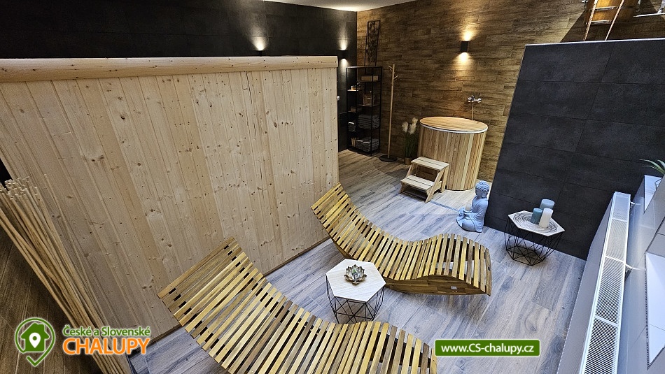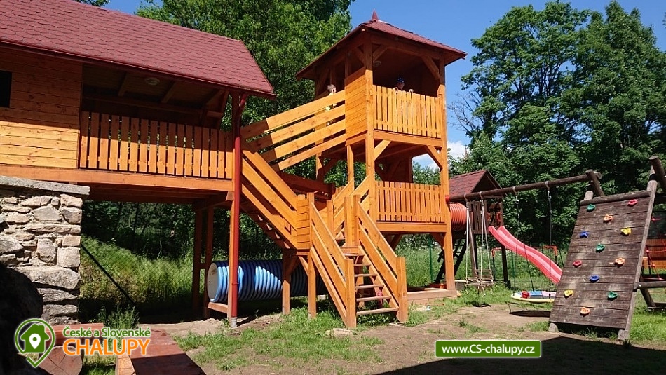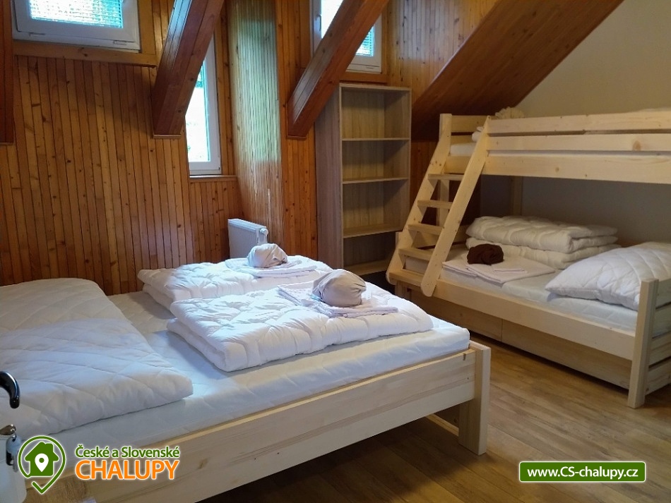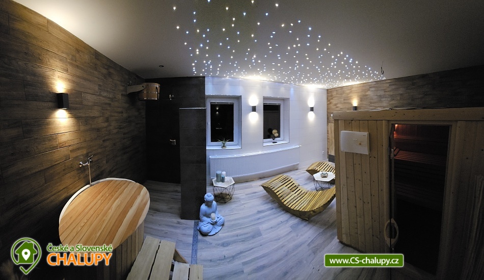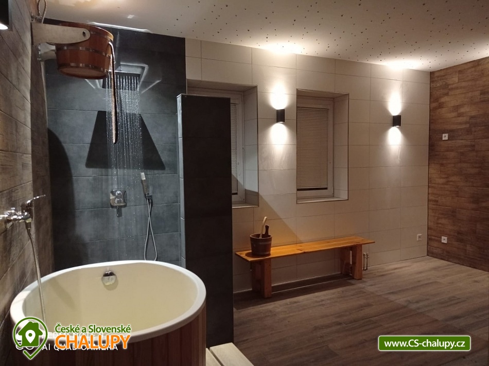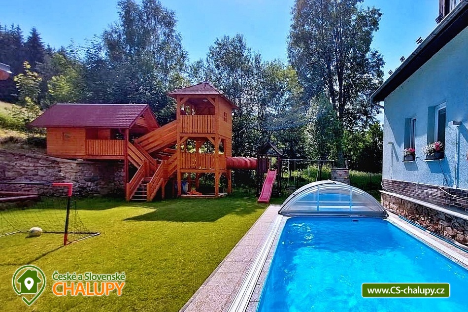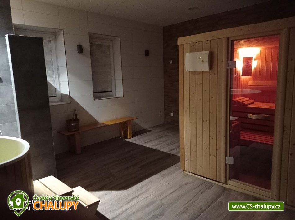 Chalupa s vyhřívaným bazénem a wellness na pomezí Jeseníků a Orlických hor, poloha nedaleko rozhledny Suchý Vrch a areálu Buková Hora na Dolní Moravě. Chalupa nabízí 10 neprůchozích pokojů, max kapacita až 44 osob, každý pokoj s vlastním sociálním zařízením. K posezení slouží velká společenská místnost s barem, plně vybavenou kuchyň, dětskou hernu, ping-pong a stolní fotbálek. Připojení na Wi-Fi je samozřejmostí. Kolem chalupy je rozlehlá oplocená zahrada s velkou pergolou s posezením, grilem a ohništěm. Pro děti je na zahradě k dispozici domeček, který je večer osvětlený, s prolézačkami, tunelem, skluzavkou, houpačkami, lezeckou stěnou a pískovištěm. Děti si mohou zaskákat na velké trampolíně, v letních měsících se pak osvěžit ve vyhřívaném bazénu se zastřešením a slanou vodou. K dispozici jsou také branky na fotbal. V zimních měsících je pak pro vás na ohřátí připravený dřevem vyhřívaný sud s vířivkou pro 6 až 8 osob a wellness místnost se saunou či ochlazovací kádí. Myslíme i na ty nejmenší - Abychom Vám pobyt s rodinou co nejvíce zpříjemnili, jsou Vám k dispozici dětské jídelní židličky, dětské jídelní soupravy, dětská cestovní postýlka (povlečení vlastní), dětská prkénka a nočníky a v neposlední řadě také plně vybavená dětská herna. K dispozici jsou branky na fotbal, stolní fotbálek či venkovní hřiště s domečkem. Samozřejmě zde nechybí ani pračka, která je Vám k dispozici. Ještě lepší relaxaci na vaší dovolené Vám zpříjemní koupací sud s vířivkou. Sud je vyhřívaný dřevem a je osvětlený. Je vybaven držáky na nápoje. Zálibu v něm určitě najdou i Vaše malé ratolesti. V přízemí chaty je pro Vás připravena vybavená společenská místnost. Najdete zde místo k odpočinku u TV, či posezení u stolů a baru. Nachystána je zde pro Vás pípa, kávovar a výrobník ledu. Dětská herna je umístěna ve vedlejší místnosti k dispozici zde děti mají kuchyňku, obchůdek, stolek se židličkami, dětský stan, tunel, žíněnku, terč na suchý zip, knihy, hračky, atd.. Pro starší pak máme připraven stolní fotbálek, ping-pong a stolní hry. Kuchyně v přízemí je pro Vás vybavena dvěma velkými multifunkčními sporáky, dvěma myčkama, čtyřmi lednicemi s mražákem a velkou vitrínovou lednicí či mikrovlnkou.. K dispozici jsou všechny typy a velikosti hrnců, plechy, pekáče do trouby atd. Nově máme také pizza pec. Těšíme se na Vás u nás.