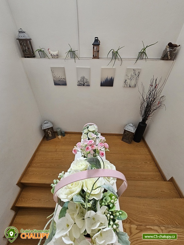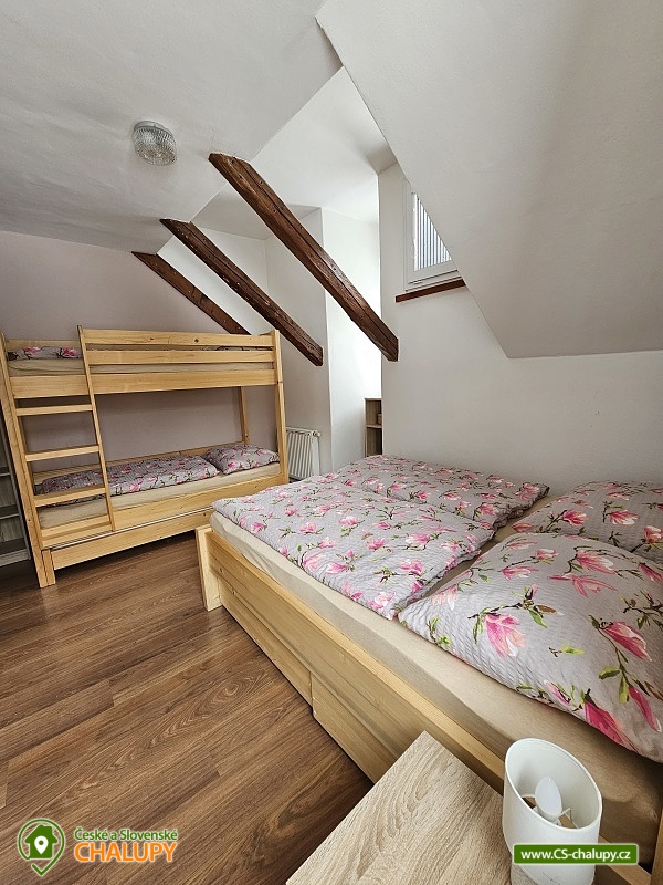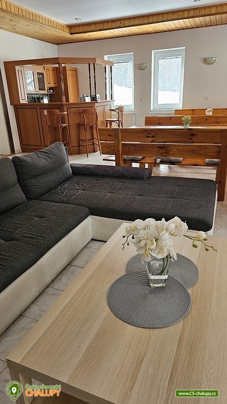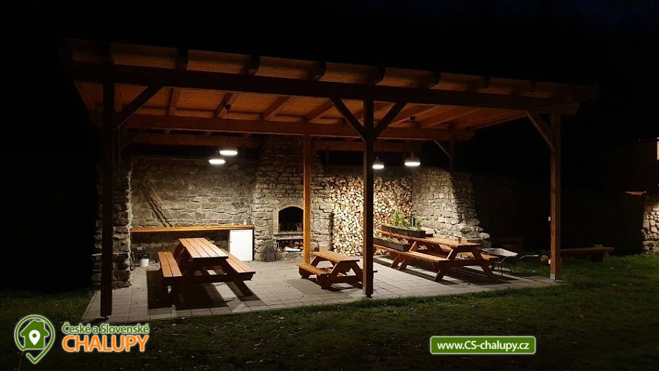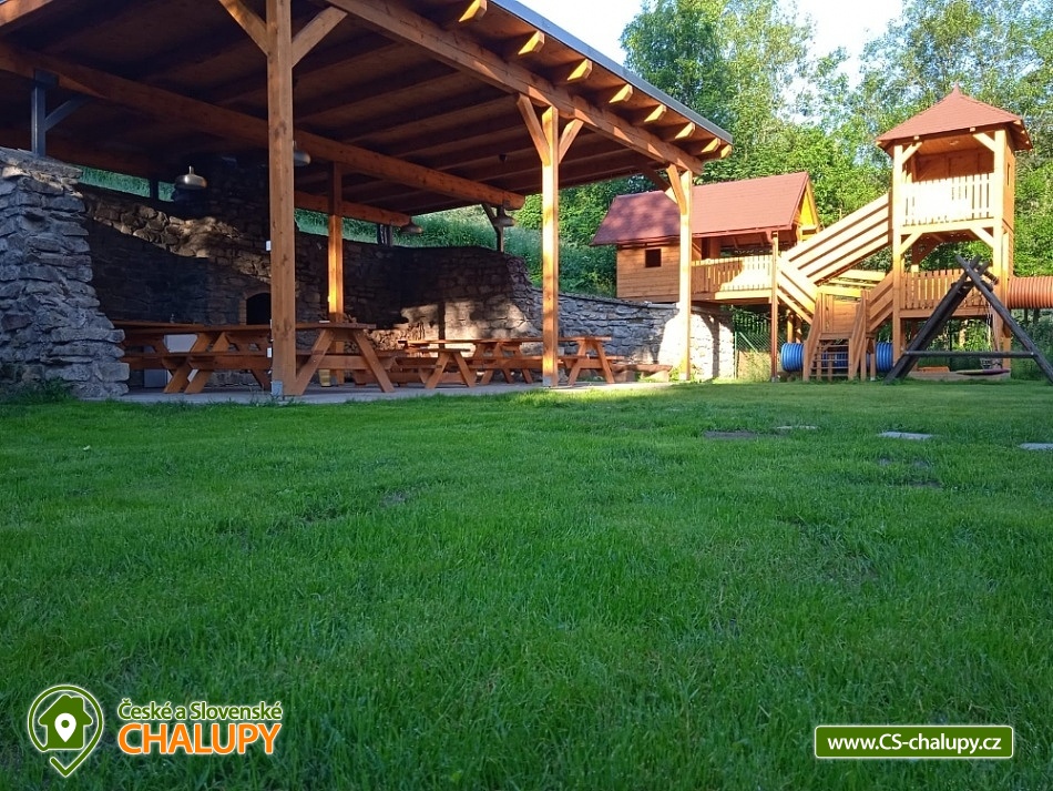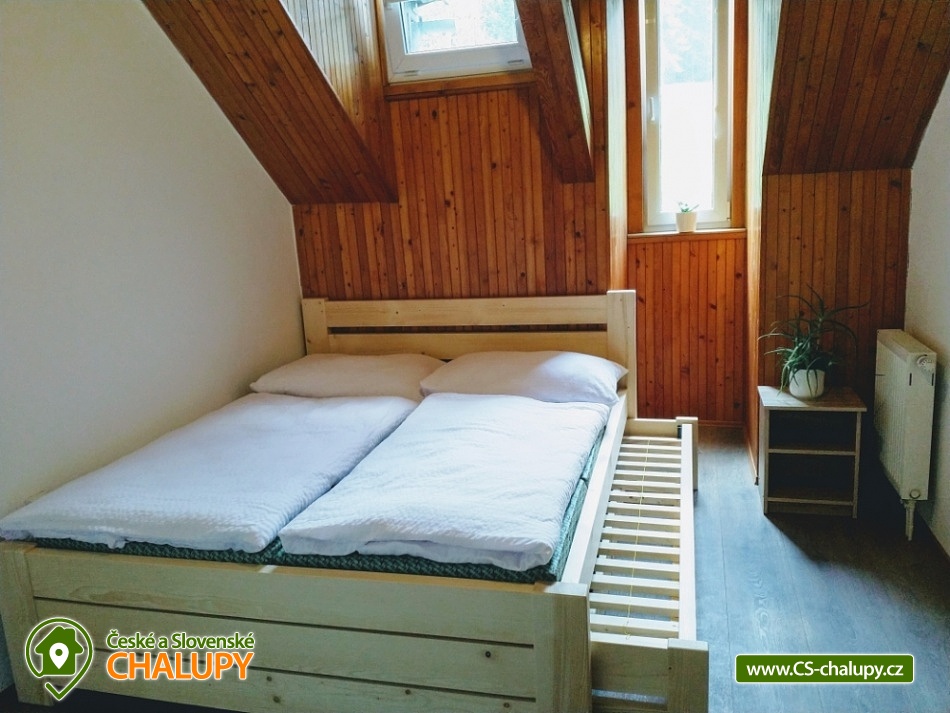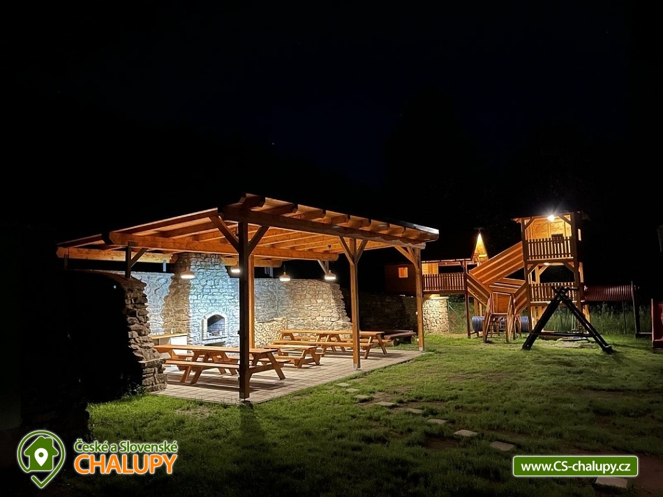 Chalupa s vyhřívaným bazénem a wellness na pomezí Jeseníků a Orlických hor, poloha nedaleko rozhledny Suchý Vrch a areálu Buková Hora na Dolní Moravě. Chalupa nabízí 10 neprůchozích pokojů, max kapacita až 44 osob, každý pokoj s vlastním sociálním zařízením. K posezení slouží velká společenská místnost s barem, plně vybavenou kuchyň, dětskou hernu, ping-pong a stolní fotbálek. Připojení na Wi-Fi je samozřejmostí. Kolem chalupy je rozlehlá oplocená zahrada s velkou pergolou s posezením, grilem a ohništěm. Pro děti je na zahradě k dispozici domeček, který je večer osvětlený, s prolézačkami, tunelem, skluzavkou, houpačkami, lezeckou stěnou a pískovištěm. Děti si mohou zaskákat na velké trampolíně, v letních měsících se pak osvěžit ve vyhřívaném bazénu se zastřešením a slanou vodou. K dispozici jsou také branky na fotbal. V zimních měsících je pak pro vás na ohřátí připravený dřevem vyhřívaný sud s vířivkou pro 6 až 8 osob a wellness místnost se saunou či ochlazovací kádí. Myslíme i na ty nejmenší - Abychom Vám pobyt s rodinou co nejvíce zpříjemnili, jsou Vám k dispozici dětské jídelní židličky, dětské jídelní soupravy, dětská cestovní postýlka (povlečení vlastní), dětská prkénka a nočníky a v neposlední řadě také plně vybavená dětská herna. K dispozici jsou branky na fotbal, stolní fotbálek či venkovní hřiště s domečkem. Samozřejmě zde nechybí ani pračka, která je Vám k dispozici. Ještě lepší relaxaci na vaší dovolené Vám zpříjemní koupací sud s vířivkou. Sud je vyhřívaný dřevem a je osvětlený. Je vybaven držáky na nápoje. Zálibu v něm určitě najdou i Vaše malé ratolesti. V přízemí chaty je pro Vás připravena vybavená společenská místnost. Najdete zde místo k odpočinku u TV, či posezení u stolů a baru. Nachystána je zde pro Vás pípa, kávovar a výrobník ledu. Dětská herna je umístěna ve vedlejší místnosti k dispozici zde děti mají kuchyňku, obchůdek, stolek se židličkami, dětský stan, tunel, žíněnku, terč na suchý zip, knihy, hračky, atd.. Pro starší pak máme připraven stolní fotbálek, ping-pong a stolní hry. Kuchyně v přízemí je pro Vás vybavena dvěma velkými multifunkčními sporáky, dvěma myčkama, čtyřmi lednicemi s mražákem a velkou vitrínovou lednicí či mikrovlnkou.. K dispozici jsou všechny typy a velikosti hrnců, plechy, pekáče do trouby atd. Nově máme také pizza pec. Těšíme se na Vás u nás.