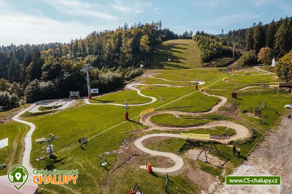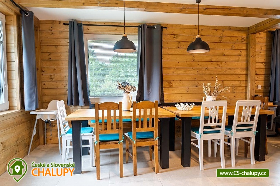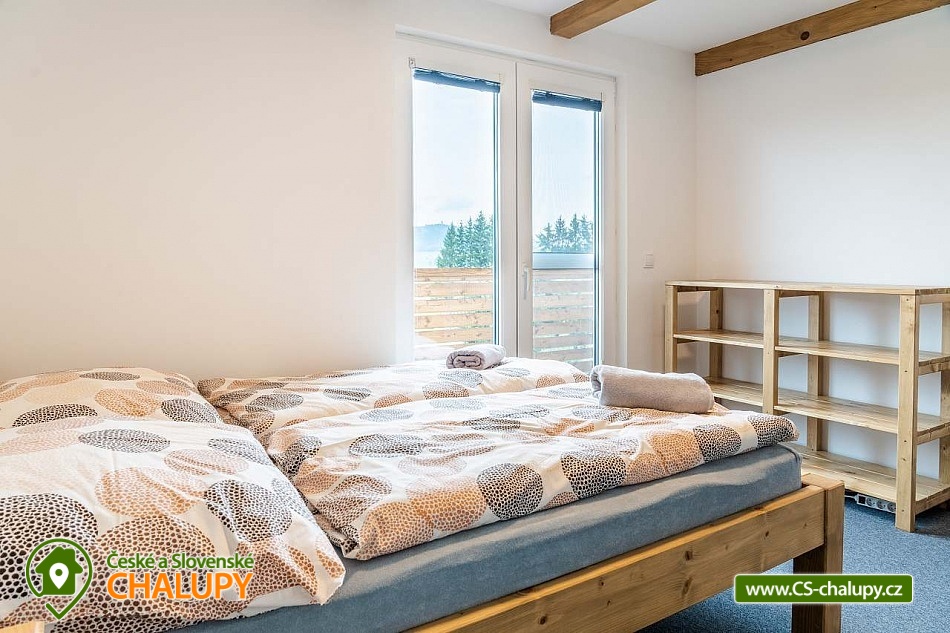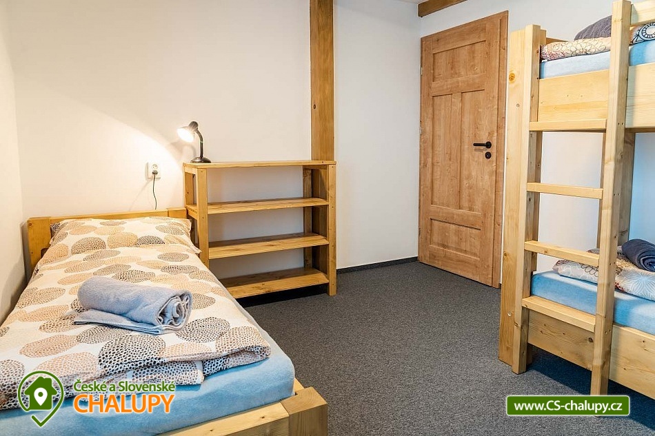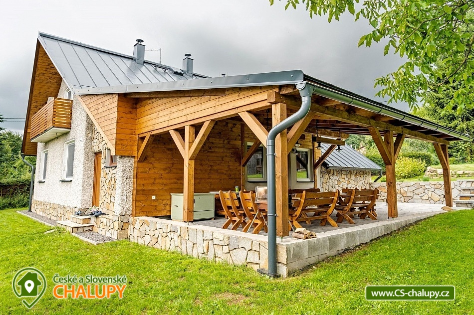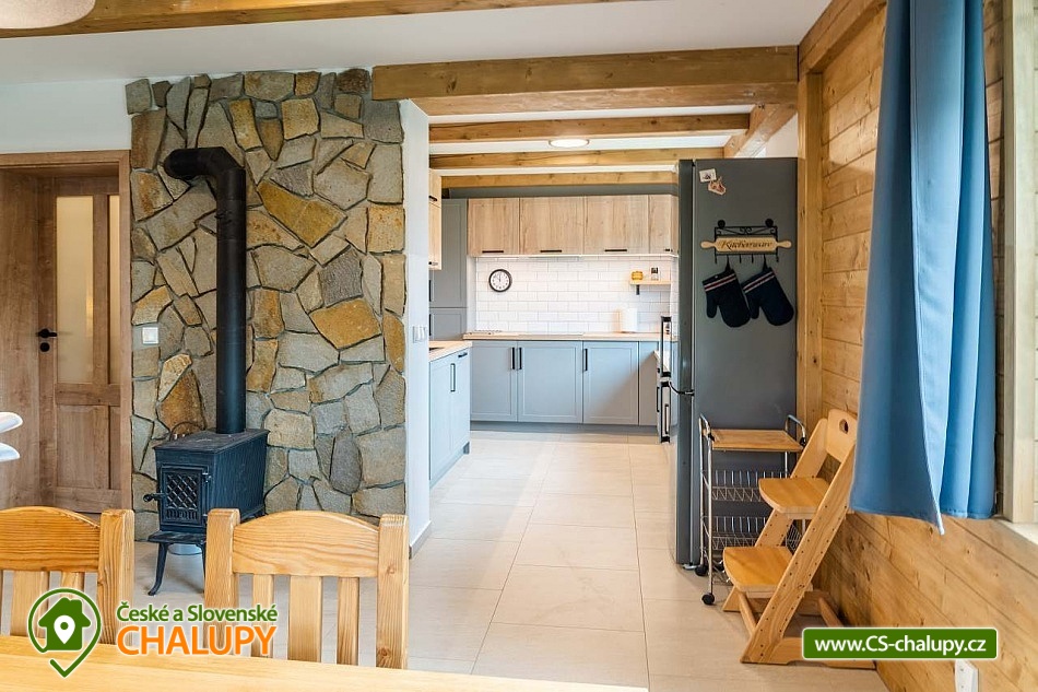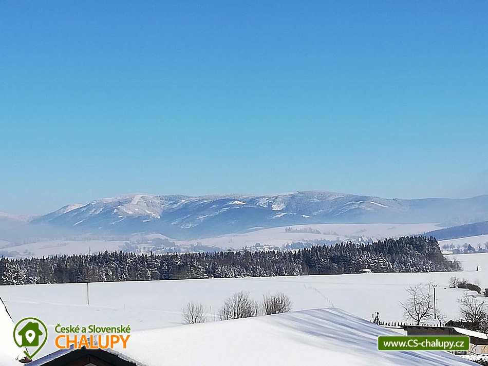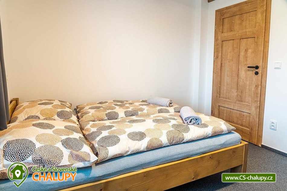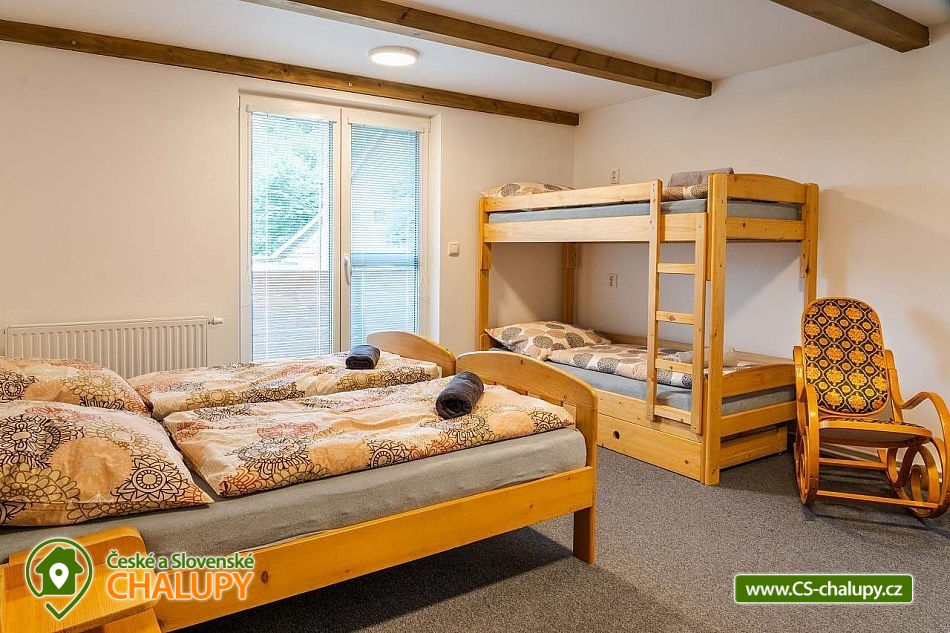 Cottage under Hvězdou with swimming pool - Červená Voda - Dolní Morava. The cottage under Hvězdou for up to 14 people is located on the border between Orlické hor and Jeseníky in the village of Červená Voda. The accommodation is stylishly and modernly furnished. It is suitable for families with children, groups of friends and work meetings. On the ground floor there is a spacious entrance hall with enough space for shoes and clothes. A refrigerator and a shoe dryer can be used in the hallway. In the winter months it is heated with gas, in the summer months it can be connected to electricity. On the ground floor there is also a staircase to the 1st floor secured by a rope railing (on request, a gate for small children can be provided at the top of the staircase). There is also a common room with a modern kitchen, a large dining area including a growing chair and a dining chair for the little ones. The kitchen is equipped with a hob, oven, dishwasher, kettle, microwave, toaster and toaster. There are 2 refrigerators including a freezer in the building. In the common room there is a sofa set with an armchair and cushions, a TV and a fireplace to make the atmosphere more pleasant. Electronic darts available. There are 4 rooms on the 1st floor. Each room is marked with a number according to the number of beds. There are rooms for 2, 3, 4 and 5 people available. The bathroom on the ground floor is equipped with a spacious shower, an illuminated mirror, two sinks and a washing machine. There is also an electric heating ladder. There is a toilet on the ground floor near the entrance. On the first floor there is again a bathroom with two sinks, a bathtub and a toilet. There is also another separate toilet on the floor. There are accessories for the little ones - a toilet seat and a potty. The cottage is heated with gas. There is underfloor heating on the ground floor, radiators on the first floor. A different temperature can be set on each floor. There is a wood-burning stove in the common room. Wood for heating in the stove is available. Parking is possible directly on the property with a capacity of up to 5 parking spaces. The access road is passable all year round. Bicycles can be stored in a lockable room. The land is partially fenced with a hedge. There is a spacious covered terrace with an outdoor grill. For children there is a newly built playground with a slide and swings. It is located at the end of the village near the tourist route to Hvězda and Suchý Vrch. From the cottage there is a beautiful view of the surroundings, in good weather you can also see Lower Moravia, including the Path in the Clouds and Sky Bridge 721. The blue hiking route to Hvězda and Suchý Vrch leads around the cottage. The route is used all year round, in the summer months also for cycling. The newly built Singltrek Suchák is located on Hvězda. In summer it is used by cyclists, in winter by cross-country skiers. On Suché Vrch is Kramář's cottage, open all year round with a buffet and a restaurant including a lookout tower. We look forward to seeing you here.