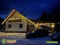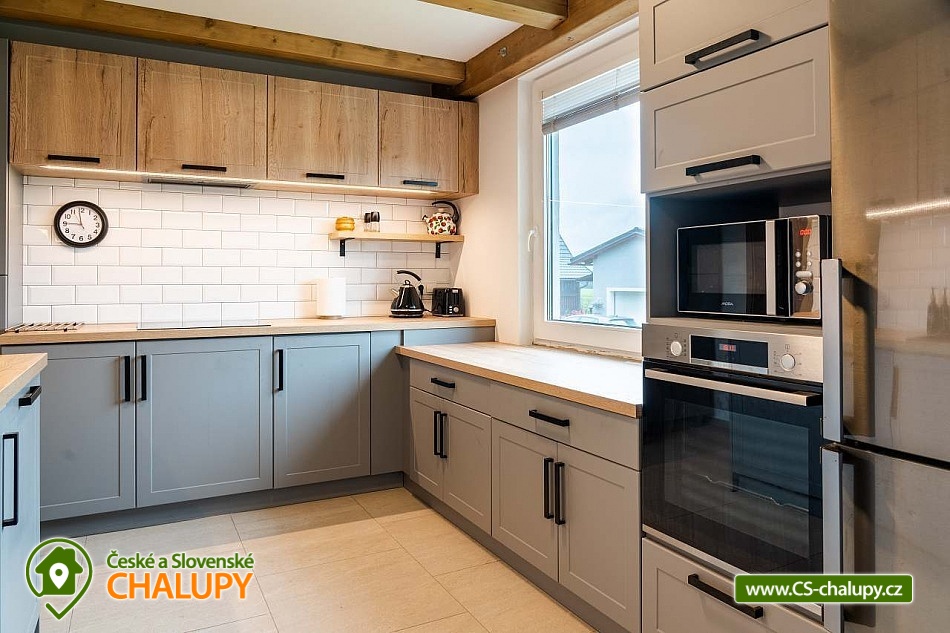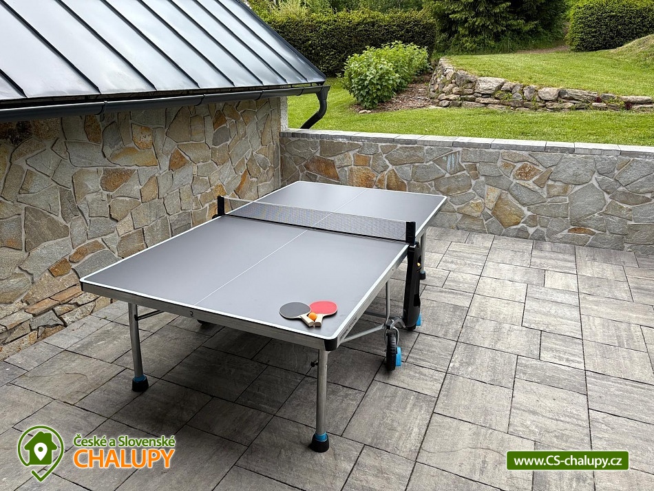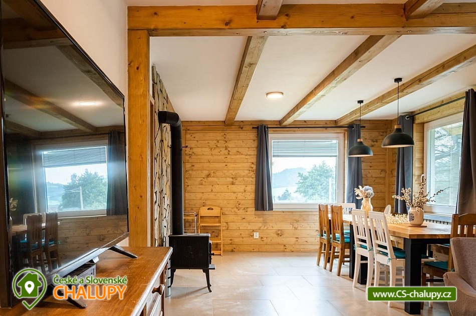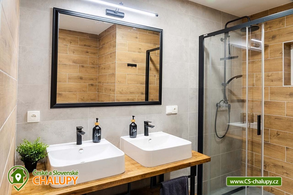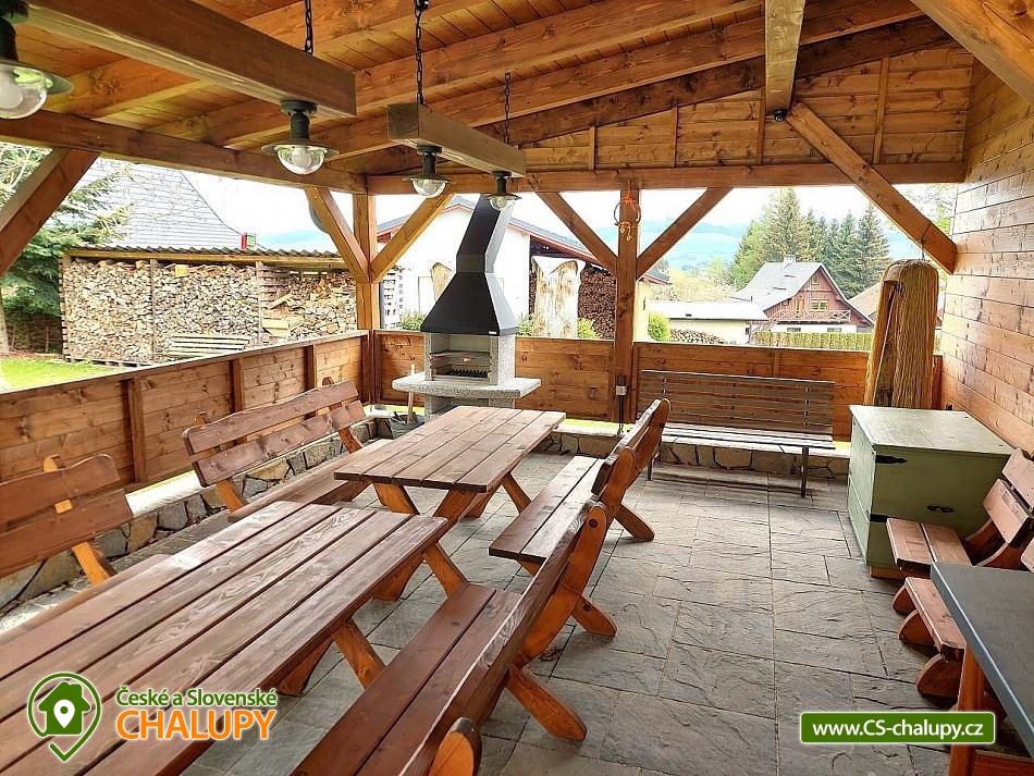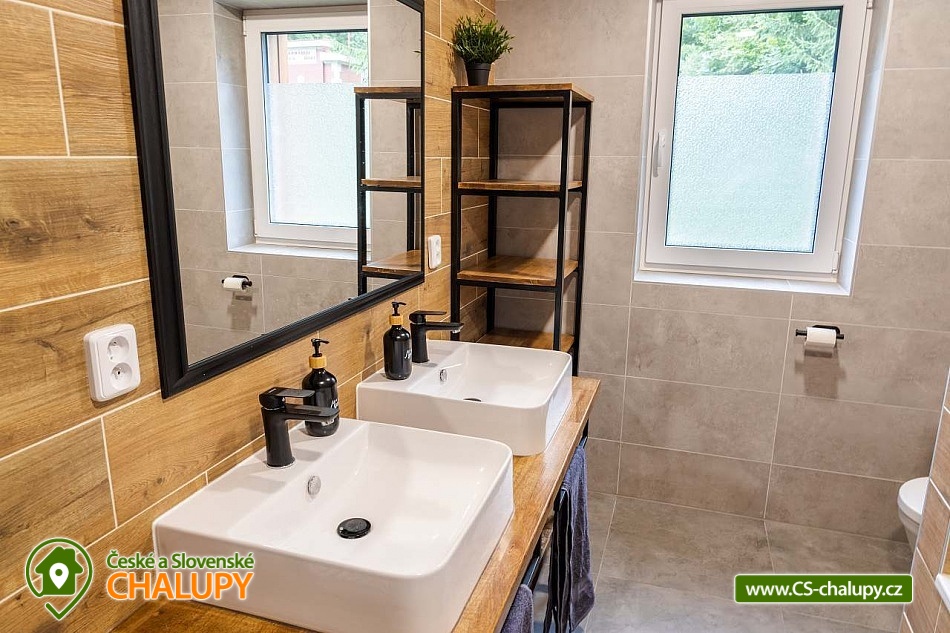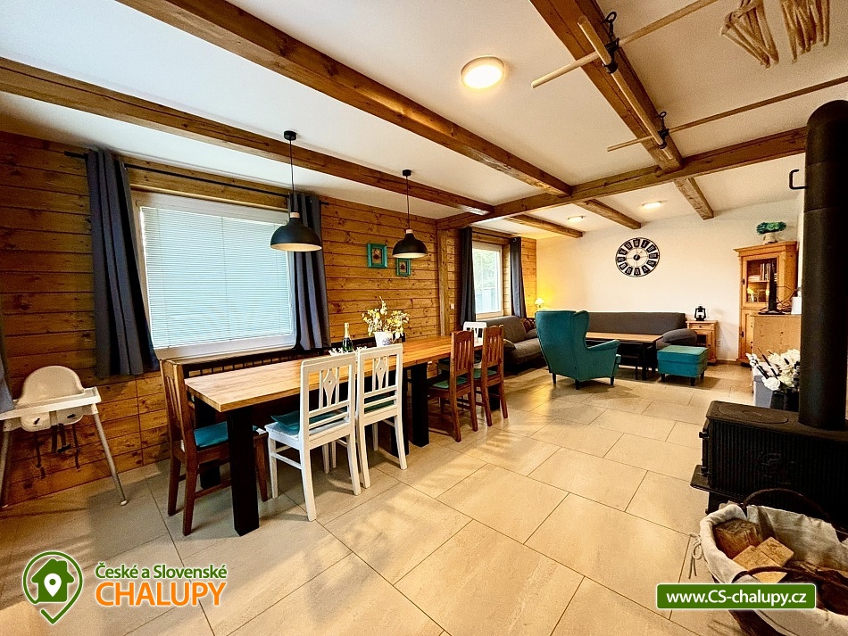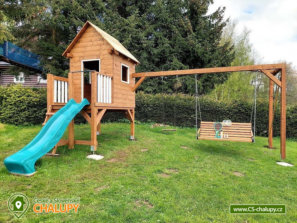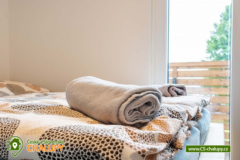 Cottage under Hvězdou with swimming pool - Červená Voda - Dolní Morava. The cottage under Hvězdou for up to 14 people is located on the border between Orlické hor and Jeseníky in the village of Červená Voda. The accommodation is stylishly and modernly furnished. It is suitable for families with children, groups of friends and work meetings. On the ground floor there is a spacious entrance hall with enough space for shoes and clothes. A refrigerator and a shoe dryer can be used in the hallway. In the winter months it is heated with gas, in the summer months it can be connected to electricity. On the ground floor there is also a staircase to the 1st floor secured by a rope railing (on request, a gate for small children can be provided at the top of the staircase). There is also a common room with a modern kitchen, a large dining area including a growing chair and a dining chair for the little ones. The kitchen is equipped with a hob, oven, dishwasher, kettle, microwave, toaster and toaster. There are 2 refrigerators including a freezer in the building. In the common room there is a sofa set with an armchair and cushions, a TV and a fireplace to make the atmosphere more pleasant. Electronic darts available. There are 4 rooms on the 1st floor. Each room is marked with a number according to the number of beds. There are rooms for 2, 3, 4 and 5 people available. The bathroom on the ground floor is equipped with a spacious shower, an illuminated mirror, two sinks and a washing machine. There is also an electric heating ladder. There is a toilet on the ground floor near the entrance. On the first floor there is again a bathroom with two sinks, a bathtub and a toilet. There is also another separate toilet on the floor. There are accessories for the little ones - a toilet seat and a potty. The cottage is heated with gas. There is underfloor heating on the ground floor, radiators on the first floor. A different temperature can be set on each floor. There is a wood-burning stove in the common room. Wood for heating in the stove is available. Parking is possible directly on the property with a capacity of up to 5 parking spaces. The access road is passable all year round. Bicycles can be stored in a lockable room. The land is partially fenced with a hedge. There is a spacious covered terrace with an outdoor grill. For children there is a newly built playground with a slide and swings. It is located at the end of the village near the tourist route to Hvězda and Suchý Vrch. From the cottage there is a beautiful view of the surroundings, in good weather you can also see Lower Moravia, including the Path in the Clouds and Sky Bridge 721. The blue hiking route to Hvězda and Suchý Vrch leads around the cottage. The route is used all year round, in the summer months also for cycling. The newly built Singltrek Suchák is located on Hvězda. In summer it is used by cyclists, in winter by cross-country skiers. On Suché Vrch is Kramář's cottage, open all year round with a buffet and a restaurant including a lookout tower. We look forward to seeing you here.