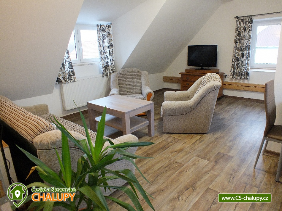 Chalupa s bazénem u Lipenské přehrady - ubytování okres Český Krumlov. Chalupa poskytuje ubytování pro až 12 osob ve 2 apartmánech. Ubytování je vhodné pro rodiny s dětmi, skupiny přátel, které hledají příjemné ubytování s veškerým komfortem a dostupností všech aktivit které Lipno nabízí. Chalupa popis - v horní části se nachází dva podkrovní apartmány - jeden 2+kk, druhý 3+kk v každém možnost 1x přistýlka. Sociální zařízení: V apartmánu koupelna s WC a sprchou, sušák na prádlo. Plně vybavená kuchyň je v každém apartmánu. Vytápění: Centrální automatické vytápění. Vybavení apartmánu: Televize, WiFi, ohniště, bazén, trampolína na zahradě. Vlastní kolárna, lyžárna. Příjezd k objektu po asfaltové silnici, parkování vlastní u objektu 4 místa. S vlastním parkováním u chalupy z kterého je částečně bezbariérový přístup do apartmánů. Výlety po okolí: Plešné jezero, Třístoličník, Schwarzenberský plavební kanál, Lenora, Pramen Vltavy, Boubínský prales, Stezka v korunách stromů, Království lesa, Český Krumlov. Cykloturistika, pěší turistika, přírodní koupání v Lipenském jezeře, jachting, surfování, kaiting, lanové centrum, sjíždění Vltavy, houbaření, rybaření. V zimním období: běžkování, bruslení na zamrzlém jezeře, sjezdové lyžování v skiareálu Lipno, Sternstein, Hochficht. Možnosti koupání: vodní nádrž Lipno a aquapark Frymburk. Blízká lyžařská střediska: Lipno - Kramolín a Frymburk.