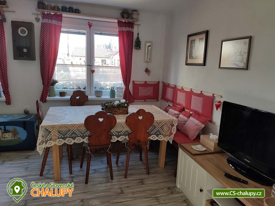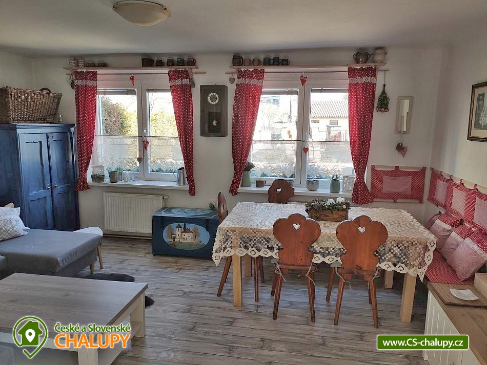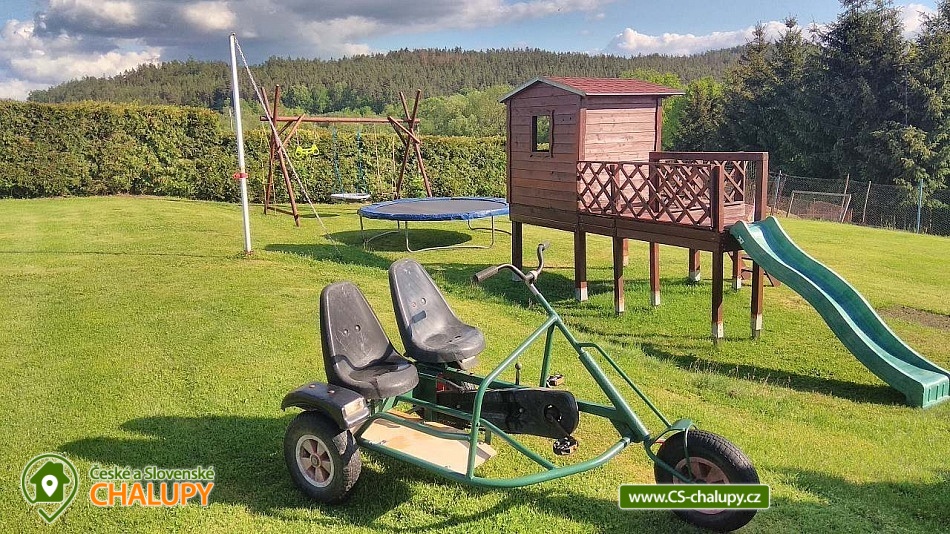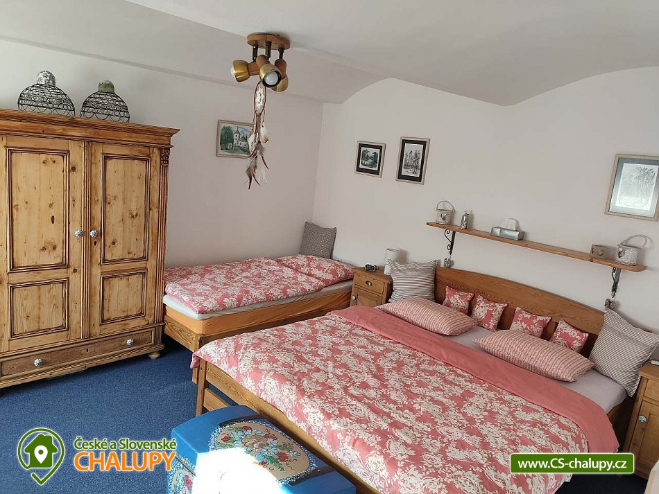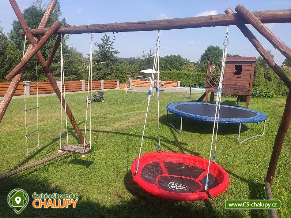 Chalupa s bazénem v CHKO Blaník se nachází v klidné vesničce Libouň, části obce Zvěstov. Leží v okrese Benešov, v krásné přírodě CHKO Blaník a nabízí ubytování pro až 15 osob ve dvou samostatných jednotkách - stará chalupa (9 osob, na kratší pobyt po domluvě až 11 osob) a apartmán (5 osob, na kratší pobyt po domluvě až 8 osob). Jednotky lze pronajmout samostatně nebo jako celek. Chalupa je ideální pro menší i větší skupiny, oslavy, svatby, srazy, setkání, teambuildingy a jiné podobné akce. Ve STARÉ CHALUPĚ je obývací pokoj s televizí, dvě rozkládací pohovky a jídelní posezení. Prakticky vybavená kuchyň s plynovým sporákem, elektrickou troubou, lednicí, mikrovlnnou troubou, kávovarem Dolce Gusto, rychlovarnou konvicí, toustovačem i topinkovačem. Dvě ložnice, v každé je manželská postel. V jedné jsou navíc dvě oddělená lůžka a jedno výsuvné lůžko. V druhé ložnici je kromě manželské postele oddělené lůžko s výsuvným lůžkem. Dle potřeby zajistíme dětskou postýlku. Každá ložnice má svoji vlastní koupelnu. Jedna je se sprchovým koutem a toaletou, druhá s rohovou vanou, toaletou a pračkou. MEZONETOVÝ APARTMÁN má svůj vlastní vchod. V přízemí má prostornou obývací místnost s velkou LCD TV, jídelní kout a dvě rozkládací pohovky, které jsou využívány jako přistýlky pro 2 osoby. Kuchyňská linka disponuje myčkou, el. troubou a kompletním běžným kuchyňským vybavením. Je zde koupelna se sprchovým koutem a toaletou. Schodištěm se dostanete do podkroví, kde je ložnice se čtyřmi oddělenými lůžky, dle potřeby lze vytvořit jednu manželskou postel. K dispozici je Wi-Fi připojení. V celém objektu je plynové topení. Parkování možné přímo u chalupy na pozemku pro 3-4 auta. K dispozici je stodola, která nabízí společenské prostory s posezením i pro větší skupiny, pohovku, křesílka, BAR s barovými židlemi, prostor pro raut, 2x velkou lednici, myčku, dřez a veškeré zázemí pro konání různých párty, oslav i menších svateb. K dispozici také 2x toaleta. Možností je propojení se zahradou, kde je možno postavit až několik párty stanů. Na uzavřené zahradě za stodolou najdete soukromí, prostor pro odpočinek i sportovní aktivity. Altán s prostorným posezením a plně vybavenou zahradní kuchyní, kde je pro odpočinek i pohovka a lze zde v létě pohodlně nocovat. Plynový gril s kamenem. Máme zde i zákoutí s krbem a k dispozici je i malé ohniště. Krytý bazén (5,5 x 3,5 m) a sluneční terasa se slunečníkem a posezením. Pro děti pískoviště a dětské hřiště s houpačkami, domečkem se skluzavkou, trampolínou a dalšími prvky na zahradě. Tři velikosti dětských kol a k dispozici je i motokára nejen pro děti. Velkou výhodou naší zahrady je bohaté sportovní vyžití, k dispozici jsou dvě zatravněné hřiště, kde si zahrajete fotbal, nohejbal, volejbal, soft tenis a najdete zde malé golfové hřiště s osmi jamkami, veškeré potřeby a vybavení jako jsou míče, rakety, pálky a šipky. Stolní tenis je v samostatné místnosti. Cyklisté ocení možnost odložit sportovní vybavení ve stodole. Malý lesík je přímo pod zahradou. Možnosti koupání v okolí: koupaliště Louňovice pod Blaníkem, rybník Strašík, koupaliště Vlašim, rybník Smikov, rybník Papírník. Chalupa sousedí s rotundou svatého Václava z 12 století. Tipy na výlety: Naučná stezka v bývalém zlatodole Roudný, Velký Blaník s rozhlednou a občerstvením, zřícenina kaple Máří Magdaleny je magické místo na Malém Blaníku. Ve Vlašimi je krásný zámecký park, zámek se zpřístupněnou věží i podzemím, muzeum střelectví a hvězdárna. Těšíme se na Vás u nás.