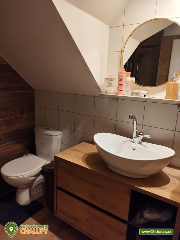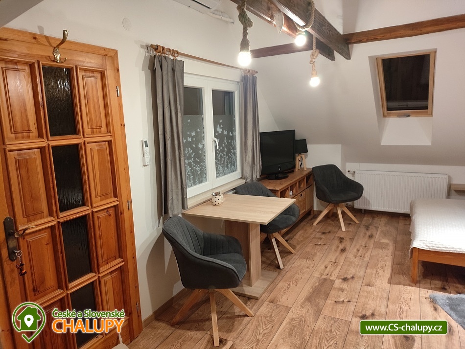 Chalupa s bazénem v CHKO Blaník se nachází v klidné vesničce Libouň, části obce Zvěstov. Leží v okrese Benešov, v krásné přírodě CHKO Blaník a nabízí ubytování pro až 16 osob ve třech samostatných jednotkách - stará chalupa (9 osob, na kratší pobyt po domluvě až 11 osob), apartmán 1. (5 osob, na kratší pobyt po domluvě až 8 osob) a apartmán 2. v patře (2 osoby, na kratší pobyt 3), který lze propojit s apartmánem 1. Jednotky lze pronajmout samostatně nebo jako celek. Chalupa je ideální pro menší i větší skupiny, oslavy, svatby, srazy, setkání, teambuildingy a jiné podobné akce. Ve STARÉ CHALUPĚ je obývací pokoj s televizí, dvě rozkládací pohovky a jídelní posezení. Prakticky vybavená kuchyň s plynovým sporákem, elektrickou troubou, lednicí, mikrovlnnou troubou, kávovarem Dolce Gusto, rychlovarnou konvicí, toustovačem i topinkovačem. Dvě ložnice, v každé je manželská postel. V jedné jsou navíc dvě oddělená lůžka a jedno výsuvné lůžko. V druhé ložnici je kromě manželské postele oddělené lůžko s výsuvným lůžkem. Dle potřeby zajistíme dětskou postýlku. Každá ložnice má svoji vlastní koupelnu. Jedna je se sprchovým koutem a toaletou, druhá s rohovou vanou, toaletou a pračkou. MEZONETOVÝ APARTMÁN má svůj vlastní vchod. V přízemí má prostornou obývací místnost s velkou LCD TV, jídelní kout a dvě rozkládací pohovky, které jsou využívány jako přistýlky pro 2 osoby. Kuchyňská linka disponuje myčkou, el. troubou a kompletním běžným kuchyňským vybavením. Je zde koupelna se sprchovým koutem a toaletou. Schodištěm se dostanete do podkroví, kde je ložnice se čtyřmi oddělenými lůžky, dle potřeby lze vytvořit jednu manželskou postel. Apartmán 2. má malý kuchyňský kout, koupelnu se záchodem, dvě lůžka + rozkládací křeslo. K dispozici je Wi-Fi připojení. V celém objektu je plynové topení. Parkování možné přímo u chalupy na pozemku pro 3-4 auta. K dispozici je stodola, která nabízí společenské prostory s posezením i pro větší skupiny, pohovku, křesílka, BAR s barovými židlemi, prostor pro raut, 2x velkou lednici, myčku, dřez a veškeré zázemí pro konání různých párty, oslav i menších svateb. K dispozici také 2x toaleta. Možností je propojení se zahradou, kde je možno postavit až několik párty stanů. Na uzavřené zahradě za stodolou najdete soukromí, prostor pro odpočinek i sportovní aktivity. Altán s prostorným posezením a plně vybavenou zahradní kuchyní, kde je pro odpočinek i pohovka a lze zde v létě pohodlně nocovat. Plynový gril s kamenem. Máme zde i zákoutí s krbem a k dispozici je i malé ohniště. Krytý bazén (5,5 x 3,5 m) a sluneční terasa se slunečníkem a posezením. Pro děti pískoviště a dětské hřiště s houpačkami, domečkem se skluzavkou, trampolínou a dalšími prvky na zahradě. Tři velikosti dětských kol a k dispozici je i motokára nejen pro děti. Velkou výhodou naší zahrady je bohaté sportovní vyžití, k dispozici jsou dvě zatravněné hřiště, kde si zahrajete fotbal, nohejbal, volejbal, soft tenis a najdete zde malé golfové hřiště s osmi jamkami, veškeré potřeby a vybavení jako jsou míče, rakety, pálky a šipky. Stolní tenis je v samostatné místnosti. Cyklisté ocení možnost odložit sportovní vybavení ve stodole. Malý lesík je přímo pod zahradou. Možnosti koupání v okolí: koupaliště Louňovice pod Blaníkem, rybník Strašík, koupaliště Vlašim, rybník Smikov, rybník Papírník. Chalupa sousedí s rotundou svatého Václava z 12 století. Tipy na výlety: Naučná stezka v bývalém zlatodole Roudný, Velký Blaník s rozhlednou a občerstvením, zřícenina kaple Máří Magdaleny je magické místo na Malém Blaníku. Ve Vlašimi je krásný zámecký park, zámek se zpřístupněnou věží i podzemím, muzeum střelectví a hvězdárna. Těšíme se na Vás u nás.