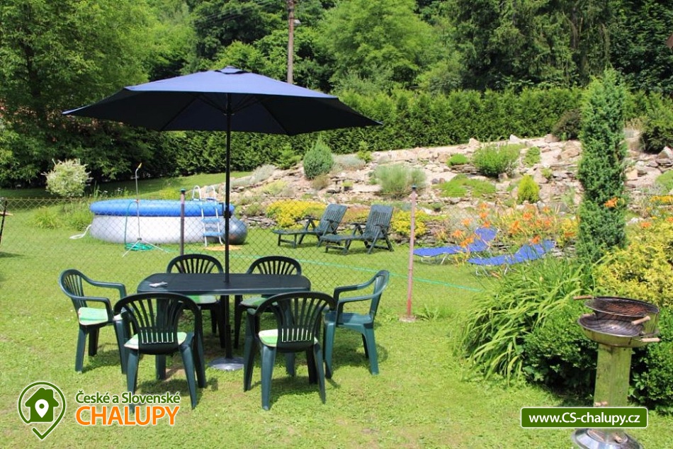Chalupa s bazénem na zahradě - poloha u přehrady Rozkoš - Nové Město nad Metují. Chalupa je na okraji města, nad chalupou je zřícenina hradu Výrov s překrásným výhledem na Nové Město nad Metují. Náměstí je vzdálené 900 m, zde je zámek, zámecká zahrada a cukrárna. Uvnitř chalupy je plně vybavená kuchyně (sklokeramická varná deska, trouba, mikrovlnná trouba, lednička, kávovar, varná konvice, topinkovač a myčka) s jídelním stolem. K dispozici obývací pokoj se sedací soupravou, kde jsou 2 lůžka a TV + SAT. Dále v přízemí ložnice se 3 lůžky a dětská postýlka. V objektu je koupelna s vanou, sprchou a samostatné WC. Vytápění objektu je zajištěno kamny na tuhá paliva a el. přímotopy. Na zahradě je nepřeberné množství vyžití: nadzemní kruhový bazén (včetně oplocení, aby k němu neměly samostatně přístup malé děti), ohniště s posezením, houpací síť, zahradní a dětská houpačka, travnaté hřiště, badminton, míč a šipky. K dispozici jsou společenské hry. V chalupě se pronajímá pouze přízemí objektu, patro není dokončené a nikdo jiný jej nevyužívá. Parkování je možné přímo u objektu. V okolí je spousta cyklostezek a turisticky značených cest. Doporučujeme návštěvu zámku Nové Město nad Metují, zámek v Náchodě je vzdálený 8 km. Mezi další tipy na výlety patří Peklo, což turisticky oblíbené místo s výletní restaurací a krásnými možnostmi procházek. Dále vojenská pevnost Dobrošov a Březinka (nad Náchodem - krásné procházky, příroda), Ratibořice - Babiččino Údolí, vodní nádrž Rozkoš - koupání, rybolov, loďky, surf, tobogán, zábava. V blízkosti jsou Orlické hory, zde např. Deštné v Orlických horách - lyže, běžky, turistika a pevnost Hanička. V blízkosti ZOO Dvůr Králové či Kuks. Další možnosti koupání: přehrada Rozkoš, bazén Nové Město nad Metují, bazén Náchod, koupaliště Dobruška a koupaliště Náchod.