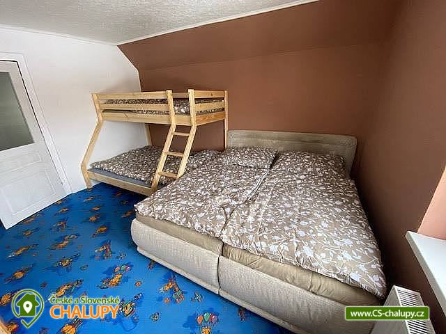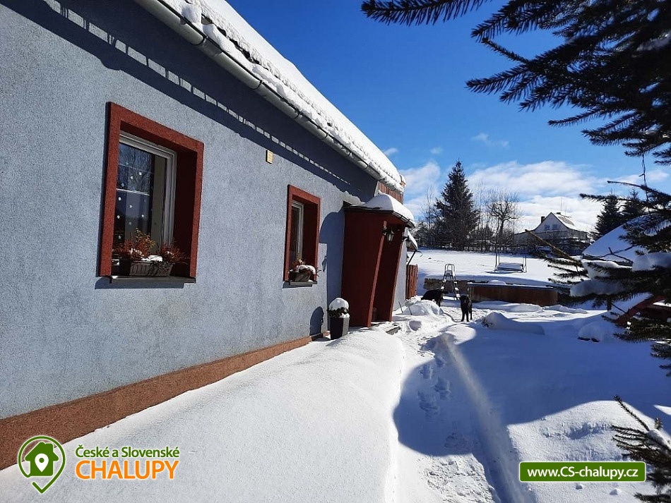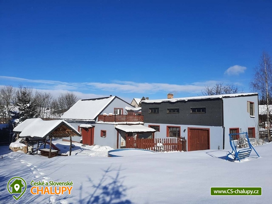 Chalupa s bazénem a saunou s krásným výhledem na Sněžku. Chalupa k pronájmu v klidné části obce Žacléř poskytuje ubytování pro až 12 osob ve 3 ložnicích. Pobyt Vám zpříjemní menší posilovna, sauna a odpočívárna, ze které máte přímý vstup na prostornou terasu. Nabízíme jeden dvoulůžkový a dva čtyřlůžkové pokoje. V obývacím pokoji je prostorný rozkládací gauč který může sloužit jako přistýlka pro 2 osoby. Plně vybavená kuchyňská linka s jídelním koutem a obývací pokoj s krbem. V chalupě jsou k dispozici kompletní sociální zařízení. V přízemí se nachází koupelna s rohovou vanou a samostatným WC. V prvním patře najdete druhé WC. V odpočívárně je navíc k dispozici sprcha, kterou využívají hosté při saunování. Celý objekt je vytápěn ústředním elektrickým topením. Pro zpříjemnění je možné zatopit si v krbu. V přízemí se nachází místnost pro umístění lyžařského vybavení nebo kol. Na zahradě je bazén, dětské pískoviště, prolézačky, skluzavka a trampolína. Posezení pod pergolou, kde je také venkovní krb. Parkování zdarma na soukromém pozemku (až 3 vozy). Výlety v okolí - Adršpašské skály, Pec pod Sněžkou, Sněžka, Špindlerův Mlýn, Pevnost Stachelberg, Areál Bret, naučná stezka Rýchory a Arakis v Prkenném dole nebo wellness resort v polském městečku Karpacz, ZOO a Safari ve Dvoře Králové a mnoho dalšího. Lyžování - Ski areály Prkenný důl, Mladé Buky, Pěnkavčí Vrch, Petříkovice, Malá Úpa, Velká Úpa, Janské Lázně, Pec pod Sněžkou, Černý Důl, Špindlerův Mlýn atd. Turistika, cykloturistika, lyžování a běžkování, golf či tenis, ale i relax jsou těmi nejdůležitějšími formami aktivit, proč je naše chalupa tím pravým místem pro Vaši dovolenou či rodinné setkání. Těšíme se na Vás u nás.