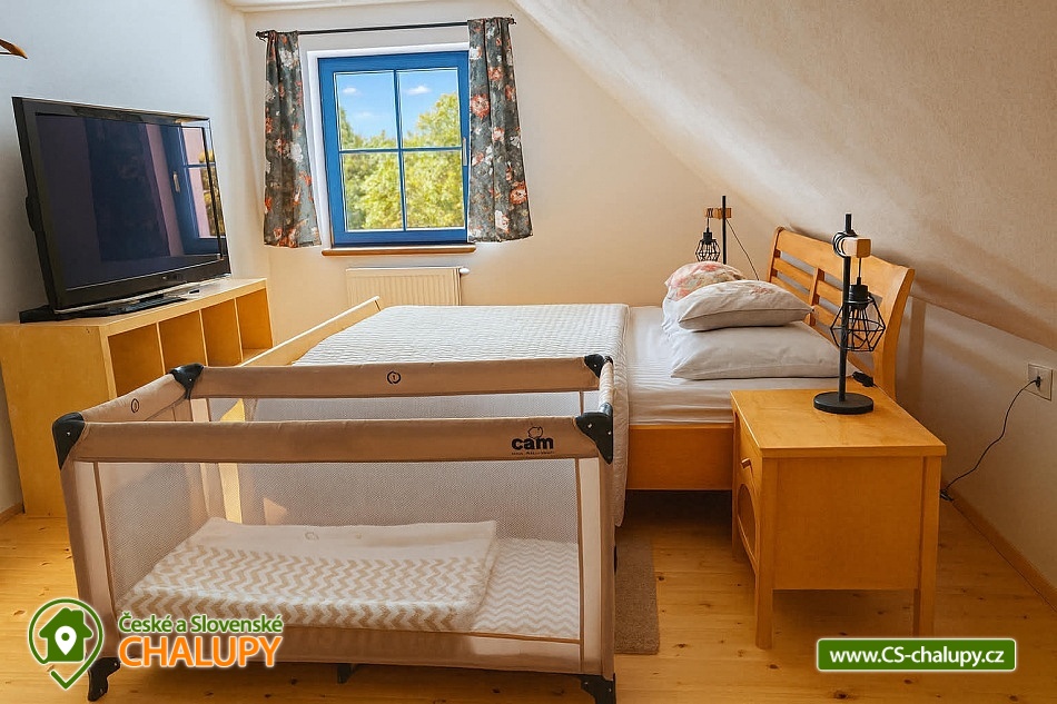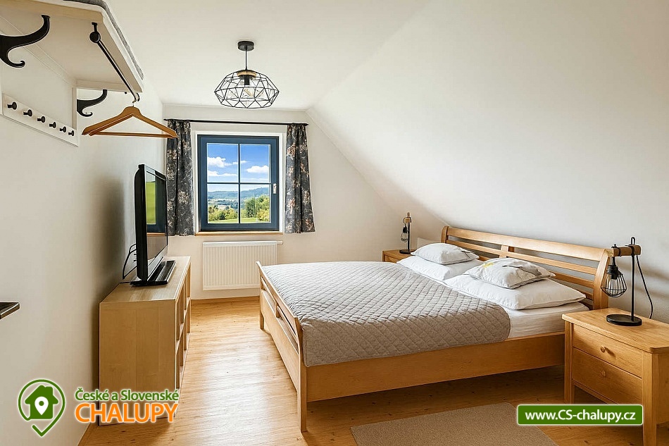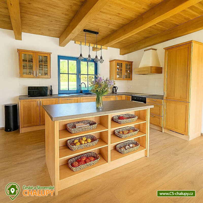 Chalupa s jezírkem - Novohradské hory. Chalupa na samotě uprostřed luk a lesů v samém srdci Novohradských hor, v osadě Staré Hutě, v blízkosti obce Horní Stropnice v okrese České Budějovice. Osada Staré Hutě je velmi atraktivní lokalitou pro výlety, cykloturistiku nebo běžkování. Tato vkusně zařízená chalupa nabízí maximální komfort pro odpočinek, i aktivně strávený čas. Z chalupy si lze užívat výhled do malebné krajiny přírodního parku Novohradské hory. Zažijete soukromé koupací jezírko plné pstruhů a amurů vybudované přímo u chalupy. Chalupa poskytuje ubytování pro až 6 osob, celkem ve třech dvoulůžkových ložnicích. V přízemí chalupy se nachází velká obytná místnost s obývací částí s gaučem, TV s plochou obrazovkou (má prasklinu) a prostornou, plně vybavenou kuchyní (varná deska, trouba, mikrovlnná trouba, varná konvice, topinkovač, velká lednice s mrazákem, myčka, veškeré nádobí a jídelní kout). Příjemnou atmosféru přízemí dotváří dřevěný strop, luxusní nábytek vyrobený na míru ze starého třešňového dřeva a doplněný komponenty od kováře a dvě velká francouzská okna s úžasnými výhledy na okolní krajinu. V patře jsou tři prostorné ložnice, vybavené vždy velkou manželskou postelí (velikosti King) pro dvě osoby, nočními stolky s lampičkami, komodou a věšákem s ramínky. K dispozici jsou peřiny, polštáře, kryty matrací, povlečení, polštářky, přehoz a jedna sada rezervních lůžkovin navíc. V celém objektu k dispozici WiFi připojení na internet. Sociální zařízení zahrnuje jednu přízemní koupelnu se sprchovým koutem, umyvadlem a toaletou a jednu koupelnu v patře s vanou a umyvadlem. V patře je navíc samostatná toaleta. K dispozici jsou ručníky a toaletní potřeby (papír, mýdlo). Vytápění je řešeno elektrokotlem, v přízemí chalupy je podlahové vytápění a v ložnicích a koupelnách jsou radiátory. V každém pokoji lze regulovat teplotu samostatně. Chalupu obklopuje travnatá plocha, kde si lze posedět na venkovní terase, vybudované pod velkou starou lípou a vybavené venkovním nábytkem. K dispozici je gril na dřevěné uhlí (uhlí vlastní). Užívat si můžete koupání v privátním koupacím jezírku s krásně čistou, průtočnou pramenitou vodou plnou pstruhů a amurů. V jezírku je možnost rybolovu pstruhů (pruty vlastní). V přízemí chalupy se nachází garáž pro uskladnění kol, nebo lyží. Parkovat lze přímo u objektu. V okolí chalupy možnost cykloturistiky, turistiky, houbaření, rybaření, koupání a běžkování. Dále si lze zapůjčit elektrokola i s dovozem/odvozem na místo ze Soběnova nebo z Velešína. Za chalupou je menší kopec vhodný pro sáňkování či bobování. Pro sjezdové lyžování, nebo odpočinek v solných lázních, snadno dojedete do Rakouska. Mezi možnosti koupání patří např.: koupaliště Horní Stropnice, vodní nádrž Zlatá Ktiš, přehrada Humenice, Žárský rybník, koupaliště Besednice, Lom Trhové Sviny, Velký rybník Trhové Sviny, koupaliště Kaplice, atd. K výletům láká národní přírodní památka Hojná Voda, stezka na Vysokou horu - ke které vede z Hojné Vody červená trasa (okruh má 8 km), Kuní Hora, Kraví Hora (rozhledna), Pohoří na Šumavě, Žofínský prales, Pohořský rybník, Slepičí Hory, Vysoká, Vrchol Nebelstein, Vyhlídka Mandestein a Terčino údolí. Těšíme se na Vás u nás.