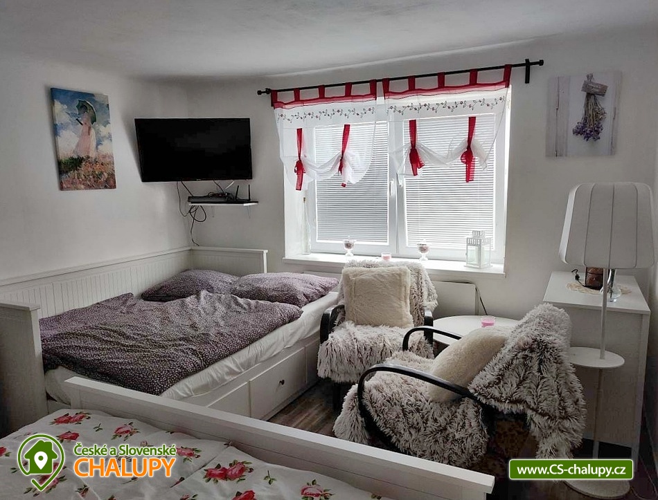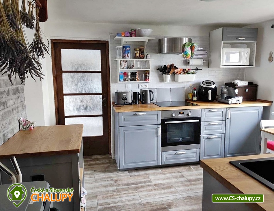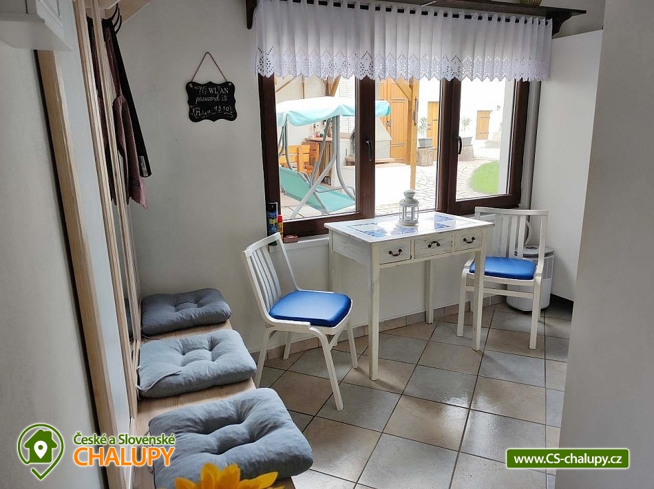 Cottage Zaječí - cellar Pálava - South Moravia. Our cottage with a wine cellar is located in a quiet part of the village of Zaječí, near the Nové Mlýny reservoir and the towns of Velké Pavlovice and Hustopeče. The cottage offers accommodation for 8 people in two four-bed bedrooms. Each bedroom has a double bed, a pull-out bed for two beds, a TV and a wardrobe. There is a dining room with a large table, bench, chairs, tiled stove and a fully equipped kitchen (2x fridge, freezer, hob, oven, kettle, microwave, capsule coffee maker, deep fryer and toaster). The sanitary facilities include a bathroom with a shower, sink and shared toilet. There is a washing machine with a dryer and Wi-Fi connection. The building is heated by a tiled stove and infrared heating. Parking is possible directly in front of the building for 2 cars. In the yard of the cottage there is a roofed pergola with seating and a garden grill. Possibility of storing bicycles. There is also an herb garden and a wine cellar for sitting on hot days. The cottage is adjacent to the land on which there is a tourist seating area and the chapel of St. Florian. From here there is a beautiful view of the Pálava Hills and the Novomlýnské reservoirs. The village is part of the Velkopavlovice wine trail, which is 109 km long and leads to 31 villages, it is marked with yellow metal signs with a blue wine trail logo. Zaječí is a beautiful location in South Moravia full of cycling wine trails that wind between vineyards and wine cellars. Tips for trips: Mikulov, Pavlov Archeopark, Dívčí hrady, Sirotčí hrádek, Nové mlýny reservoir, Lednice-Valtice area, Velké Pavlovice, Bořetice, Kobylí. Swimming options: Nové Mlýny water reservoir, Šutrák pond, Němčičky swimming pool, Horní Bojanovice swimming pool, Hustopeče swimming pool. We look forward to seeing you at our place.