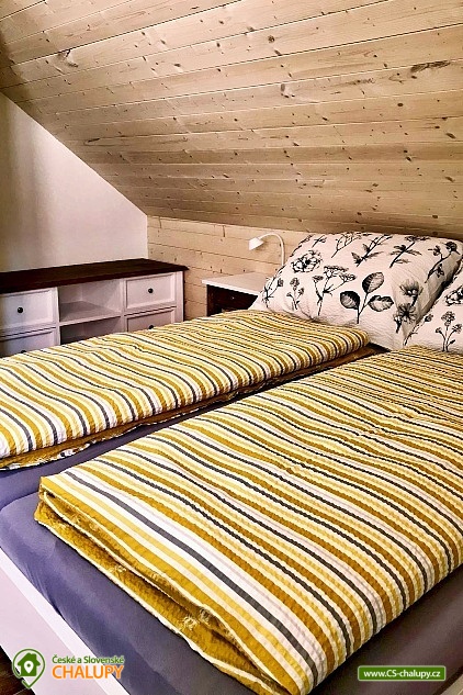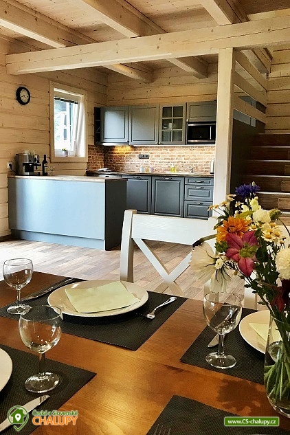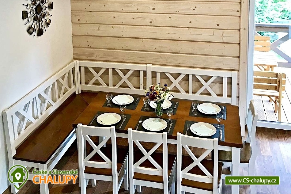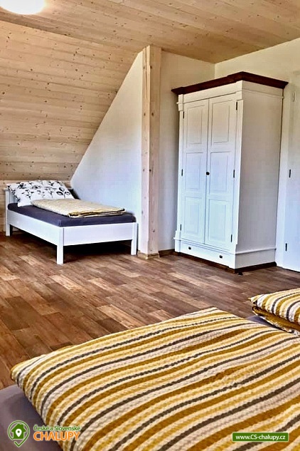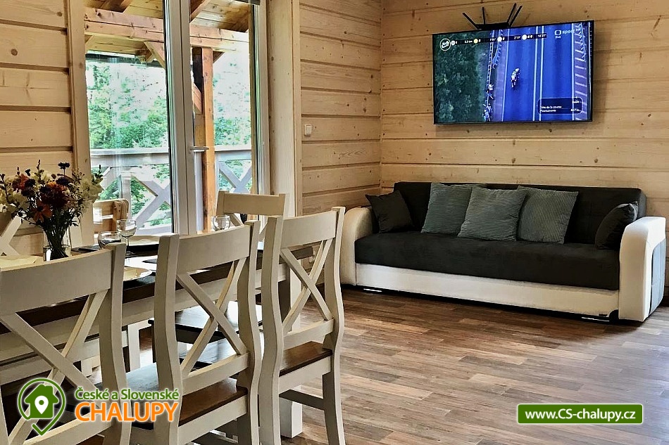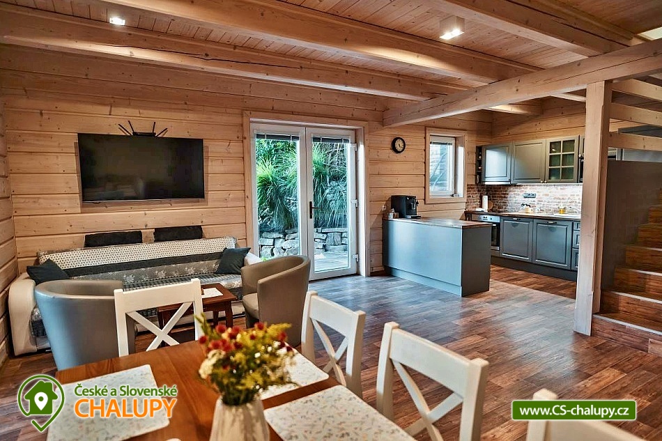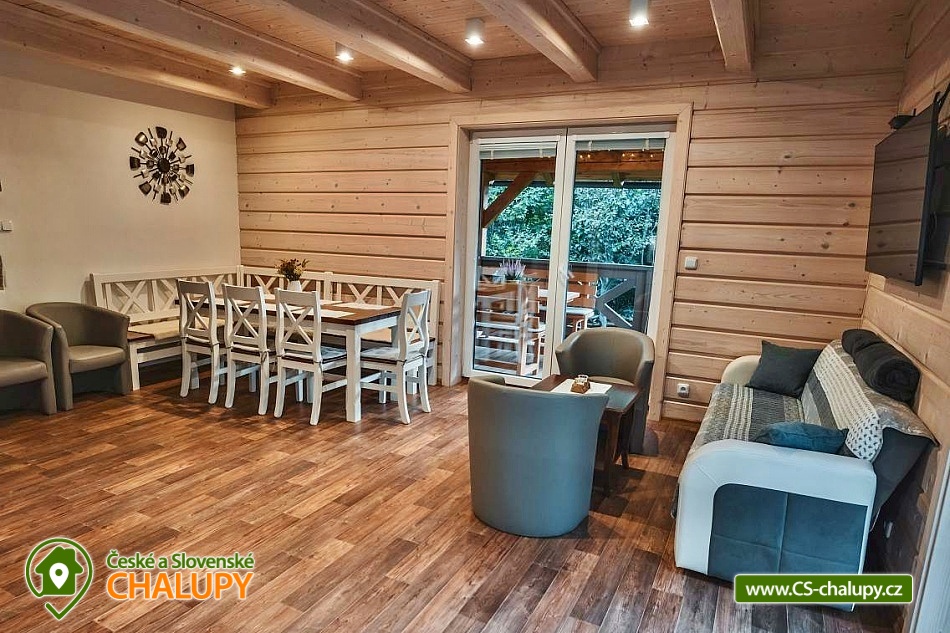 Cottage with outdoor hot tub, terrace and barbecue, dominated by natural materials wood and stone. The cottage is located in a quiet part of the mountain village of Horní Bečva in the Beskydy Protected Area, on the same plot as object 3M-277. Possibility to book both objects at once with a maximum capacity of 20 people (8 + 12 people). Everything is fully equipped and designed to ensure maximum privacy. Ideal for celebrations and moments spent with friends. The cottage offers accommodation for up to 8 people in 2 bedrooms, which are located on the upper floor. Each bedroom has 1 double bed, 2 single beds, a large wardrobe, a table and 4 chairs. On the lower floor you will find a spacious common room with a sofa bed, 4 armchairs, a TV and a fireplace stove, connected to a dining area for up to 10 people. There is also a fully equipped kitchen (dishwasher, oven, refrigerator, microwave, electric kettle, coffee maker for coffee beans and dishes). The sanitary facilities include 2 separate bathrooms with a shower, sink and toilet. A washing machine is available. The water is drinkable, but very hard, so we recommend bottled water for direct consumption. Wifi connection is available throughout the property. Heating is gas (underfloor on the ground floor, radiators on the first floor), there are cast iron wood-burning stoves on the ground floor. You can sit on the outdoor covered terrace, which is located right next to the property. Possibility of using an electric grill, fireplace, outdoor jacuzzi (for up to 4 people) and deck chairs. The little ones will appreciate the slide with swings, trampoline or climbing frames. Parking (for up to 3 cars) and bicycle/ski storage are right next to the property. The cottage is on a hill, in winter we recommend equipping yourself with snow chains. In the surroundings there are possibilities for hiking, cycling, swimming, skiing and mushroom picking. Trips in the surroundings are attractive: Radhošť, Pustevny, the Rožnov pod Radhoštěm open-air museum, the Radegast statue and others. Cyclists will be delighted by the beautiful, easy cycle path along the Bečva River, or the Bílá Bikepark and others. Swimming options include, for example: the Horní Bečva dam, the Bečva biotope swimming pool, the Hutisko-Solanec swimming pool, the Velké Karlovice swimming pool, etc. Nearby ski resorts are, for example: Sachova studánka, Rališka, ski Bílá, for the little ones we recommend Velké Karlovice at the Horal hotel and others. We look forward to seeing you at our place. We look forward to seeing you at our place.