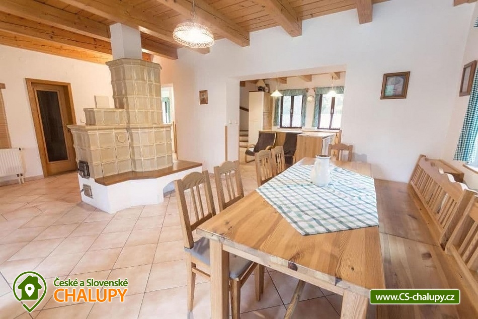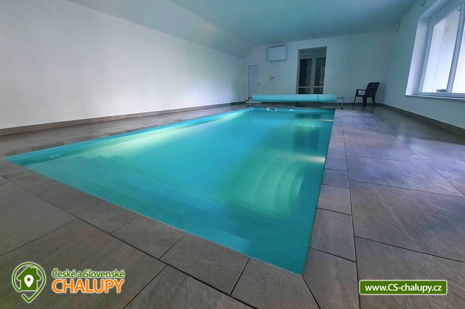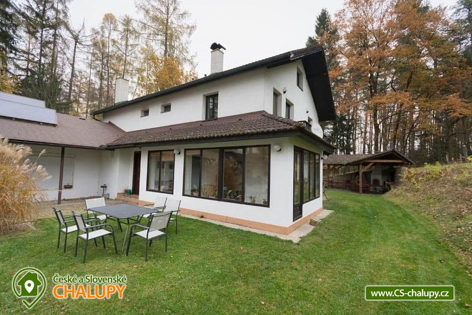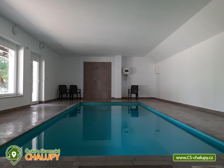 Chalupa s vnitřním bazénem na Vysočině - poloha nedaleko přehrady Trnávka a hradu Lipnice nad Sázavou. Kapacita chalupy je až 13 osob ve 4 třílůžkových ložnicích. Jedna z ložnic má k dispozici přistýlku na výsuvném lůžku a dětskou postýlku. Každá ložnice disponuje vlastní koupelnou (umyvadlo, sprchový kout a WC). Dvě ložnice mají také balkon s výhledem na okolní přírodu. Pro trávení společných chvil Vám poslouží prostorná společenská místnost s kachlovými kamny, posezením, televizí a rádiem s CD přehrávačem. K dispozici je plně vybavená kuchyň (nádobí, keramická varná deska, elektrická trouba, lednice s mrazákem, rychlovarná konvice, mikrovlnná trouba, myčka nádobí, kávovar a toustovač). Největší předností chalupy je vyhřívaný klimatizovaný vnitřní bazén, který je k dispozici celoročně. Během nepříznivého počasí si můžete uvnitř chalupy zahrát stolní tenis nebo šipky. K dispozici také Wi-Fi připojení. Objekt je vytápěn elektrickými radiátory. Na zahradě můžete využít altán s posezením, venkovní krb a udírnu, kde si můžete vychutnat grilování pod širým nebem. Pro sportovní nadšence je připraveno travnaté hřiště, ideální pro volejbal, badminton, stolní tenis nebo fotbal. Pro nejmenší hosty je zde dřevěná prolézačka se skluzavkou. K zapůjčení máme také 5 horských kol. Parkování je přímo u objektu. Chalupa se nachází na polosamotě v prostředí lesů, polí, luk a vodních nádrží, díky čemuž si zde užijete čistý vzduch a klid daleko od ruchu měst. Tipy na výlety: klášter Želiv, zřícenina hradu Orlíku u Humpolce, hrad Lipnice nad Sázavou, zámek Růžkovy Lhotice, zámek Ledeč nad Sázavou, zámek Zruč nad Sázavou, Stvořidla u Ledče, zámek Světlá nad Sázavou. V okolí se nachází také přehrada Želivka-Švihov. Možnosti koupání: vodní nádrž Vřesník, vodní nádrž Trnávka, koupaliště Žabák. Těšíme se na Vás u nás.