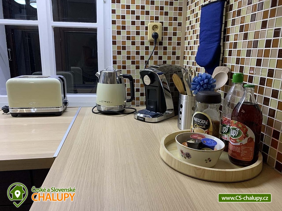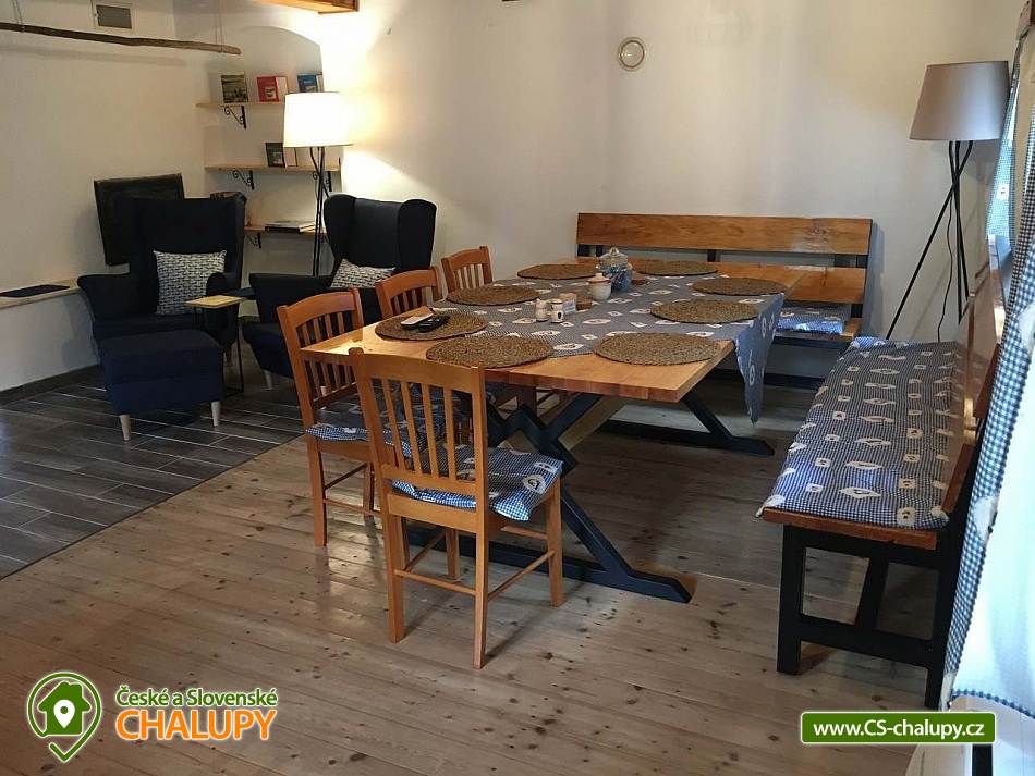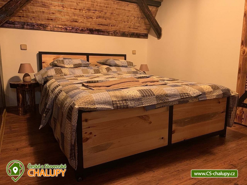 Chalupa s wellness (finská sauna, venkovní vířivka a bazén) v nádherném prostředí na úpatí Adrpasko - teplických skal, oblast CHKO Broumovsko, obec Vlásenka, Česká Metuje. Okolí nabízí nesčetné monosti turistiky, horolezectví, procházek v přírodě i zimních radovánek v podobě sáňkování či lyování. Třeničkou na dortu je vířivka, sauna a venkovní bazén u chalupy, kde si dopřejete zaslouený odpočinek po aktivním dni. Ubytujte se v citlivě rekonstruované polodřevěnici z 19. století. Objekt je vhodný pro jednu skupinu hostů s maximální kapacitou a 8 osob. V přízemí Vás přivítá obývací místnost pro společně strávené chvíle. Oceníte velké dřevěné posezení pro společné stravování, pohodlné křesla, společenské hry a internetovou televizi se satelitním připojením a slubou Netflix. Hřejivou atmosféru vytvoří krbová vloka. Přejděte plynule do vybavené kuchyně, kde je radost uvařit společný oběd či večeři. Vyuijete elektrickou troubu a sporák, lednici s mrazákem, mikrovlnnou troubu, rychlovarnou konvici, kávovar, toastovač i topinkovač. K dispozici je dokonce i kontaktní gril. Koupelna v přízemí nabízí komfort v podobě sprchového koutu, toalety a ručníků. Na patře dostatek soukromí nabízejí dvě lonice. Lonice Veronika je zařízena manelskou postelí a dvěma samostatnými lůky, v lonici Viktorka se nacházejí dvě manelské postele. Okouzlí Vás nádherná, prostorná koupelna s "walk-in" sprchovým koutem, vanou, toaletou a přebalovacím pultem. Mysleli jsme i na nejmení, pro které jsme připravili dětskou postýlku i dětskou jídelní idli. Bezplatné WiFi připojení na internet je samozřejmostí. Na dvoře kadého návtěvníka potěí vířivka, v letním období venkovní bazén a v případě chladného počasí určitě i sauna. Víme, e nikomu se nechce stát u sporáku kdy je venku hezky, udělejte si proto na dvoře grilovačku a poseďte si na venkovním posezení na terase. Pokud si dovezete vlastní lye či kola, bez problémů si je uschováte v garái. Oblast je součástí Chráněné krajinné oblasti Broumovsko. Vyberte se poznávat přírodu, navtivte zříceninu hradu Skály, rozhlednu Čáp nebo vodopád v Anenském údolí. Krásy podzemí odhalí Mariánská jeskyně a jeskyně Kovárna. Jednoznačně si udělejte výlet na Adrpasko-teplické skály. V okolí se nachází mnoství nádherných lezeckých cest, zeptejte se nás na ně, rádi Vám poradíme. Za historií či kulturou se vydejte na Hrad Střmen do Muzea papírových modelů či do Broumoského klátera. Nezapomeňte se zastavit v Pivovaru Broumov a na ovčí bio farmě M & M v onov. No a v zimě máte nejblií vlek nebíčka jen 4 km vzdálený nebo si vychutnejte lyování ve Ski Kamenec Teplice nad Metují.