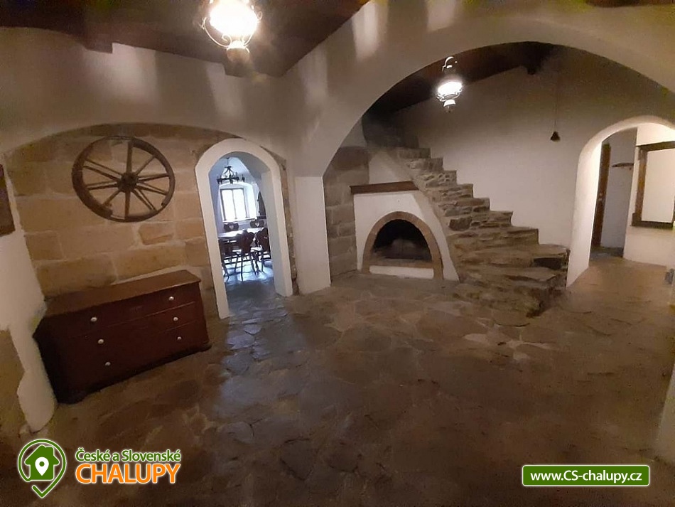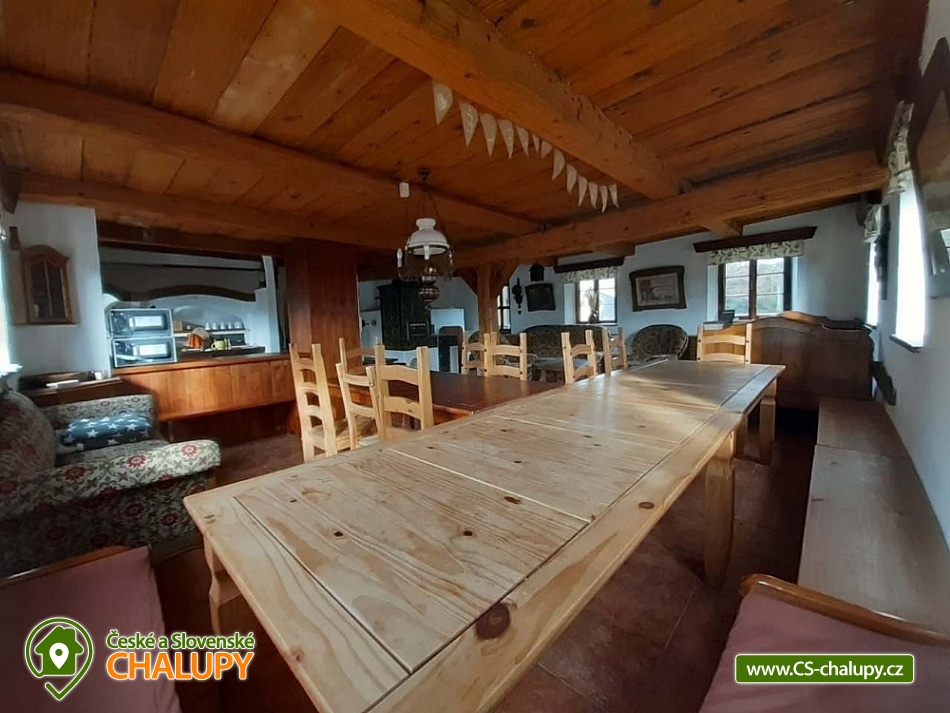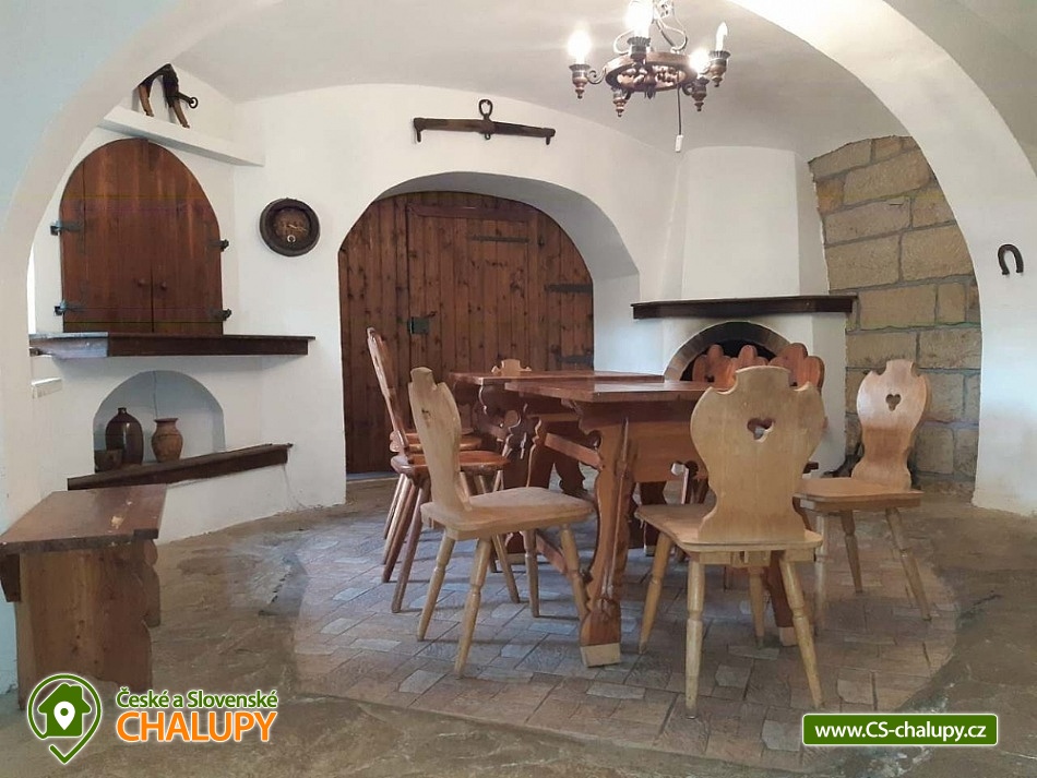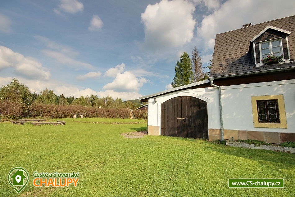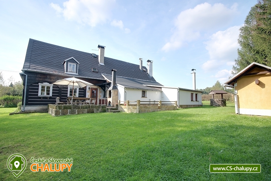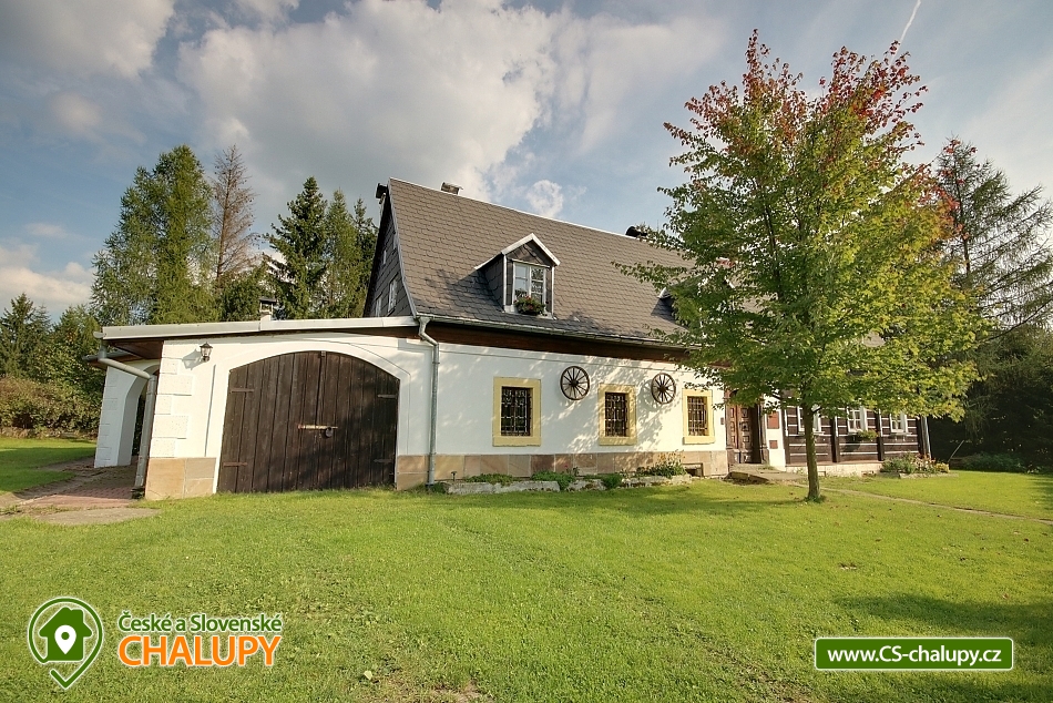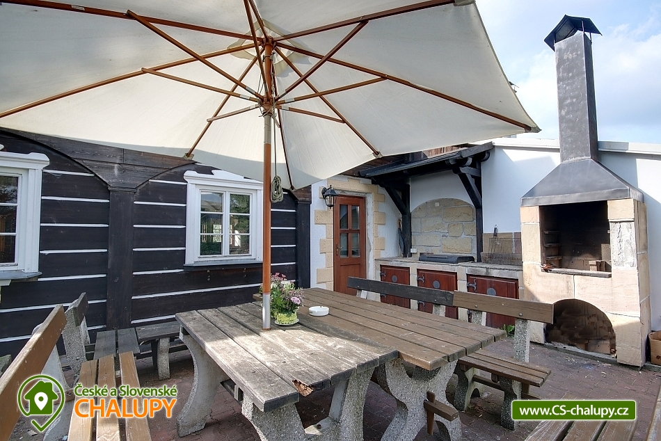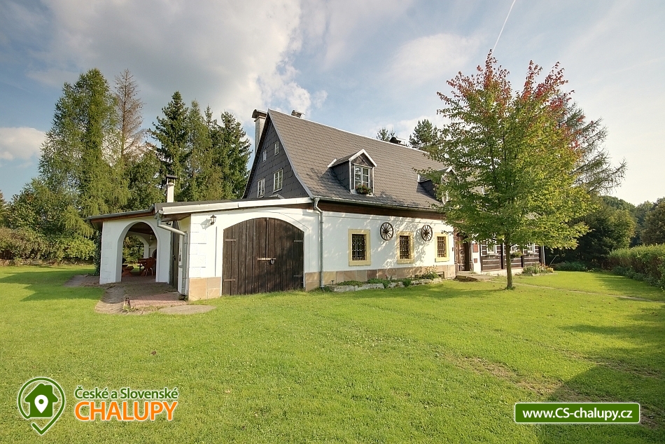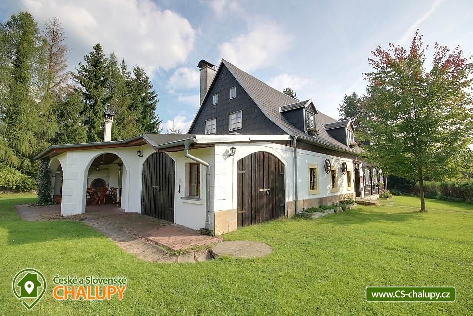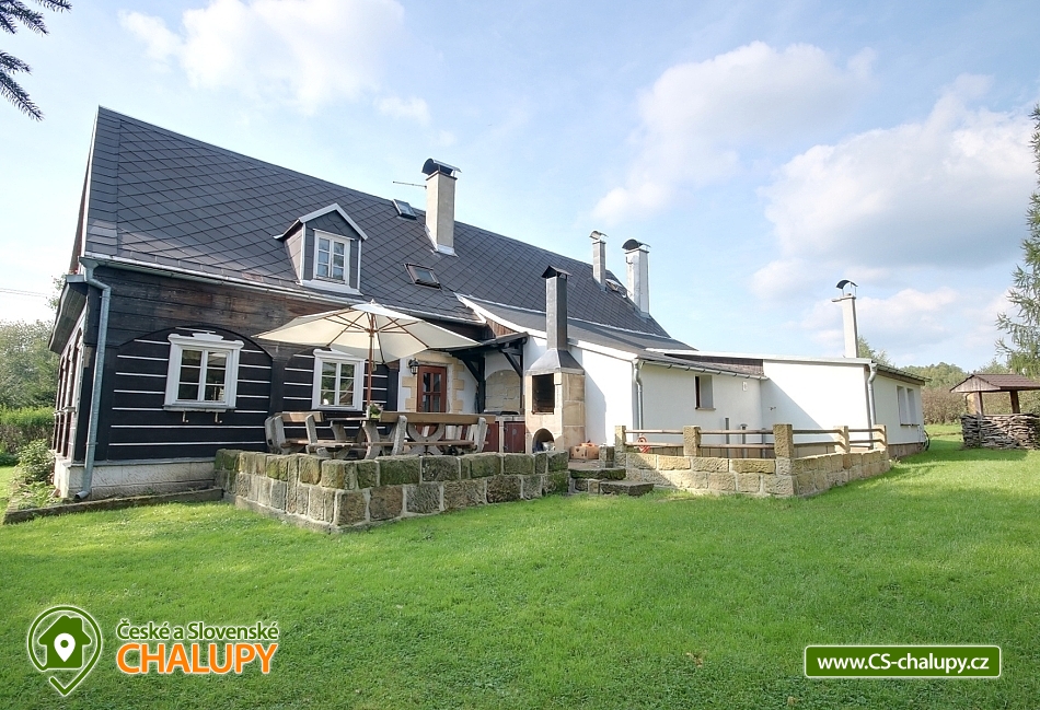 Cottage Doubice - Czech Switzerland. Renting a Doubice cottage. Cottage in the recreation area of České Švýcarsko - Jetřichovice. Accommodation Chřibská, Lusatian Mountains. The log cabin is located in the small village of Doubice in the eastern part of the Czech Switzerland National Park. On the ground floor of the cottage you will find a fully equipped kitchen (glass ceramic hob and electric oven, fridge, dishwasher, microwave oven, coffee machine, kettle) and a living room with a dining table, sitting area and tiled stove with the possibility of lying behind the stove (over the stated capacity of the building ). There is also a 2-bed bedroom (2 x single beds) on the ground floor. There are 3 separate apartments available on the first floor of the cottage. Each has 4 beds (2x double bed, 2x single bed) and has its own kitchenette and sanitary facilities. One of them has TV+SAT (a total of 3 TVs in the building). In the attic of the cottage you will find another kitchenette and 2 bedrooms: a 6-bed room (1x double bed and 4x single beds) and a 4-bed room (3x single beds and 1x children's bed). The property has a wine bar with a tap and a fireplace, as well as a games room with table football, billiards and electric. arrows. You can also use a common room with a fireplace and sound system. On the ground floor of the cottage there is a sauna and a whirlpool for 5 people. The social facilities of the building consist of 4 bathrooms (always a bathroom with a shower and a bathtub, on the ground floor there is also a washing machine) and 6 toilets. The cottage is heated by a tiled stove in the living room with heat distribution to all rooms, as well as electric floor heating and direct heaters. On the fenced plot there are two terraces (one of which is covered), garden furniture, grill, outdoor fireplace, fireplace with seating and a children's corner. You can park directly at the building. The cottage is suitable for hikers and cyclists, the surroundings are interwoven with a dense network of marked trails. Chalupa Doubice is located in the youngest Czech national park, České Švýcarsko, established for the purpose of protecting the unique sandstone landscape. Here you can visit the well-known Pravčická Gate, which inevitably includes the Sokolí hnízdo excursion castle with a stylish restaurant. From it, paths and stairs lead to rock platforms with wonderful views. You can't miss the nearby Jetřichovick rock town, where the ruins of the Falkenštejn castle or the famous Mariina lookout await you. Hřensko with its gorges is definitely worth a trip. We recommend renting Doubice Cottage in the beautiful countryside of Czech Switzerland.