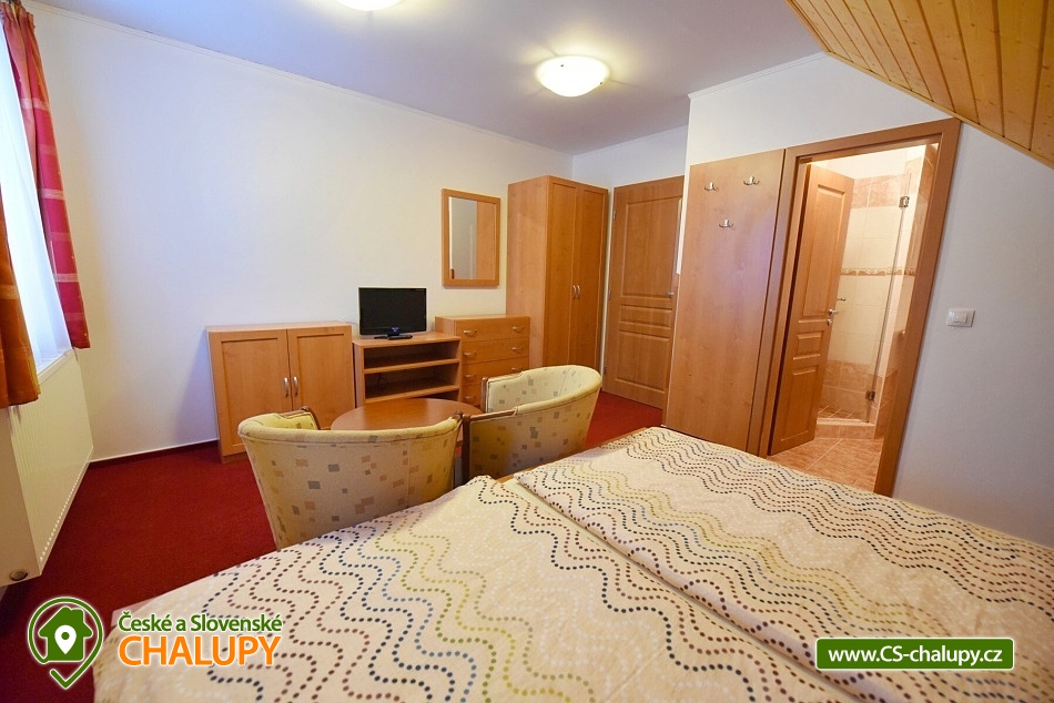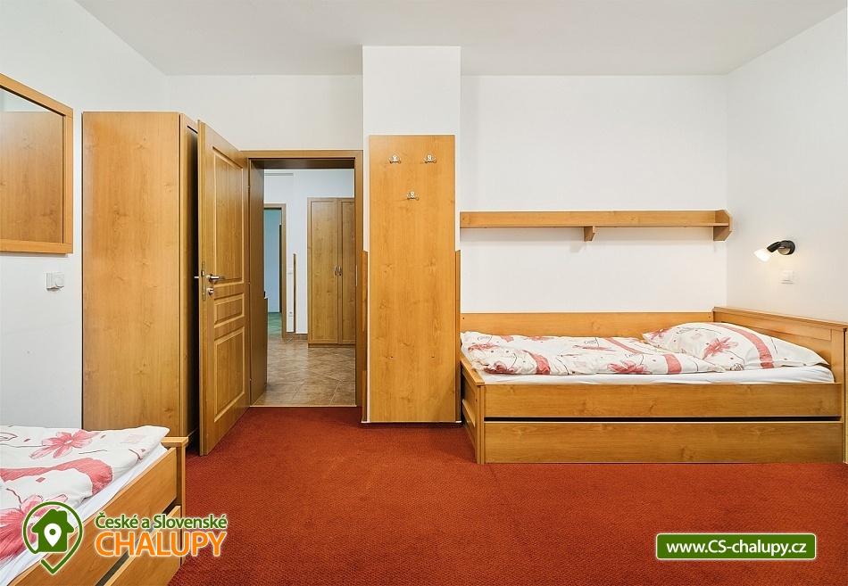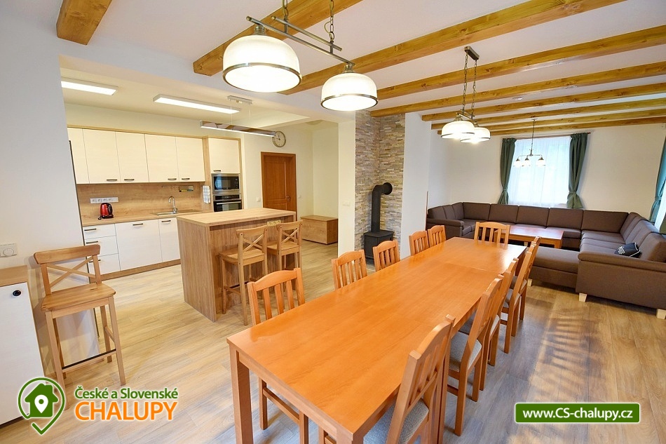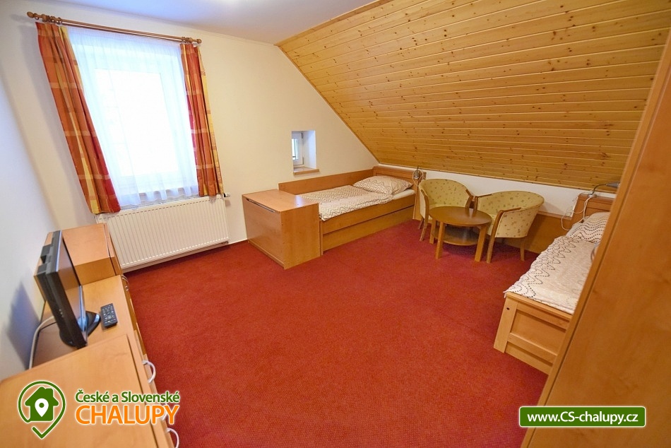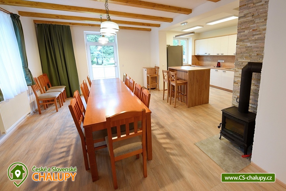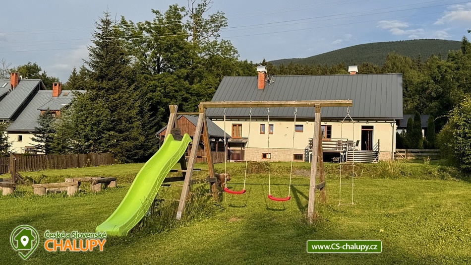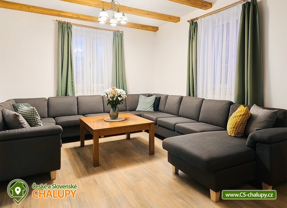 The comfortable Zahálka cottage with sauna is located in the beautiful nature of the Jeseníky Mountains in the village of Ramzová, which is part of the Ostružná village. The cottage is located in close proximity to the cable car to Čerňava and Šerák and the Ramzová Ski Resort. There are many hiking, cycling and cross-country trails in the area. Chata Zahálka offers accommodation for 21 people in 6 bedrooms. The cottage consists of three equally equipped apartments (apartments A, B, C) with their own kitchen and bathroom. The cottage is only rented as a whole. All apartments have two bedrooms, in total there is one four-bed bedroom (2 single beds + 2 extra beds) and one triple bedroom (double bed + 1 extra bed). A cot can be rented in apartments A and C. The apartments also include a living area with a sofa, a dining table and a kitchenette (microwave oven, fridge, hob and kettle). There is a TV. Apartment A has 1 bathroom with toilet and 1 separate toilet. Apartments B and C have 2 bathrooms with WC. All accommodation can spend time together in a common room with a fireplace, a sofa set, a dining room and a kitchen equipped for 21 people (hob, kettle, oven, American fridge and dishwasher). There is also a TV room and a table football room. You can relax in the Finnish sauna with reclining space for up to 4 people. The cottage is also adapted for children, there is a children's playroom, two highchairs and a potty and a step to the sink in each bathroom. Social facilities in common areas include 1x bathroom and 3x WC. A washing machine and dryer can also be used. Heating is provided by gas heating, and in the common room you can warm yourself up with a fireplace stove. WIFI internet connection is available throughout the building. You can sit outside on the terrace with access from the garden or common room or in the barbecue gazebo. Around the cottage is a grassy garden (over 2000 m²) with a fireplace and a stream. There is an outdoor storage room for bikes and skis and a storage room for wood, barbecue and sports equipment. Children can look forward to the sandpit and swings. You can park right next to the building. In winter, snow chains are recommended. In the vicinity of the building, hiking, cycling, swimming, mushroom picking, cross-country skiing and skiing are possible. Tennis courts are available nearby. Swimming options include, for example: Domašov - Bělá pod Pradědem pool, Jeseník - Priessnitz pool, Jeseník swimming pool, Žulová - Brankopy quarry, Arcibiskupský quarry, Vycpálek quarry, Hynčice pod Sušinou - Úžas pond, Žulová quarry, Rampa quarry, Česká Ves pool, etc. In winter, nearby ski resorts are available: JONAS PARK Ostružná, Ski Club Ramzová pod Klínem, Ramzová - Skiaréna R3, Ramzová - Bonera, Zetocha Petříkov and others. The Petříkov bobsleigh, Šerák - the starting point for ridge routes with a wonderful view and a mountain hut, Lesní bars - Lipová, Faunapark Lipová - a garden full of animals, Krápníkové jeskyně Na Pomezí, Branná - a village with wellness and its own brewery or spa the town of Jeseník with an outdoor spa. We look forward to seeing you here.