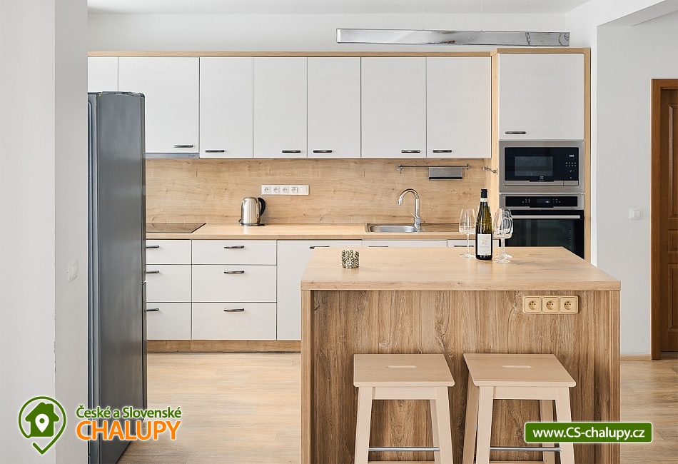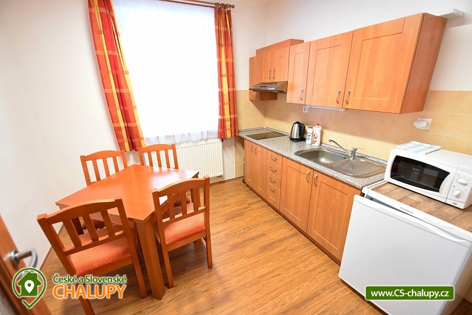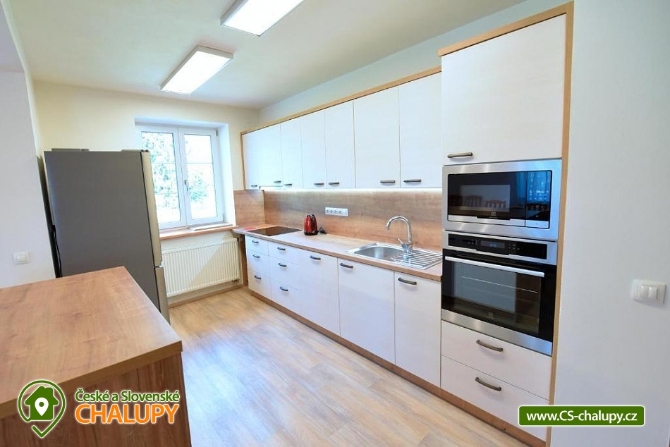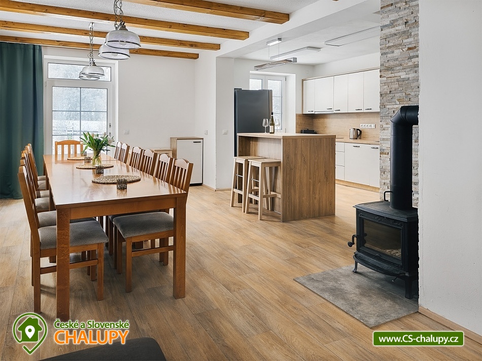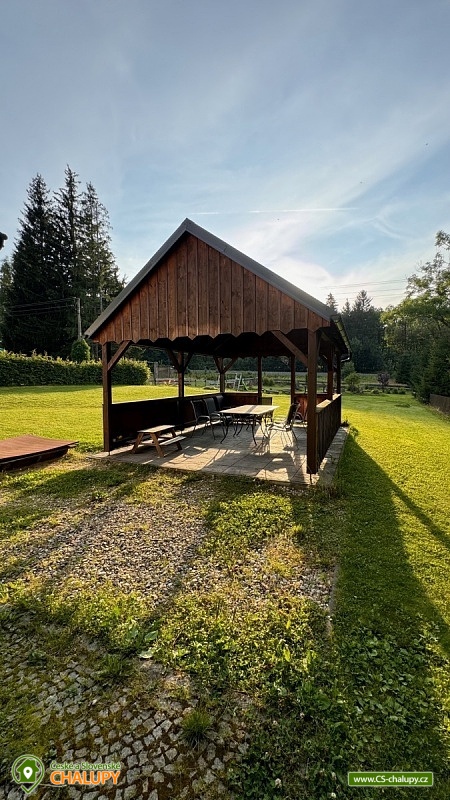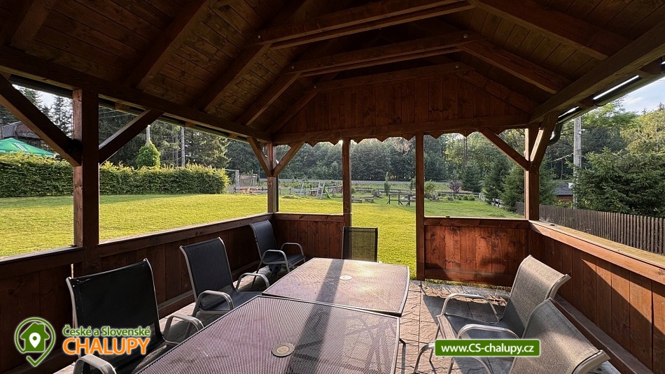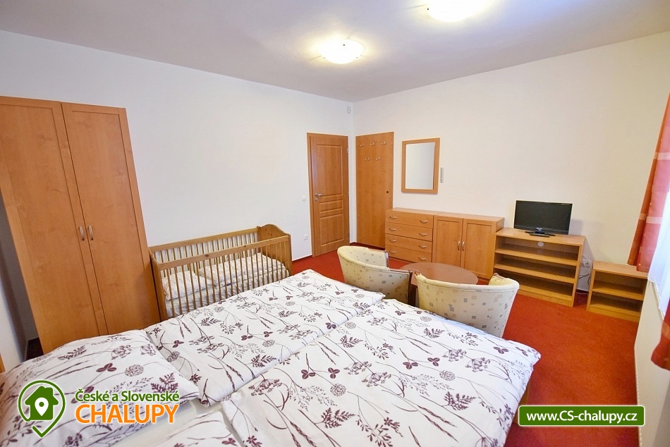 The comfortable Zahálka cottage with sauna is located in the beautiful nature of the Jeseníky Mountains in the village of Ramzová, which is part of the Ostružná village. The cottage is located in close proximity to the cable car to Čerňava and Šerák and the Ramzová Ski Resort. There are many hiking, cycling and cross-country trails in the area. Chata Zahálka offers accommodation for 21 people in 6 bedrooms. The cottage consists of three equally equipped apartments (apartments A, B, C) with their own kitchen and bathroom. The cottage is only rented as a whole. All apartments have two bedrooms, in total there is one four-bed bedroom (2 single beds + 2 extra beds) and one triple bedroom (double bed + 1 extra bed). A cot can be rented in apartments A and C. The apartments also include a living area with a sofa, a dining table and a kitchenette (microwave oven, fridge, hob and kettle). There is a TV. Apartment A has 1 bathroom with toilet and 1 separate toilet. Apartments B and C have 2 bathrooms with WC. All accommodation can spend time together in a common room with a fireplace, a sofa set, a dining room and a kitchen equipped for 21 people (hob, kettle, oven, American fridge and dishwasher). There is also a TV room and a table football room. You can relax in the Finnish sauna with reclining space for up to 4 people. The cottage is also adapted for children, there is a children's playroom, two highchairs and a potty and a step to the sink in each bathroom. Social facilities in common areas include 1x bathroom and 3x WC. A washing machine and dryer can also be used. Heating is provided by gas heating, and in the common room you can warm yourself up with a fireplace stove. WIFI internet connection is available throughout the building. You can sit outside on the terrace with access from the garden or common room or in the barbecue gazebo. Around the cottage is a grassy garden (over 2000 m²) with a fireplace and a stream. There is an outdoor storage room for bikes and skis and a storage room for wood, barbecue and sports equipment. Children can look forward to the sandpit and swings. You can park right next to the building. In winter, snow chains are recommended. In the vicinity of the building, hiking, cycling, swimming, mushroom picking, cross-country skiing and skiing are possible. Tennis courts are available nearby. Swimming options include, for example: Domašov - Bělá pod Pradědem pool, Jeseník - Priessnitz pool, Jeseník swimming pool, Žulová - Brankopy quarry, Arcibiskupský quarry, Vycpálek quarry, Hynčice pod Sušinou - Úžas pond, Žulová quarry, Rampa quarry, Česká Ves pool, etc. In winter, nearby ski resorts are available: JONAS PARK Ostružná, Ski Club Ramzová pod Klínem, Ramzová - Skiaréna R3, Ramzová - Bonera, Zetocha Petříkov and others. The Petříkov bobsleigh, Šerák - the starting point for ridge routes with a wonderful view and a mountain hut, Lesní bars - Lipová, Faunapark Lipová - a garden full of animals, Krápníkové jeskyně Na Pomezí, Branná - a village with wellness and its own brewery or spa the town of Jeseník with an outdoor spa. We look forward to seeing you here.