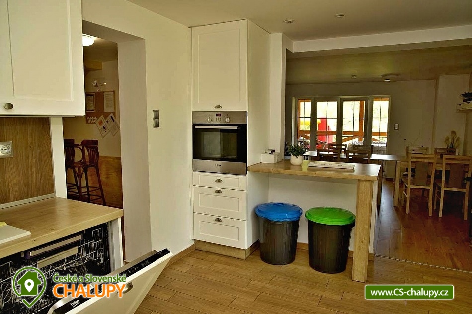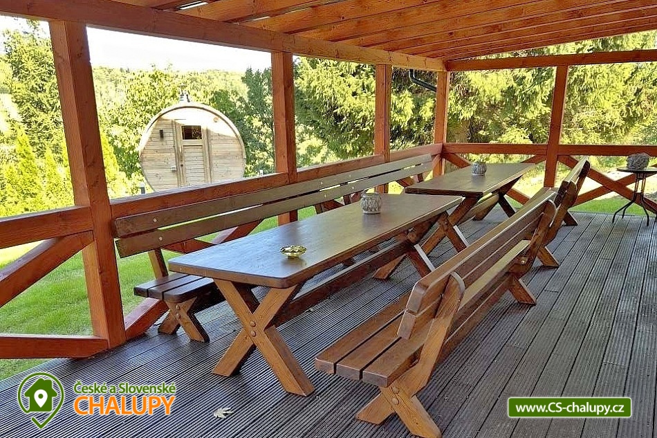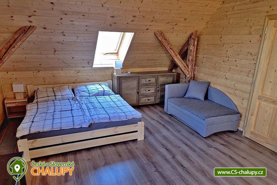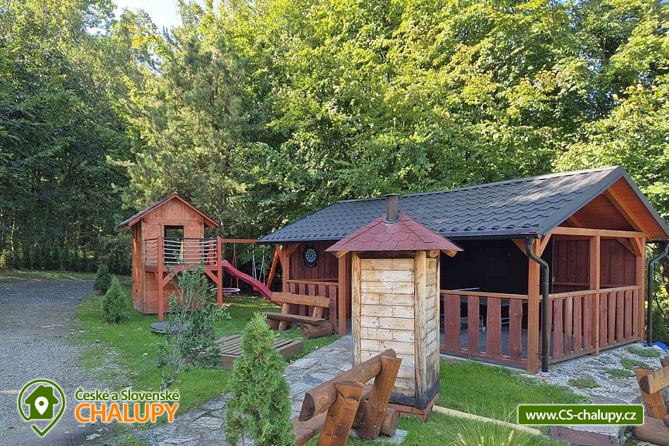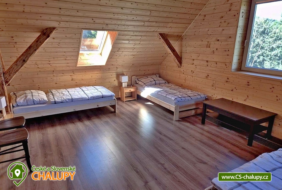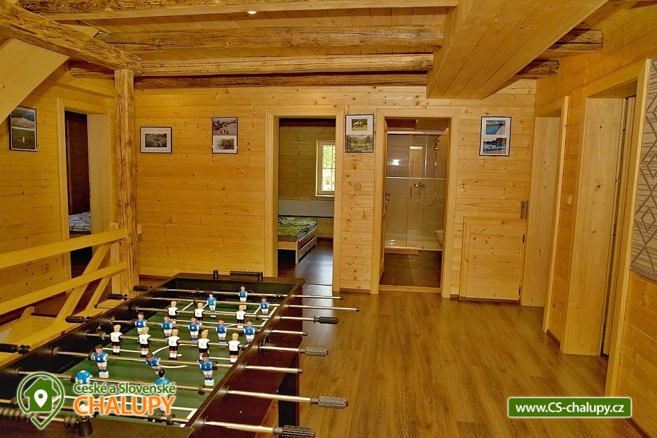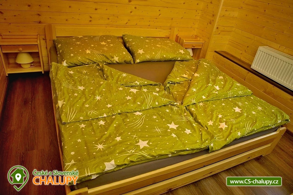 Comfortably equipped wellness cottage near Indrů (Finnish sauna + heated bathing barrel + whirlpool) equipped for maximum comfort and family stays (inflatable bouncy castle). Location in a quiet part of the cottage settlement near the village of Zálesí u Javorník in the Rychlebské hory. Nature lovers will enjoy hiking and cycling, or just relax and enjoy the beautiful view of the surrounding pastures and forest. We place maximum emphasis on cleanliness - satisfied guests will appreciate our work. The cottage for rent provides accommodation for up to 22 people in 7 bedrooms. DESCRIPTION: Ground floor - bedroom (double bed, 2 persons). Living room (folding couch), TV and SAT. Fully equipped kitchen (ceramic hob, electric oven, microwave oven, kettle, fridge with freezer, capsule coffee machine and dishwasher). Floor - room no. 1 (double bed + single bed). Room No. 2.- (double bed). Room No. 3.- (double bed). Room No. 4. (double bed + single bed). Room No. 5. (double bed + 2 x single beds). Room No. 6 (double bed + 2 single beds). Upstairs there is also a common room where you can sit on the sofa or play table football. Social facilities: 2x bathroom (shower) + 2x WC. Heating: fireplace stove + automatic pellet boiler. Parking right next to the cottage, 10 parking spaces. In the garden near the cottage there is a bouncy castle (for a fee) and a sandpit for your children. There is table tennis and darts under the gazebo. You can also play pétanque, cricket or frisbee in the garden. You can leave your sports equipment in the shed. On summer days, you can use the charcoal grill or fire pit. Treat yourself to draft beer on the terrace with outdoor seating - we can lend you a beer tap. No one will disturb you during your stay because there is a very bad mobile signal at the cottage and we don't even have internet here. Surroundings: Rychlebské trails - cycling, Lesní bar Stříbrný pramen - Zálesí, which is run by the owner of the cottage himself. Also, the Jánský Vrch castle in Javorník, Borůvková hora - a nearby 899 m high peak with the possibility of visiting the observation tower, Tančírna in Račí údolí - a reconstructed architectural monument (concerts, exhibitions). Indoor swimming pool Javorník, Swimming pool Červenka and Otmuchowski lake. Ski resorts in winter: Filipovice, Horní Lipová, Ladek Zdrój. We look forward to seeing you here.