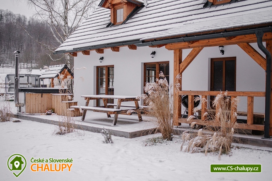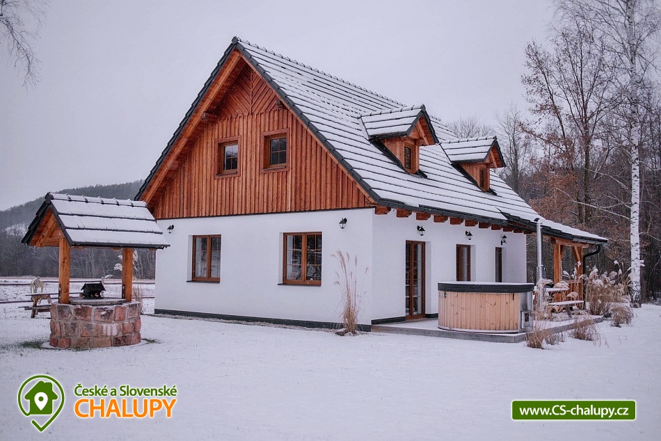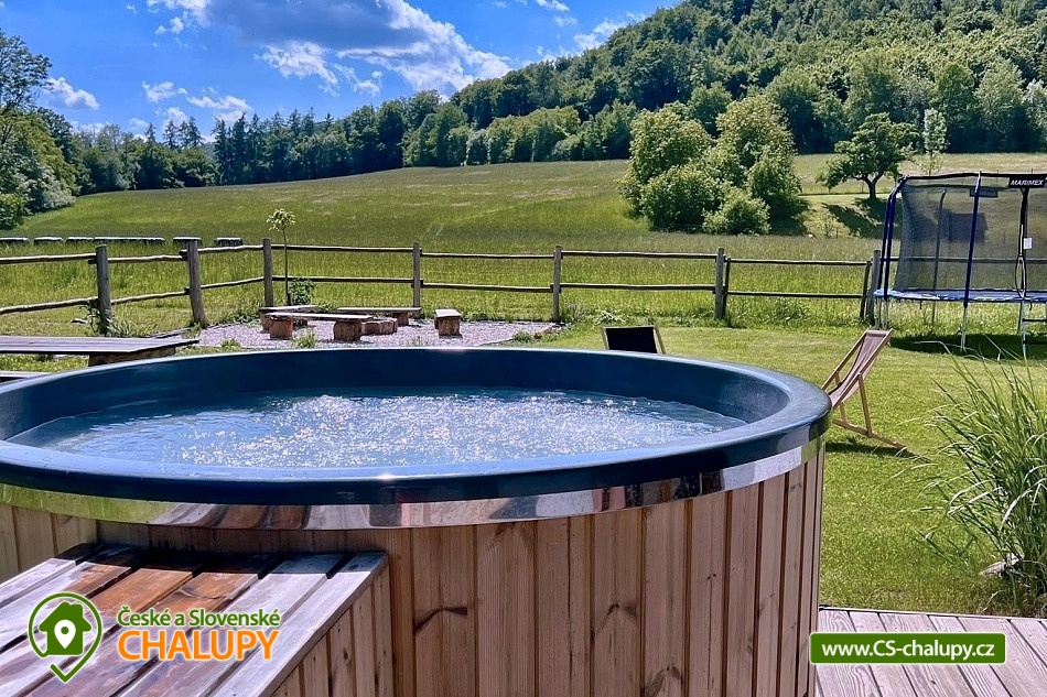 The cottage is located in the small village of Doly, secluded by the forest in a quiet and picturesque part of nature, ideal for those looking for rest and escape from the everyday hustle and bustle. You can look forward to relaxing in a hot tub and beautiful views of the surrounding countryside. The cottage offers accommodation for 11 people in four separate attic bedrooms. The first three bedrooms are 3-bed (1 double bed, 1 single bed), the fourth bedroom is 2-bed (1 double bed). For social moments, there is a living room on the ground floor, where you will find a large comfortable couch, a hanging rocking chair and a functional tiled stove. The living room is loosely connected to the dining area and a fully equipped kitchen (oven, dishwasher, refrigerator, freezer, hob, kettle, coffee maker, toaster and dishes). From the dining room you can directly enter the outdoor terrace with seating. The sanitary facilities include one bathroom with a bathtub and shower and two toilets. Heating is provided by a heat pump. Wifi internet connection is available throughout the property. There is a spacious grassy garden with a well around the cottage, where you can spend pleasant moments on the terrace with wooden seating and a grill. There is also a fireplace. You can relax in the year-round bathing barrel. The little ones will appreciate the swings with a slide, trampoline or sandpit. Parking is right next to the property. In the vicinity of the cottage, there are opportunities for hiking, cycling, swimming, mushroom picking, skiing and cross-country skiing. Swimming options include, for example: the bathing biotope in Hlinsko, the Krounka River, the Chrudim swimming pool, the Seč dam, etc. There are nearby ski resorts, for example: the Hlinsko Ski Resort, the Dolní Morava Ski Resort or the Čachnov cross-country skiing trails. For trips in the surrounding area, Toulovcova Maštale (rock maze), the Horkami Granite Trail, Pivnická rokle, the Borůvka lookout tower, the Terezka lookout tower, the Toulovcova lookout tower, the fallow deer and deer park at the Nové Hrady Chateau, Litomyšl Chateau, Rychmburk Castle, Košumberk Castle, the Luže Rope Park, the Peklo Čertovina amusement park and the Slatiňany Stud Farm are all attractive. We look forward to seeing you there.