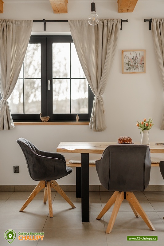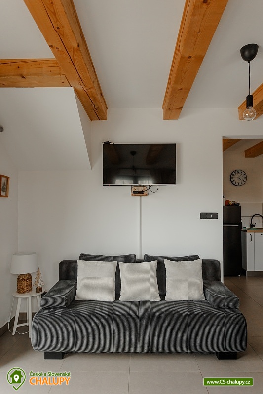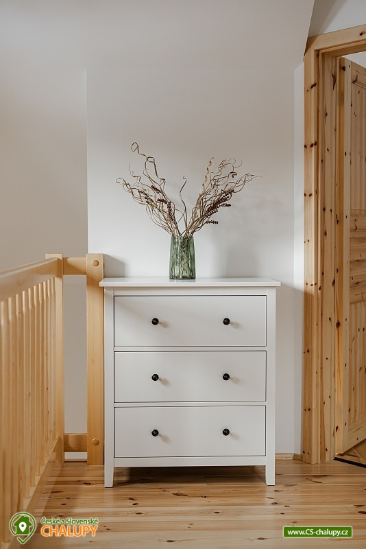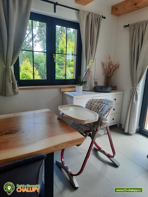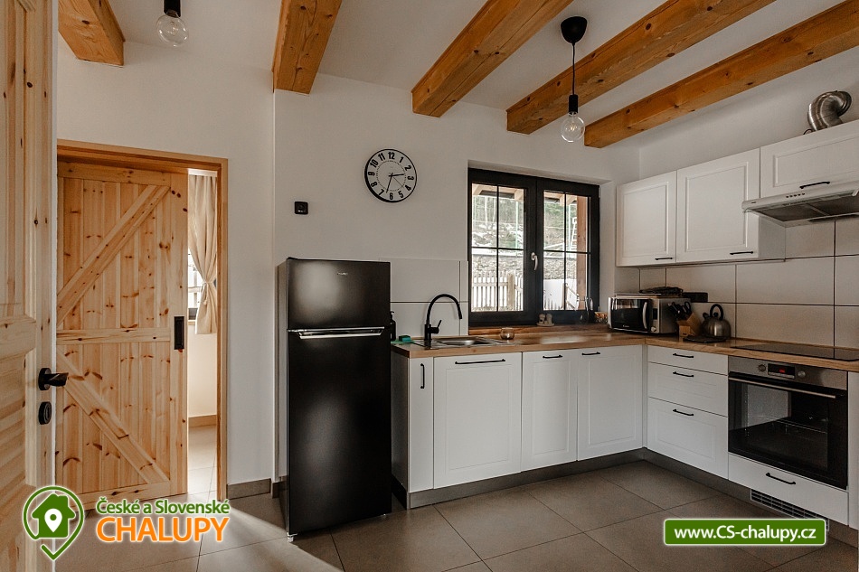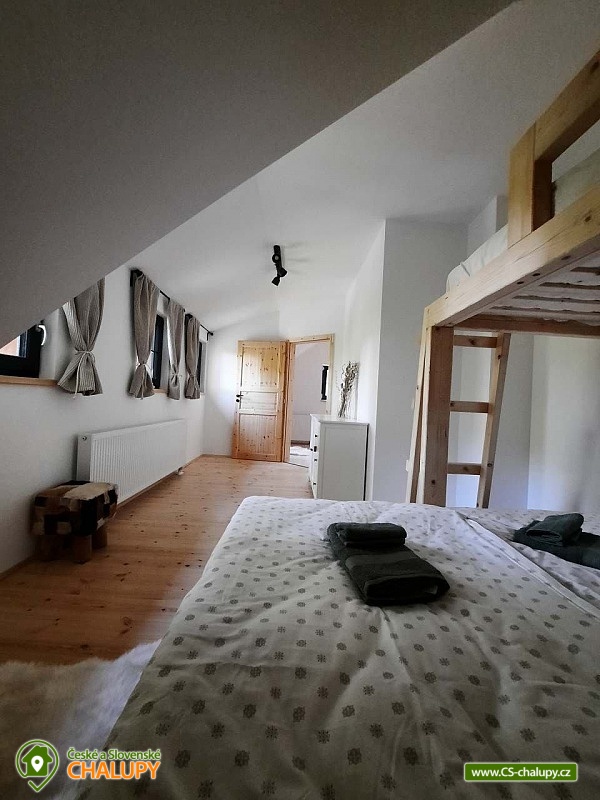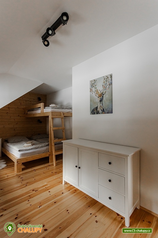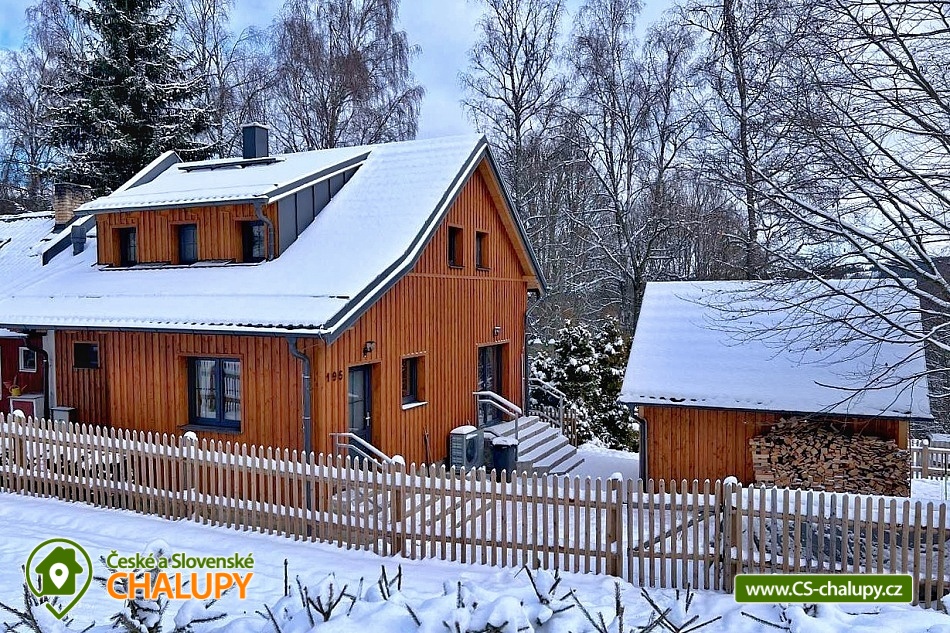 Chalupa se saunou a kachlovými kamny nedaleko naučné stezky Povydří v CHKO Šumava. Chalupa k pronájmu pro až 8 osob má 3 samostatné ložnice, vybavenou kuchyň spojenou s obývacím pokojem, kde dominuje velký jídelní stůl pro Vaše společné chvíle a v zimě zahřejí kachlová kamna. V přízemí je jedna ložnice s manželskou postelí a vlastní koupelnou s WC. V přízemí je pak i další samostatné WC. V patře naleznete 2 totožné ložnice, kde se nachází manželská postel s jednolůžkem nad ní a společná koupelna s WC na chodbě. Kompletně vybavená kuchyně zahrnuje: myčka, lednice, kávovar Nespresso - kapsle klasik, indukční varná deska, trouba a mikrovlnná trouba. Vytápění zajišťuje tepelné čerpadlo vzduch - voda, pro pohodové večery kachlová krbová kamna v obývacím pokoji. Vaše kola a lyže si pohodlně uložíte do úschovny v chalupě. Po aktivním dni plném zábavy, které nabízí okolí se můžete posadit do pergoly na zahradě. Na grilu, který je součástí vybavení, si připravíte něco dobrého a budete relaxovat výhledem do kraje. Děti si zatím pohrají na oplocené na zahradě. Pokud šlápnete přes den pořádně do pedálů nebo projedete běžkařské trasy, večer Vám přijde vhod odpočinek ve finské sauně. V nejbližším okolí můžete podniknout tyto výlety: na Klostermannovu vyhlídku, Čeňkovu pilu, kostel Nejsvětější Trojice v Srní, vlčí výběh v Srní, naučná stezka v Povydří a spousty dalších. Kašperk je nejvýše položený královský hrad v Čechách. Byl postaven na příkaz Karla IV. V tomto malebném koutu Šumavy u nedalekých 3 km vzdálených Kašperských hor. Prášilské jezero je jedním z úžasných šumavských ledovcových jezer. Jezero je přístupné po červené turistické trase. Těšíme se na Vás u nás.