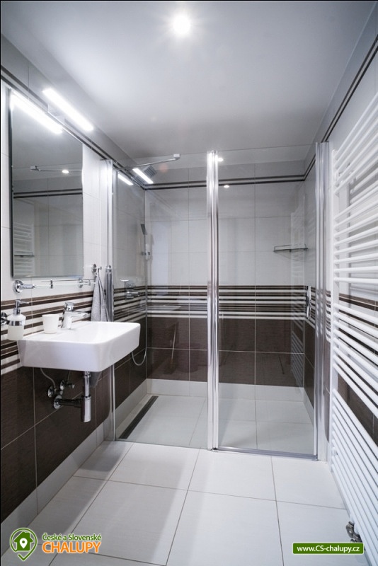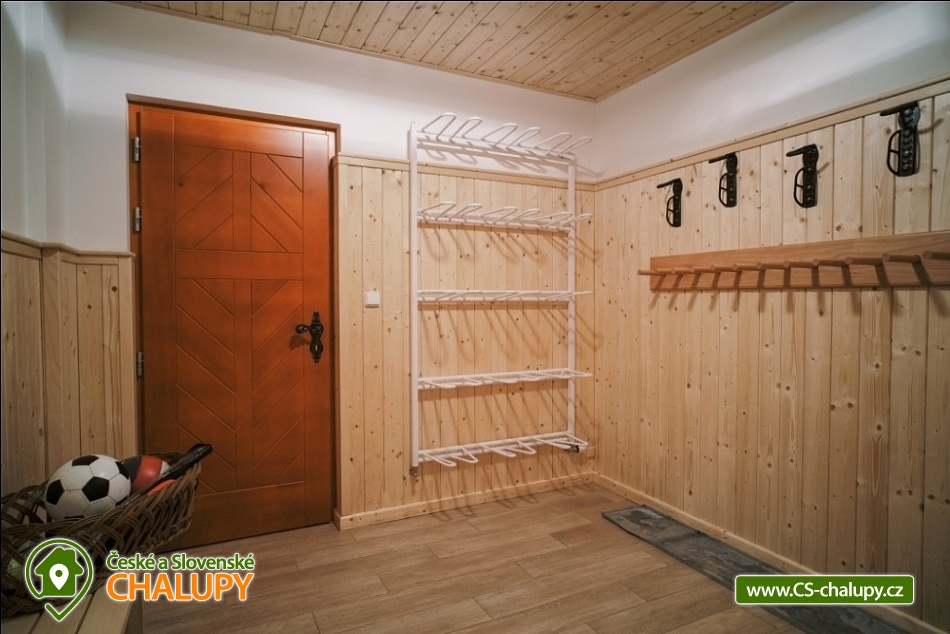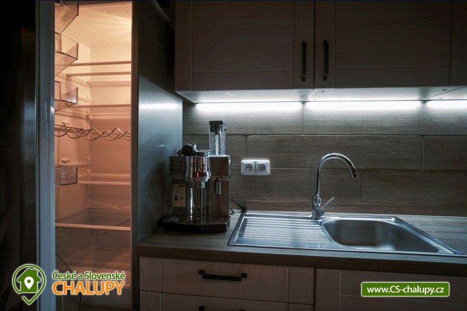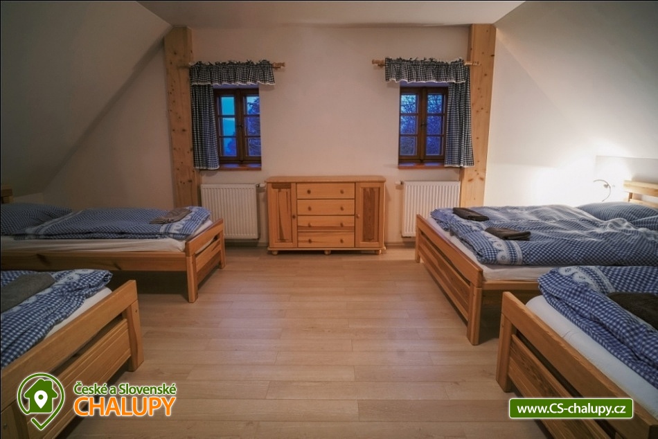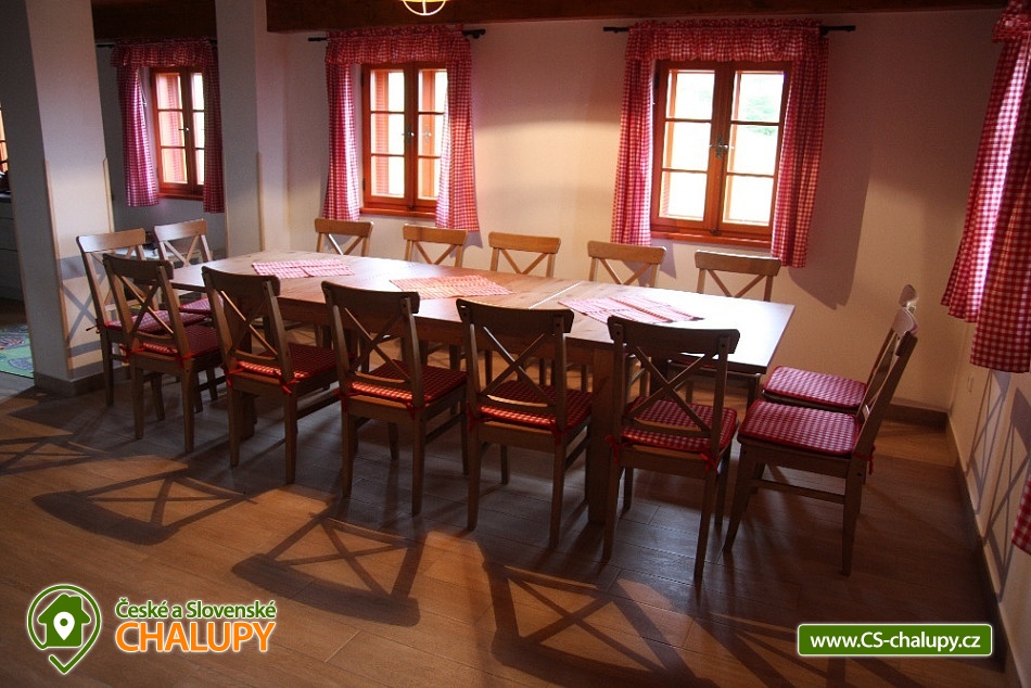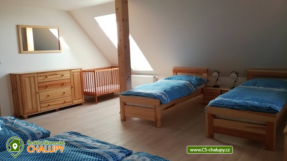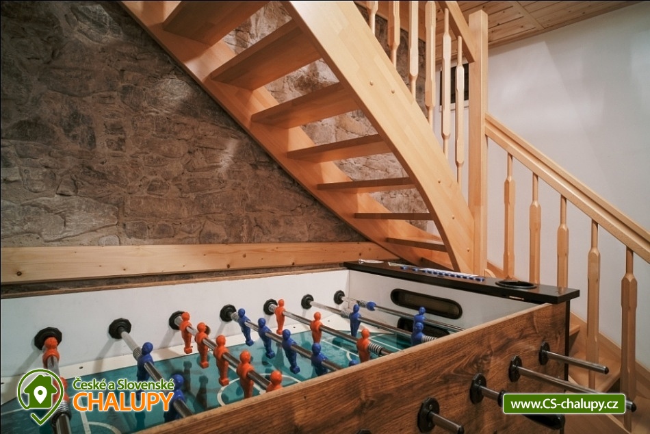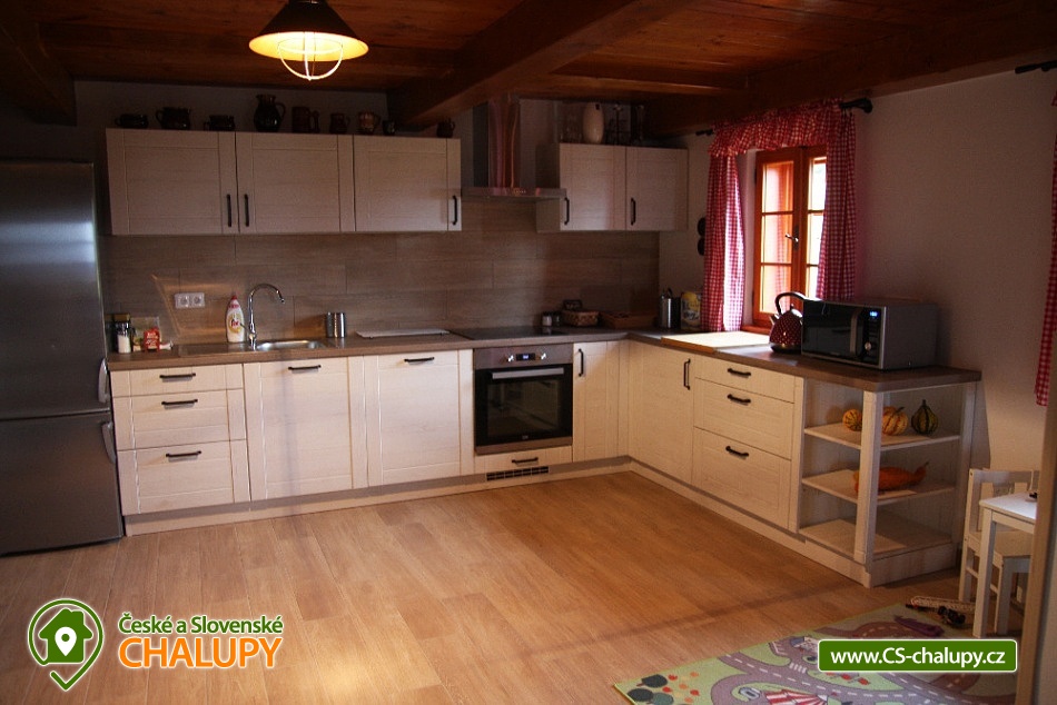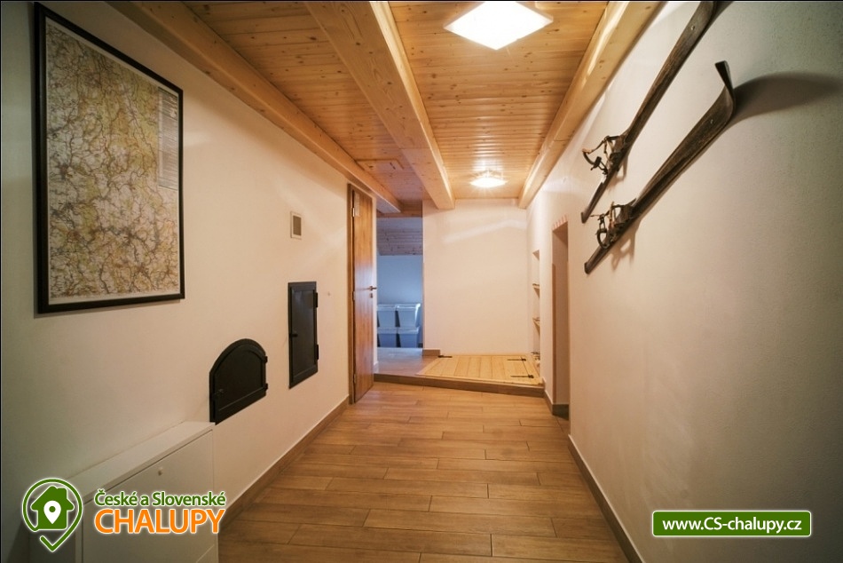 Cottage Kunčinka - Zdobnice - Kuncina Ves. Newly renovated and luxuriously furnished holiday cottage with sauna Kunčinka stands in the small village Kunčina Ves near the ski resort Zdobnice in the heart of the Eagle Mountains. It provides cozy accommodation for families with children and all other age groups throughout the year. On the ground floor of the cottage there is a spacious sitting room with fully equipped kitchen, seating for 14 persons, sofa, TV, tiled stove with oven and play corner for children, bathroom and toilet, WIFI. Guests have a sauna for about 7 people with shower and toilet, bike room, ski room and wine bar with seating for 10 people, bar and cooler for beer barrels. On the 1st floor there are 4 spacious bedrooms for 17 persons (with 2 extra beds) - 1st room: 5-6 pers., 1x double bed, 3x single bed + possibility of one extra bed., 2nd room: 3 pers., 1x double bed and 1x single bed, 3. room: 4 pers., 1x double bed, 1x bunk bed (200x80cm), 4. room: 5-6 pers., 1x double bed, 3x single bed + possibility of one extra bed, bathroom and 2x separate WC. For the smallest customers there is a portable baby cot, dining chair, changing pad, potty other small items for maximum comfort. Heating is solved by heat pump, throughout the ground floor is underfloor heating, upstairs are radiators. It is also possible to flood in a tiled stove and relax in the oven. The cottage includes an outdoor seating area with gas grill with the possibility of renting barbecue equipment, fireplace, playground with sandpit, climbing frame and trampoline and playground for volleyball, netball or badminton. Parking is available in the parking lot directly at the cottage (6 parking spaces). In winter, we recommend snow chains with more snow. The cottage is located in a remote area and is surrounded by a large meadow and adjacent forest. Enjoy panoramic views of the surrounding countryside, romantic walks in the surrounding area and mushroom pickers. Hiking and cycling enthusiasts can look forward to a number of hiking trails and a network of cycle paths in the area. Children can enjoy winter sleigh rides near the cottage, adults and older children can use the offer of several ski resorts and choose from a number of cross-country trails. The best accessible ski resort is Zdobnice about 800 m from the cottage (the upper station of the lift Valčenka, accessible by car or on foot). It offers 3 ski lifts, a ski school, ski equipment hire, snacks and a children's play area.