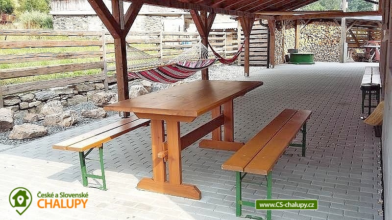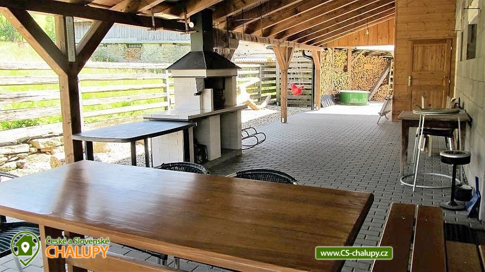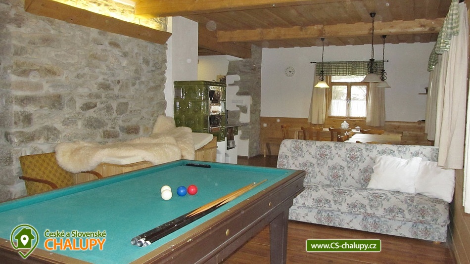 Cottage with sauna - Žárová - Velké Losiny. Cottage U Prezidenta is located in the part of the village of Velké Losiny - Žárová. It lies in the picturesque nature of the Jeseníky Mountains and you can enjoy beautiful views of the Hrubý Jeseník Mountains, surrounding pastures, forests and meadows. The cottage with a Finnish sauna offers accommodation for 22 people in 6 bedrooms (1 double, 1 triple, 3 quadruple and 1 quintuple). There is a living room with a comfortable sofa, a large dining table, a tiled stove with a stylish sheepskin covering, a pool table and a TV. There is also a fully equipped kitchen (fridge, freezer, kettle, two sinks, glass ceramic hob, tiled stove with a large firebox and two ovens, electric oven, microwave and dishwasher). The sanitary facilities include three bathrooms. Two bathrooms with shower and one bathroom with bathtub and toilet. And three separate toilets. There is also a ping-pong table on the floor, Wi-Fi connection, a Finnish sauna with a cooling pool and a room with hangers and benches for storing skis. The building is heated by direct heaters and tiled stoves. Parking is possible directly at the building. By the cottage there is a large roofed pergola with seating and a fireplace for grilling, a children's playground with a trampoline, swings, a slide and a sandbox. The surroundings of the cottage are ideal for hiking, cycling, mushroom picking and skiing. Trip tips: Losiny Thermal Baths, Velké Losiny Handmade Paper Mill, Dlouhé Stráně Pumped Storage Power Plant, Červenohorské Sedlo, Hanušovice Brewery Museum, Petříkov - Bobsleigh Track, Rapotín Glassworks Museum, Na Pomezí and Na Špičáku Caves, Trail in the Clouds of Lower Morava or the towns of Šumperk and Jeseník. Swimming options: Velké Losiny Thermal Pool, Velké Losiny - Thermal Pool, Rapotín Swimming Pool, Krásné Dam, Šumperk - Bratrušák Swimming Pool, Šumperk - Aquacentrum Swimming Pool. Nearby ski resorts: Loučná nad Desnou Ski Resort, Kouty nad Desnou Ski Resort, Přemyslov Ski Resort, Červenohorské Sedlo or Ramzová. We look forward to seeing you there.