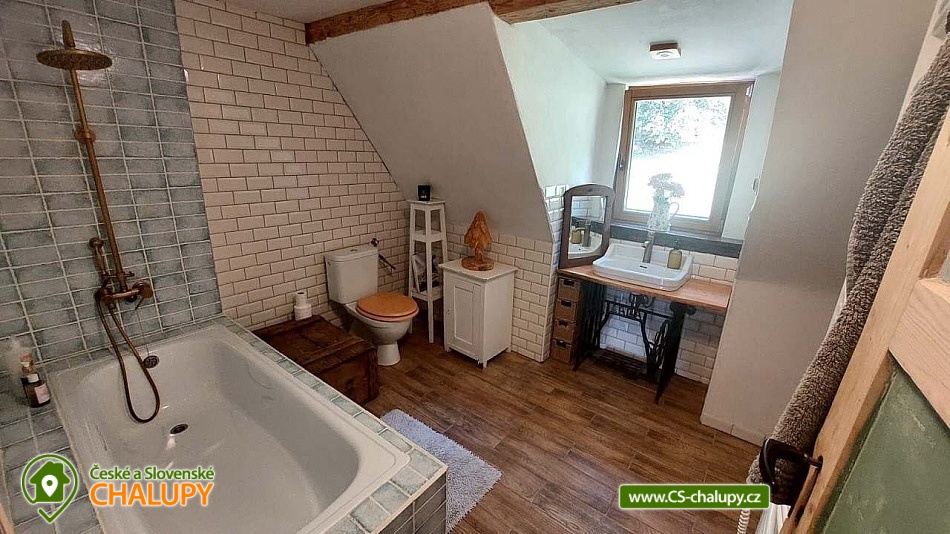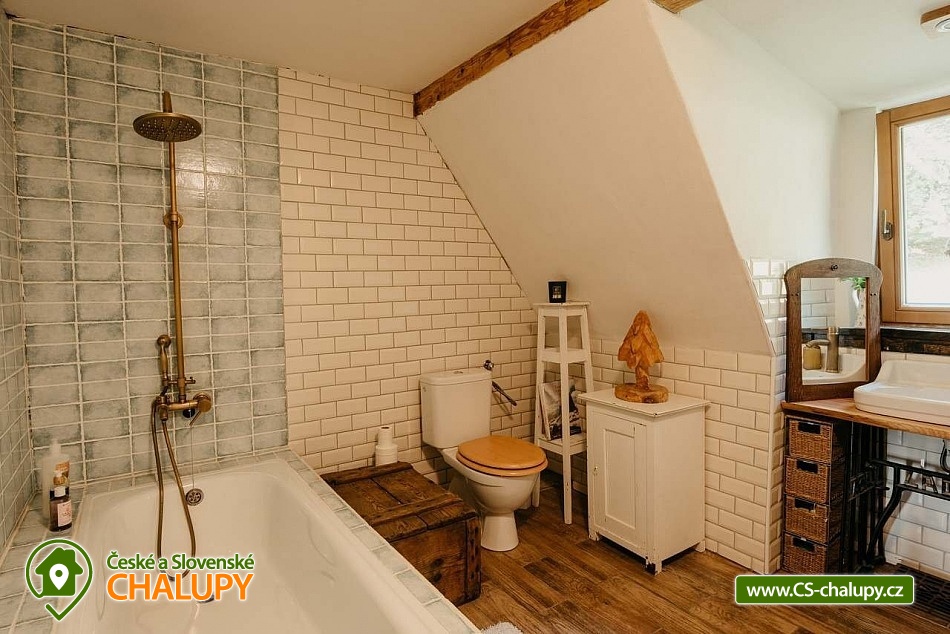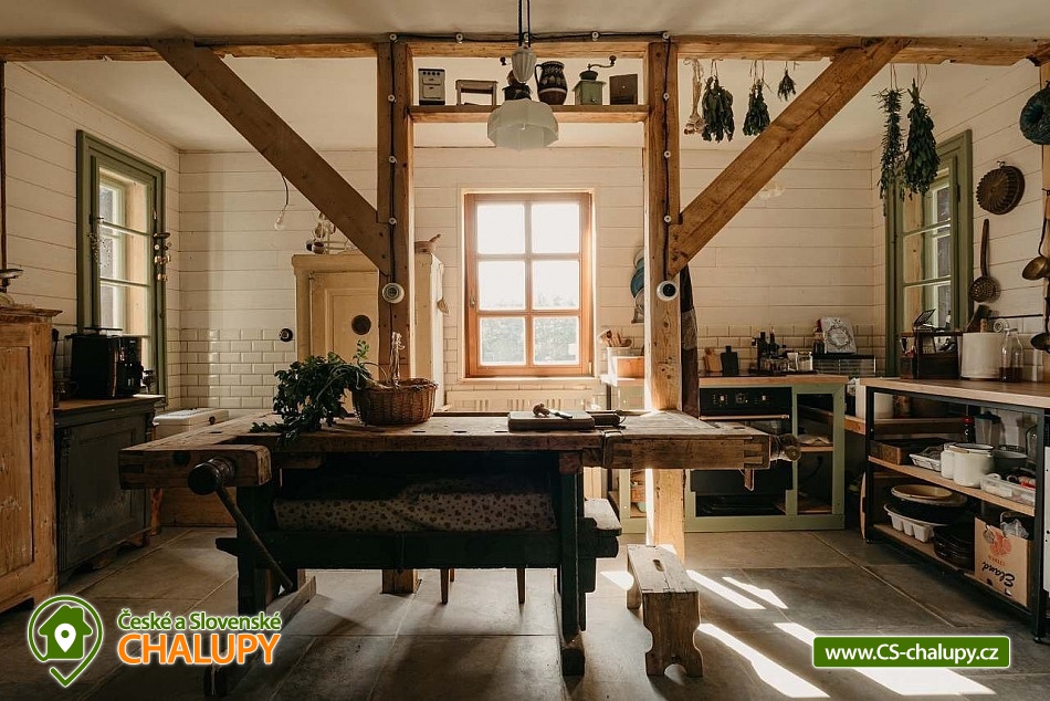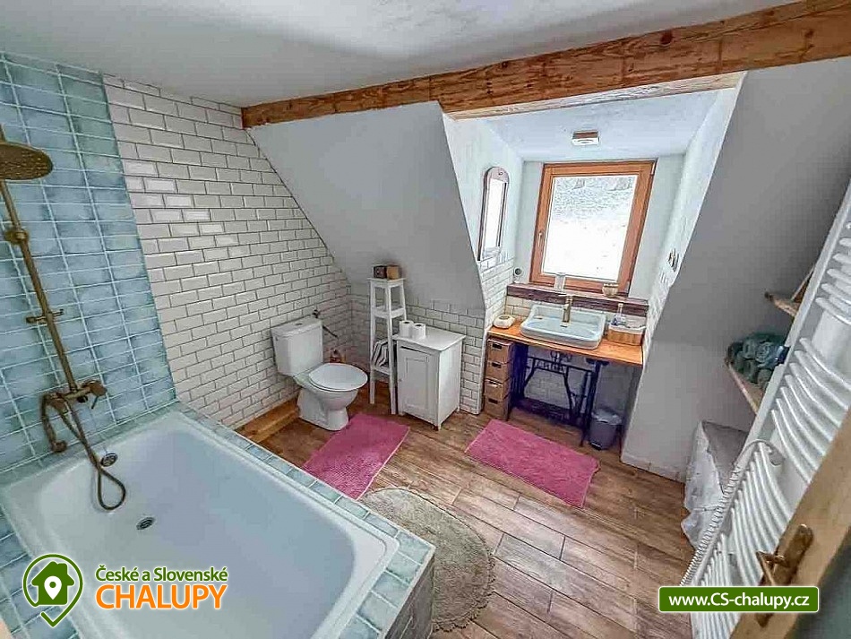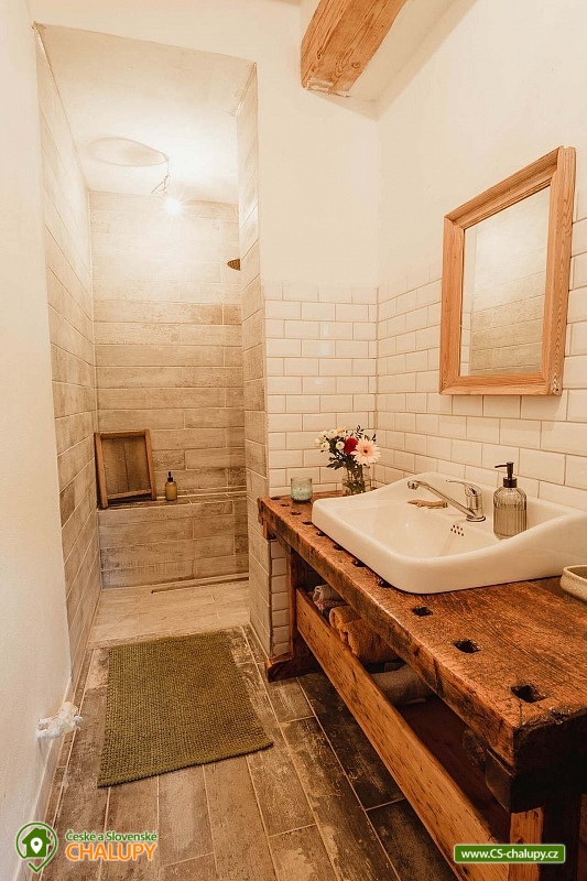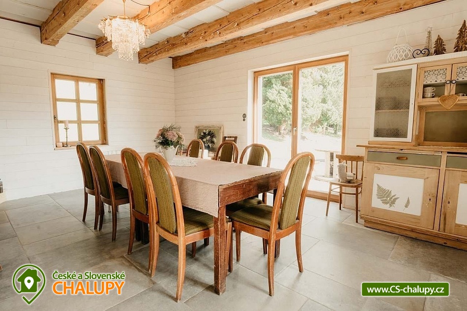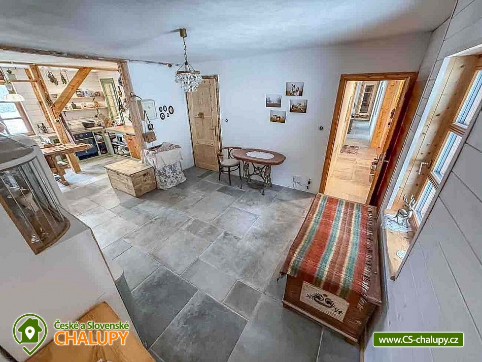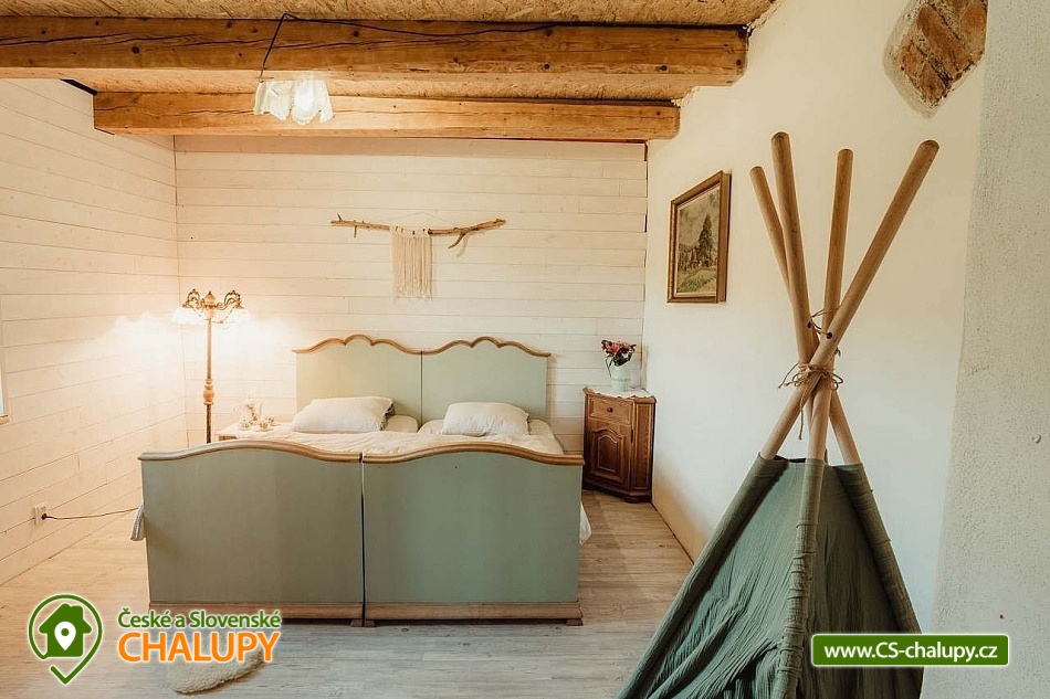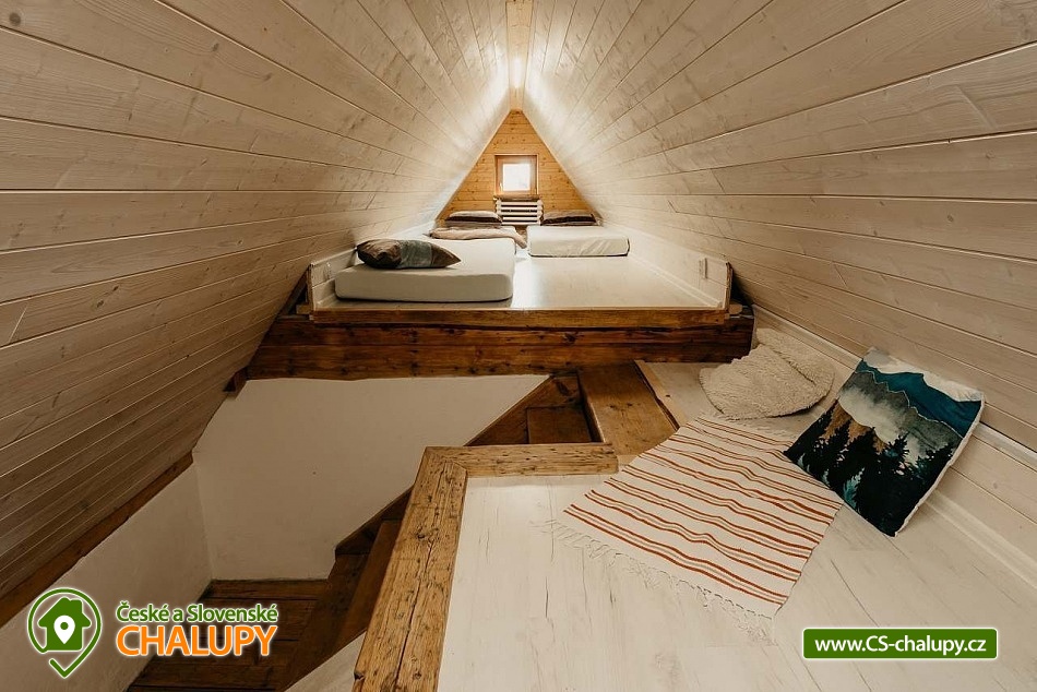 Chalupa se saunou v Jesenických horách nedaleko Karlovy Studánky a hory Praděd. Chalupa leží na polosamotě u lesa a v krásné přírodě CHKO Jeseníky. Nabízí ubytování pro až 15 osob v 5 ložnicích (2x dvoulůžková, 1x dvoulůžková + dětská přistýlka a 2x čtyřlůžková). V podkroví je další místnost, která slouží jako tělocvična i relaxační místnost. Ideální pro cvičení jógy, meditace, terapie nebo společné aktivity. Díky možnosti přemístit matrace nabízí také další místo k přespání pro 10 osob. K dispozici je plně vybavená kuchyň (indukční varná deska horkovzdušná trouba, dvě lednice, myčka nádobí, rychlovarná konvice, toustovač, sušička na ovoce a dále pak náš oblíbený coffee spot – útulné místo s kavárenským stolečkem, kávovarem na zrnkovou kávu, překapávačem, moka konvičkou i ručním mlýnkem). V jídelně je velký stůl s kapacitou až pro 12 osob - vytváří ideální prostor pro společná jídla i večerní posezení. Atmosféru dotváří starý klavír a gramofon, které dodávají místnosti kouzlo venkovské chalupy. Z jídelny je přímý vstup na terasu, kde v létě hosté rádi stolují a grilují s výhledem do přírody Jeseníků. Sociální zařízení zahrnuje 1x koupelnu s vanou a WC v patře, 1x koupelnu se sprchovým koutem a 2x samostatné WC v přízemí. Objekt je vytápěn centrálně elektrokotlem. V přízemí je podlahové topení, v 1. a 2. NP radiátory. Ohřev vody zajišťuje moderní elektrický bojler. K dispozici Wi-Fi připojení. Parkování je možné přímo u chalupy pro 8 aut. Chalupa je obklopena přírodou a nabízí několik míst k odpočinku i setkávání: venkovní ohniště pro večerní posezení, kamenná terasa s bylinkovými záhony - v letních měsících oblíbený prostor pro doušek kávy či čaje. Ovečky jako součást chalupy, které dotvářejí venkovskou atmosféru a jsou radostí zejména pro děti. K dispozici je také sauna a kolárna/lyžárna pro bezpečné uložení sportovního vybavení. Okolí je ideální pro pěší turistiku, cyklovýlety, běžky, skialpy i klidné procházky přírodou. V zimě jsou v dosahu běžkařské trasy a lyžařská střediska, v létě koupání v přírodě a houbaření. Tipy na výlety: Praděd, naučné stezky Kotel, kolem pramenů Moravice, Bílé Opavy, Karlova Studánka - lázně, přečerpávací elektrárna Dlouhé Stráně a turistické trasy v CHKO Jeseníky. Koupání: rybník Andělská Hora, koupaliště Vrbno p. Pradědem, krytý bazén a koupaliště Bruntál, přehrada Slezská Harta, Karlova Studánka. Lyžování: v místě Poma (300 m), výjezd na lyžařské středisko Praděd - Ovčárna, ideální běžecké terény, množství dalších vleků v blízkém okolí. Těšíme se na Vás u nás.
