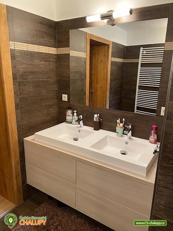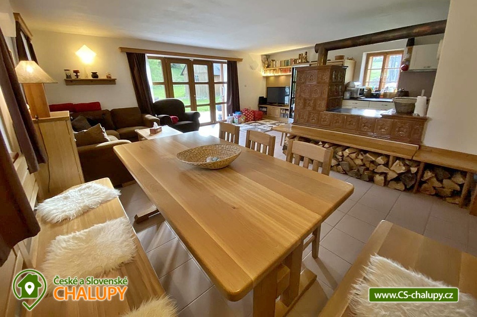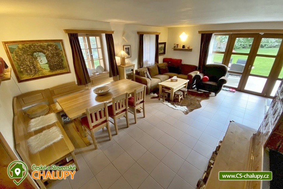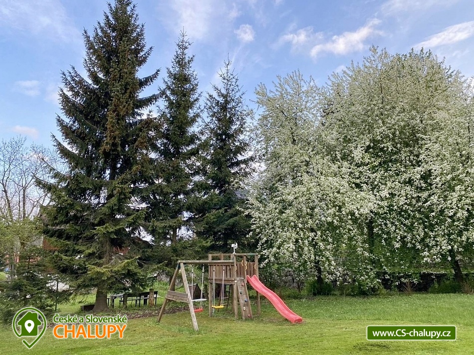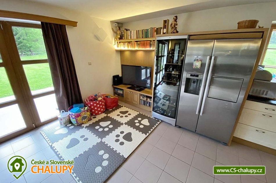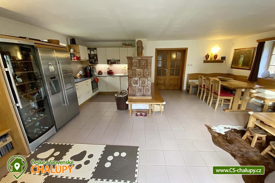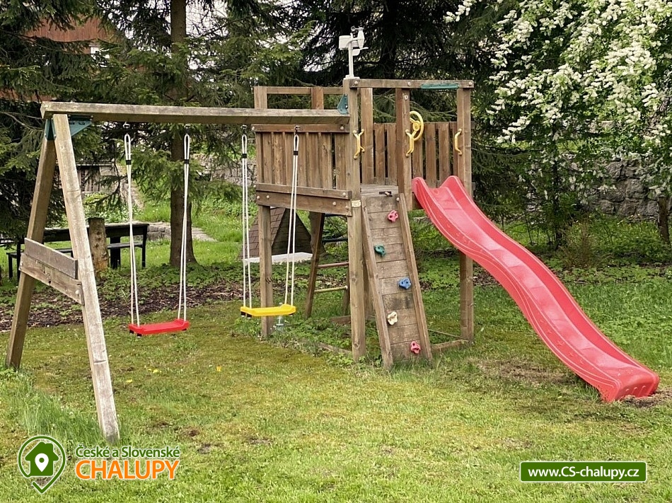 Cottage with sauna - Kořenov - Jizerka - Harrachov. A picturesque, newly renovated mountain cottage is located in the village of Polubný near the village of Kořenov on the border of the Jizera Mountains and the Giant Mountains at an altitude of approximately 800 m above sea level, just 5 km from the famous village of Jizerka. You can look forward to pleasant outdoor seating, relaxation in the Finnish hut and sauna or the warmth of the tiled stove. The accommodation is also suitable for corporate teambuildings. This very comfortably furnished cottage offers accommodation for 9 people in three triple bedrooms (1 double bed and 1 single bed). The first bedroom is located on the ground floor and the other two upstairs. The bedrooms are equipped with high-quality beds made of solid wood, solid wardrobes and bedside tables and lamps. A cot and a baby monitor are available for rent. Pleasant moments can be spent in the spacious common room - a large oak dining table with a bench and chairs, a tiled stove, a sofa, children's dining chairs, an oak coffee table, a TV, a Bang Olafsen audio system, board games, books and a children's corner with toys. The room is connected to a fully equipped kitchen (fridge with freezer and ice maker, dishwasher, wine cellar, electric kettle, Delonghi coffee maker, hob, oven, microwave, toaster, all necessary dishes and accessories). The sanitary facilities include one bathroom with a bathtub, shower, two washbasins and one separate toilet on the ground floor, and one bathroom with a shower, toilet and washbasin on the first floor. The ground floor bathroom has a washing machine and dryer. Towels and a hairdryer are provided. An iron is available for rent. Heating is provided by electric central heating. The ground floor rooms have underfloor heating and the kitchen has a tiled stove for wood burning. The cottage includes a multifunctional garage serving as a ski room with an electric boot dryer, a bicycle room, a wine cellar, a wood storage room and a room for sorted waste. The garage has a separate entrance from the outside and inside. WIFI internet access is available throughout the property. The cottage is surrounded by a spacious, well-maintained, unfenced garden with garden furniture, a fireplace and a children's playground with climbing frames, swings, a slide and a trampoline. The garden also features a separate Finnish hut-style house with a grill and a sauna suitable for sitting together and enjoying an amazing sauna experience. Parking is available directly at the property. There are up to 4 parking spaces. An easily accessible asphalt road leads to the cottage all year round, which is regularly maintained in winter. Hiking, cycling, swimming, mushroom picking, skiing and cross-country skiing are possible in the vicinity of the cottage. There is a golf course, tennis courts and a riding stable nearby. Swimming options include: Tanvald swimming pool, Zákoutí Harrachov swimming pool, Zlatá Olešnice swimming pool, Josefův Důl natural swimming pool, Jablonec nad Jizerou swimming pool, Lučany nad Nisou swimming pool, Držkov swimming pool, etc. There are nearby ski resorts: Černá Říčka, Jizerský kopec, Kořenov - Bavorák, Mýtiny, Pod Štěpánkou, U Čápa - Příchovice, Detoa - Albrechtice v Jizerské horách, Kořenov - Rejdice, Světlý vrch Ski Resort and others. Families with children will appreciate the smaller ski lift just 600m from the cottage. There is a well-accessible connection to the cross-country skiing trails of the popular Jizerské magistrály (300m). For trips in the surrounding area, the Kořenov - Tanvald cogwheel railway, the Štěpánka Lookout Tower, the Jára Cimrman Lighthouse Lookout Tower, the Proud Rope Center, the Military Fortification Museum (under the lookout tower), Smržovka Castle, Návarov Castle, Harrachov - Mumlavský waterfall and bobsleigh track, Jablonec nad Nisou, Liberec and many others are attractive. We look forward to seeing you here.