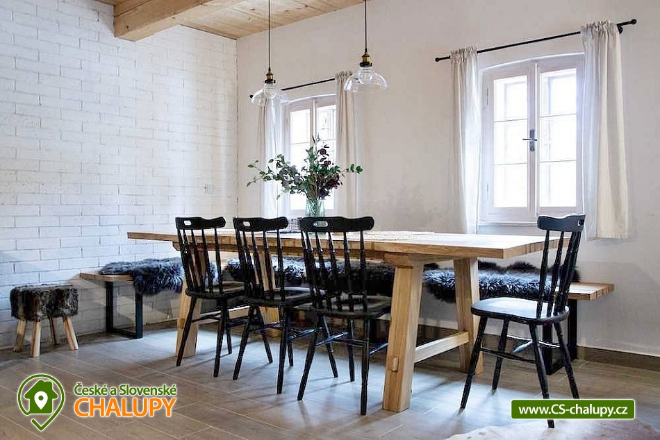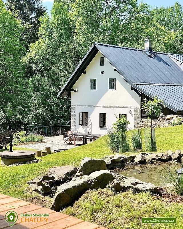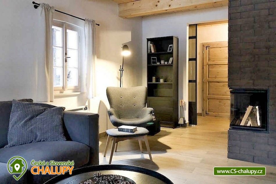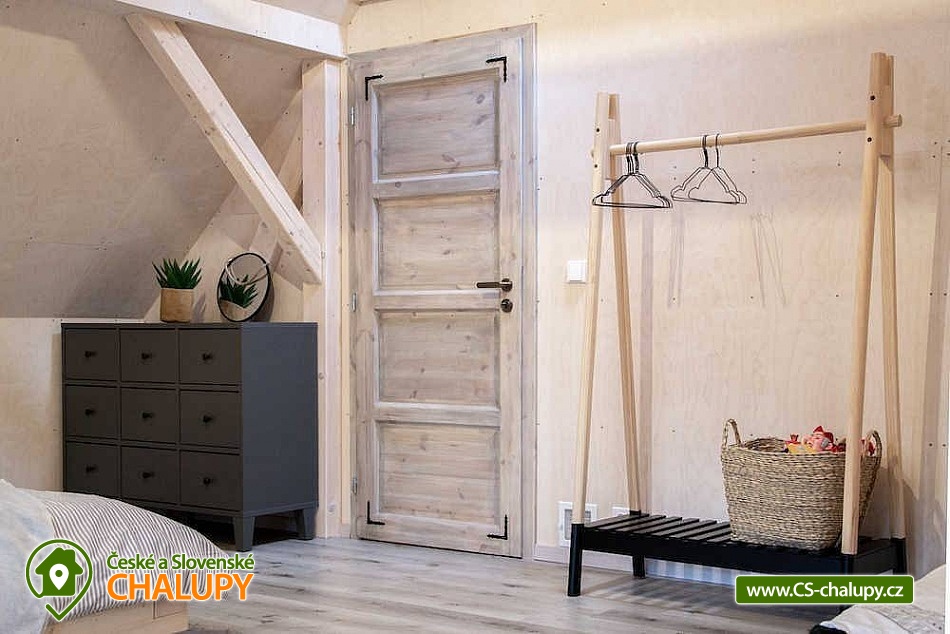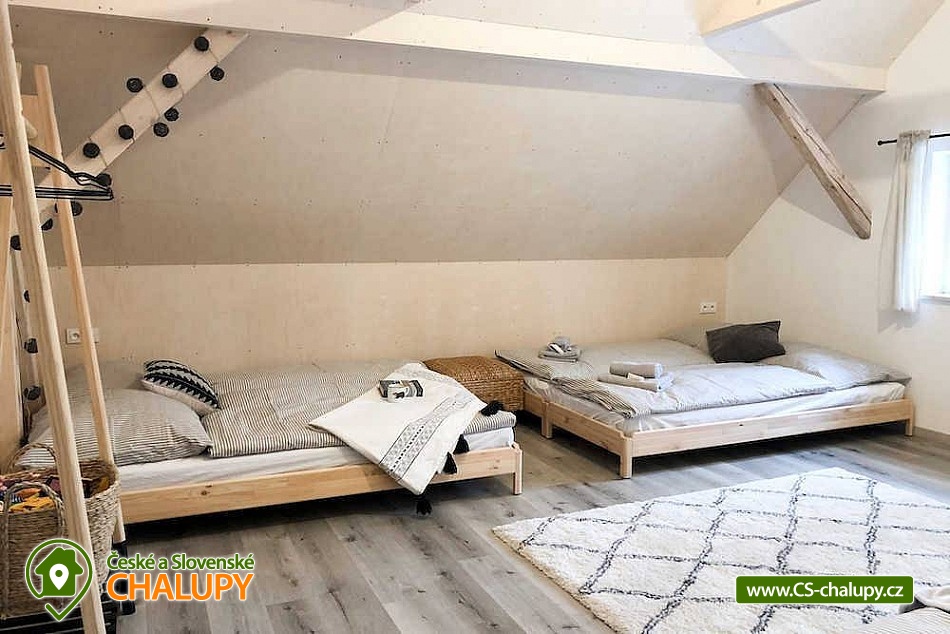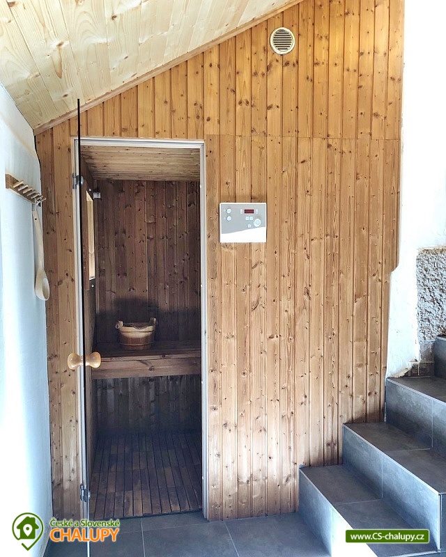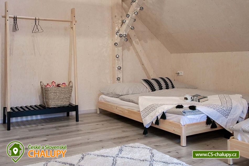The renovated Chalet Kopito with a sauna is located in the picturesque mountain village of Říčky in the Orlické Mountains, almost secluded by the forest. Part of the village is the Bikepark Říčky with the possibility of renting bikes, the SpideRS rope park suitable for children and adults, and the Říčky ski area with three slopes, a school for children, a restaurant and cross-country trails. Cottage Kopito, furnished in a modern design inspired by Scandinavian style and with a touch of cottage classics, offers accommodation for 10 people in two bedrooms. There are 6 beds available in the first larger bedroom (3 x double beds). The second smaller bedroom has 2 beds (1x double bed) and 2 extra beds on the raised sleeping floor, which is accessed by a ladder. A cot is available for rent. There is a living room with a fireplace, a sofa set and a large dining table for shared moments. The room includes a fully equipped kitchen (electric kettle, fridge, hob, dishwasher, microwave oven, coffee maker and dishes, tea towels, bin bags and dishwasher tablets). Board games, books and a wireless speaker are available. You can relax in the sauna and in the relaxation room with a view of nature. The social facilities include one bathroom with shower and toilet and one other separate toilet. Bath towels, hand towels, toilet paper, bed linen and sheets are provided. Heating is provided by electric direct heaters throughout the cottage and an internal fireplace. There is WIFI internet connection throughout the building. Around the cottage is a grassy garden with an outdoor terrace, a fire pit with grate, a parasol, a garden pond and a hand pump. Children can look forward to the sandpit and garden tree house. There is a storage room for bikes and skis and drying racks for ski boots. You can park directly at the building. In the surroundings of the cottage, hiking, cycling, swimming, fishing, mushroom picking, cross-country skiing and skiing are possible. Nearby are tennis courts, a golf course, a pump track for children and a rope park. Swimming options include, for example: Aquapark Žamberk, Rokytnice swimming pool in Orlické hory, Kunvald swimming pool, Rychnov nad Kněžnou swimming pool, Rychnov nad Kněžnou swimming pool, Vamperk swimming pool, Deštné swimming pool in Orlické hory, Pastviny dam, Dobré swimming pool, Mezilesí swimming pool, etc. in the winter season, nearby ski resorts are available: Říčky in O.h., Rokytnice in O.h. - Farák, Ski center Zdobnice, Orlické Záhoří - Černá Voda, SKI CLUB Kostelec - Zdobnice and others. The Rokytnice Castle in the Orlické Mountains, the Kolowratsky Castle Rychnov nad Kněžnou, the Hanička Fortress, the Art Chapel, the Pastviny Water Reservoir or the Opočno and Častolovice castles are all tempting for trips in the area. We look forward to seeing you here.