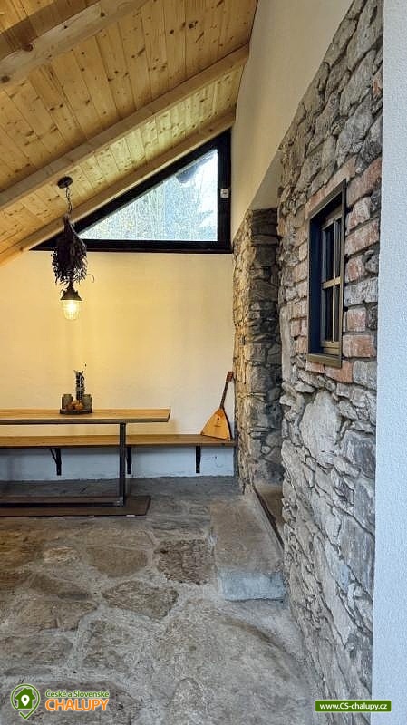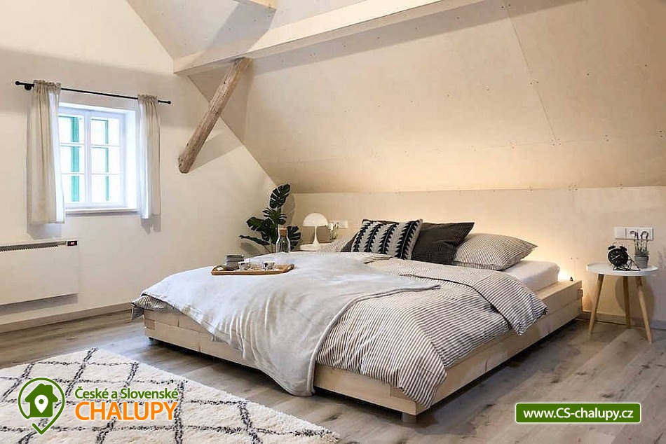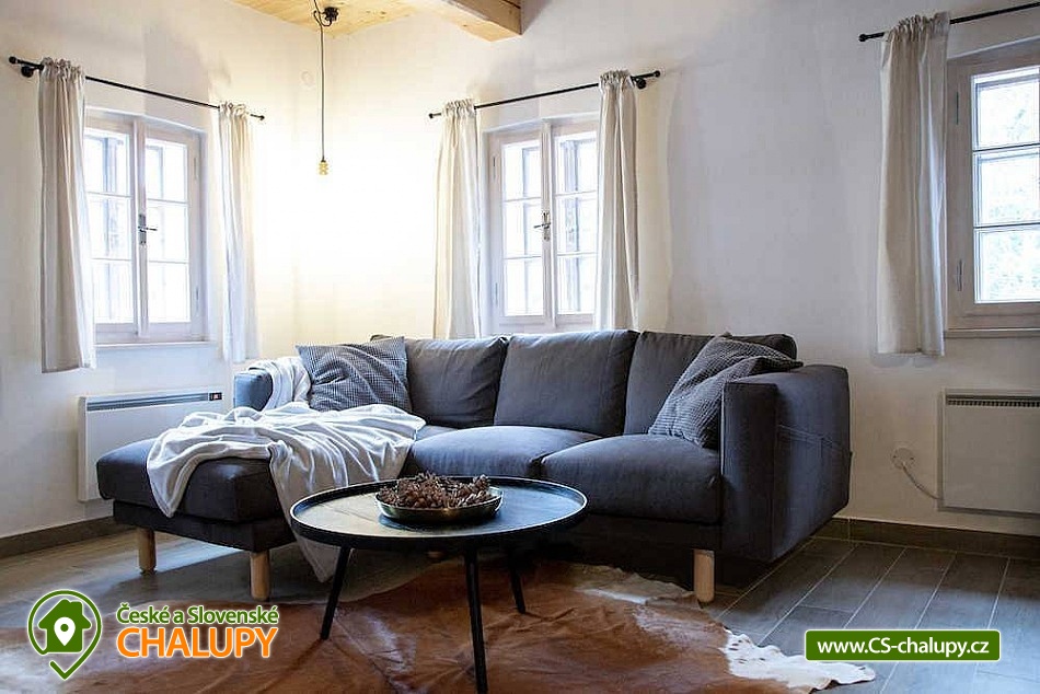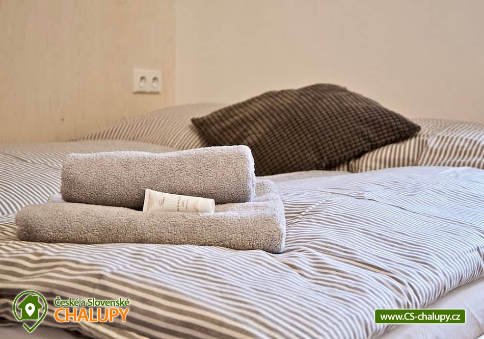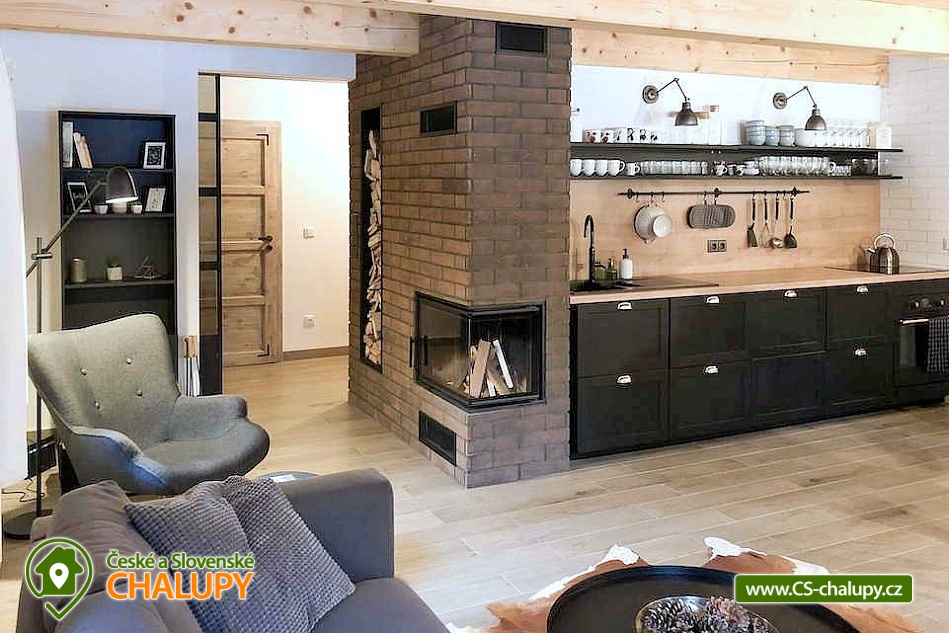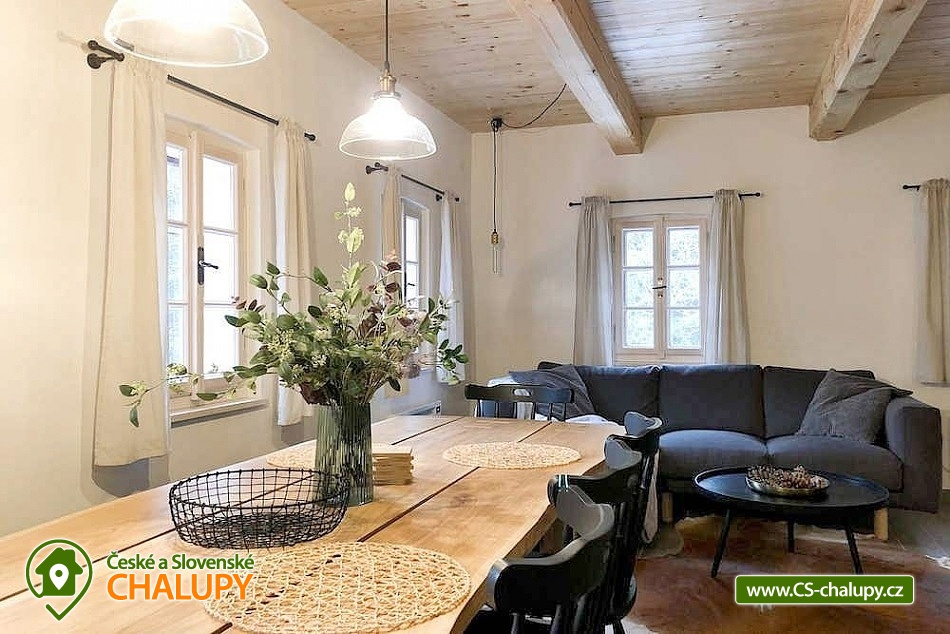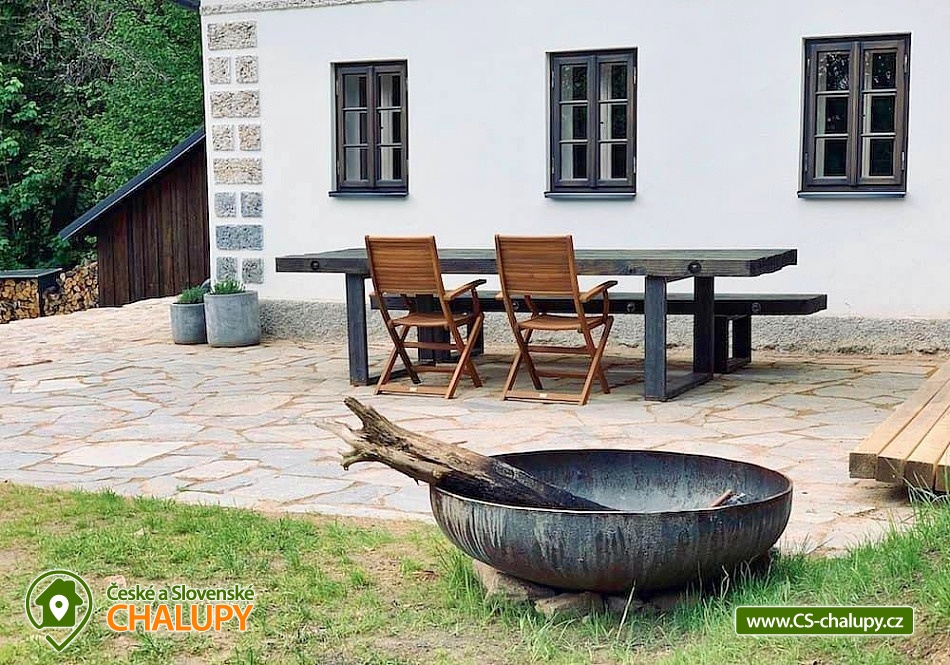 The renovated Chalet Kopito with a sauna is located in the picturesque mountain village of Říčky in the Orlické Mountains, almost secluded by the forest. Part of the village is the Bikepark Říčky with the possibility of renting bikes, the SpideRS rope park suitable for children and adults, and the Říčky ski area with three slopes, a school for children, a restaurant and cross-country trails. Cottage Kopito, furnished in a modern design inspired by Scandinavian style and with a touch of cottage classics, offers accommodation for 10 people in two bedrooms. There are 6 beds available in the first larger bedroom (3 x double beds). The second smaller bedroom has 2 beds (1x double bed) and 2 extra beds on the raised sleeping floor, which is accessed by a ladder. A cot is available for rent. There is a living room with a fireplace, a sofa set and a large dining table for shared moments. The room includes a fully equipped kitchen (electric kettle, fridge, hob, dishwasher, microwave oven, coffee maker and dishes, tea towels, bin bags and dishwasher tablets). Board games, books and a wireless speaker are available. You can relax in the sauna and in the relaxation room with a view of nature. The social facilities include one bathroom with shower and toilet and one other separate toilet. Bath towels, hand towels, toilet paper, bed linen and sheets are provided. Heating is provided by electric direct heaters throughout the cottage and an internal fireplace. There is WIFI internet connection throughout the building. Around the cottage is a grassy garden with an outdoor terrace, a fire pit with grate, a parasol, a garden pond and a hand pump. Children can look forward to the sandpit and garden tree house. There is a storage room for bikes and skis and drying racks for ski boots. You can park directly at the building. In the surroundings of the cottage, hiking, cycling, swimming, fishing, mushroom picking, cross-country skiing and skiing are possible. Nearby are tennis courts, a golf course, a pump track for children and a rope park. Swimming options include, for example: Aquapark Žamberk, Rokytnice swimming pool in Orlické hory, Kunvald swimming pool, Rychnov nad Kněžnou swimming pool, Rychnov nad Kněžnou swimming pool, Vamperk swimming pool, Deštné swimming pool in Orlické hory, Pastviny dam, Dobré swimming pool, Mezilesí swimming pool, etc. in the winter season, nearby ski resorts are available: Říčky in O.h., Rokytnice in O.h. - Farák, Ski center Zdobnice, Orlické Záhoří - Černá Voda, SKI CLUB Kostelec - Zdobnice and others. The Rokytnice Castle in the Orlické Mountains, the Kolowratsky Castle Rychnov nad Kněžnou, the Hanička Fortress, the Art Chapel, the Pastviny Water Reservoir or the Opočno and Častolovice castles are all tempting for trips in the area. We look forward to seeing you here.