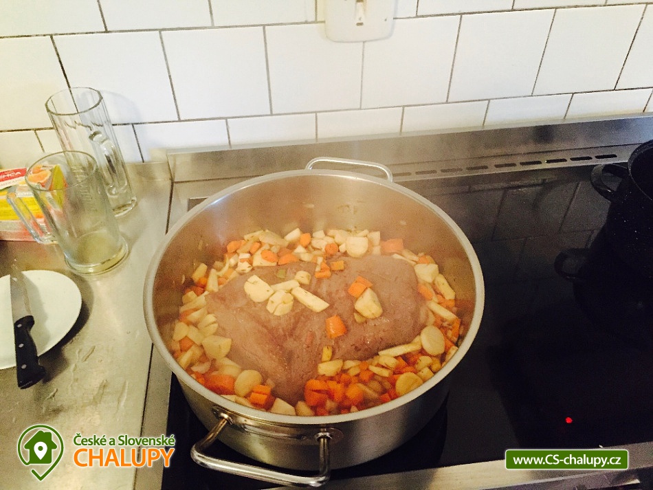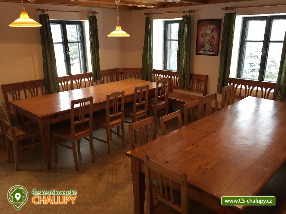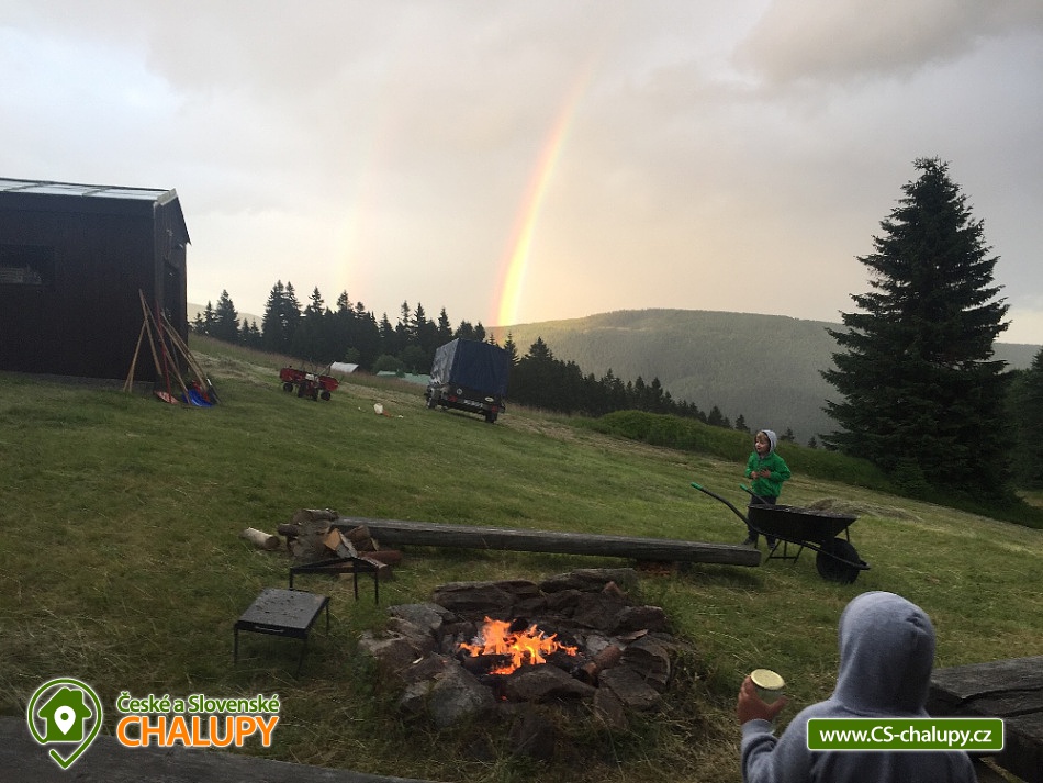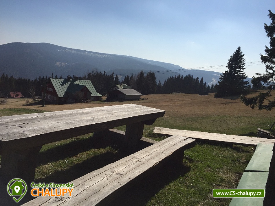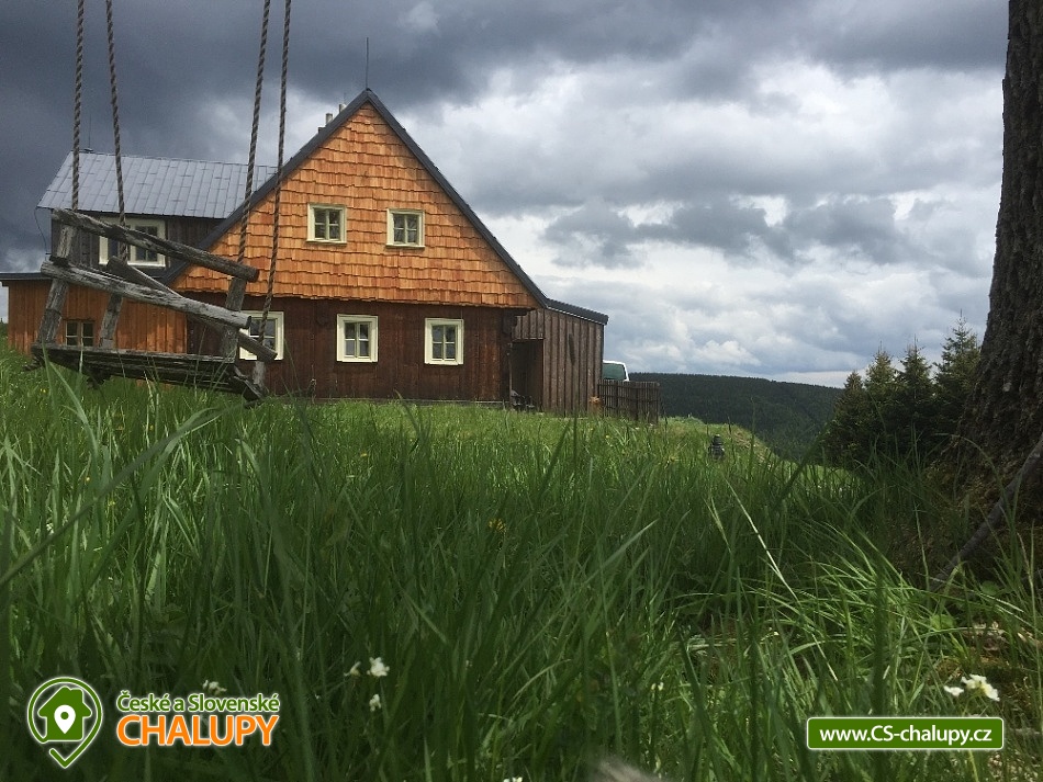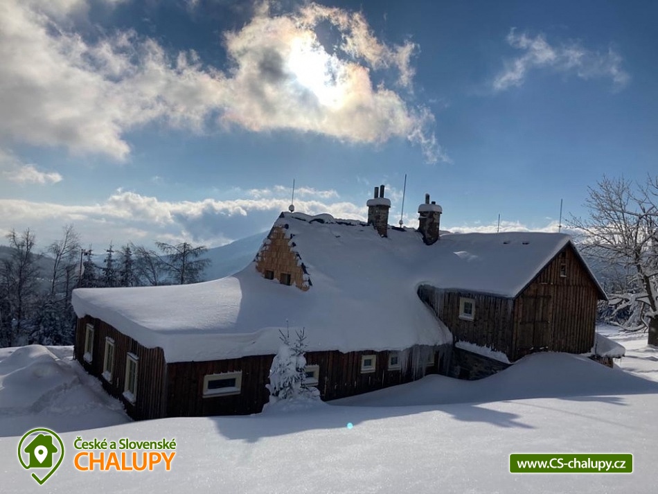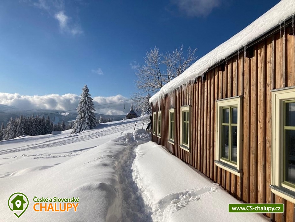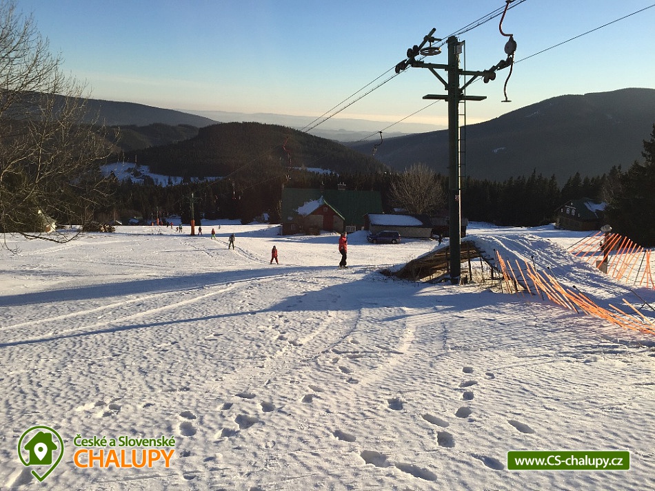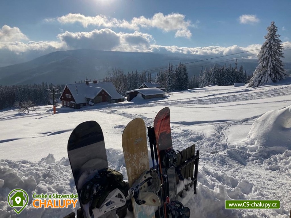 Jasněnka cottage for rent - accommodation Velká Úpa. Krkonoše accommodation - Krkonoše cottage rental. Chalupa Jasněnka with sauna is a mountain recreation facility for families with children and friends. On the ground floor there is a ski storage room, three rooms, women's and men's sanitary facilities, a cellar, a common room with a TV, DVD and CD player, a fully equipped stainless steel kitchen with a professional stove and two refrigerators. Upstairs there are five more rooms. Next to the cottage in the annex there is a sauna for approximately 8 guests with a vestibule for changing clothes. There is Wi-Fi connection in the building. Heating is provided by direct heaters and there is a wood stove in the hallway. In the winter months, you will appreciate the location directly on the slopes, the top station of the Pěnkavčí vrch lift is approximately 30 meters from the entrance, and the altitude of 1000 m above sea level guarantees snow mostly from November to April. In the summer months, an outdoor fireplace with seating is available, and at any time of the year you will appreciate some of the most beautiful views that the Krkonoše Mountains have to offer. You will enjoy incredible peace and privacy and will remember the moments spent at Jasněnec for a long time. Children have freedom of movement and adults peace of mind from children. Enjoy outdoor games, sitting by the fire in the evening or in the warmth of the sauna after a day of skiing. You will definitely like it here. The settlement of Pěnkavčí vrch is located in the Eastern Krkonoše mountains at an altitude of 1,000 m above sea level, and although the first mentions of its existence date back to the seventeenth century, it has preserved its original peaceful character, untouched by modern times. The south-eastern position of the slope allows you to watch the sunrise, and in the evening you will see how it sets again behind the Black Mountain, which is directly opposite. For more skilled skiers who are not satisfied with the local slope, we recommend the Portášky slope, to which you can go down a mountain path. A cross-country track runs directly above the cottage. The circuit around Pěnkavčí vrch measures approximately three kilometers, the tracks are groomed and from the other side you will see Sněžka, which is only five kilometers away. On a trip to our highest mountain, don't forget to visit the Růžohorky restaurant, which is famous for its blueberry dumplings and Krkonose sour. In summer, we recommend visiting the rope park or the bobsleigh track in Pec pod Sněžkou. From Peca, you can comfortably take the cable car to Růžová hora, and from there it is only three kilometers back to the cottage.