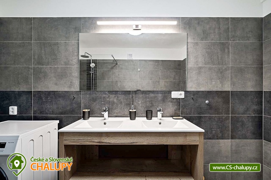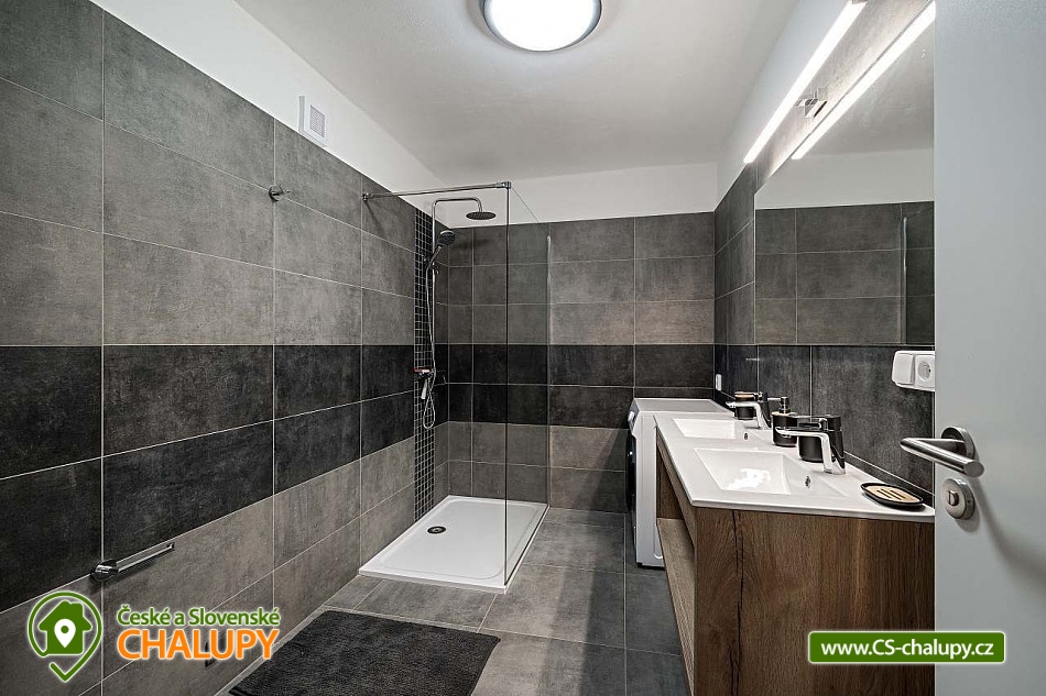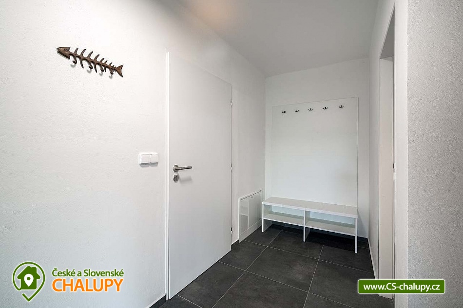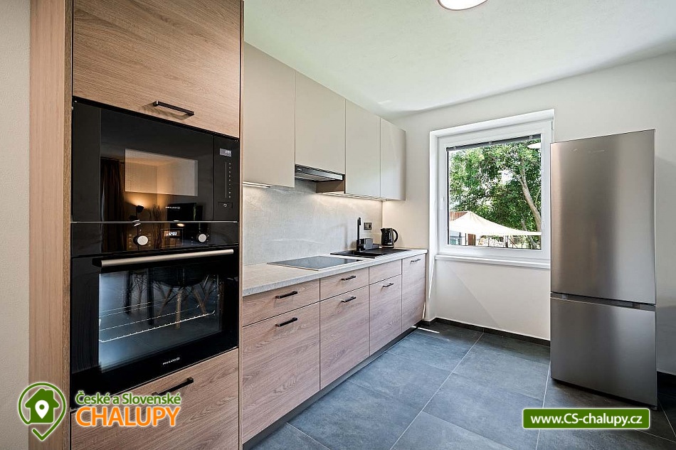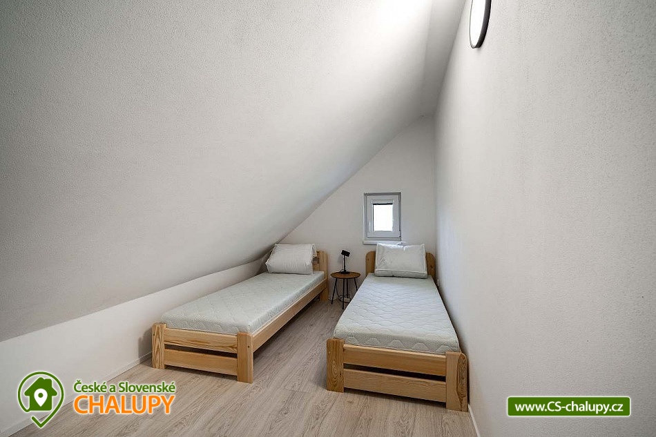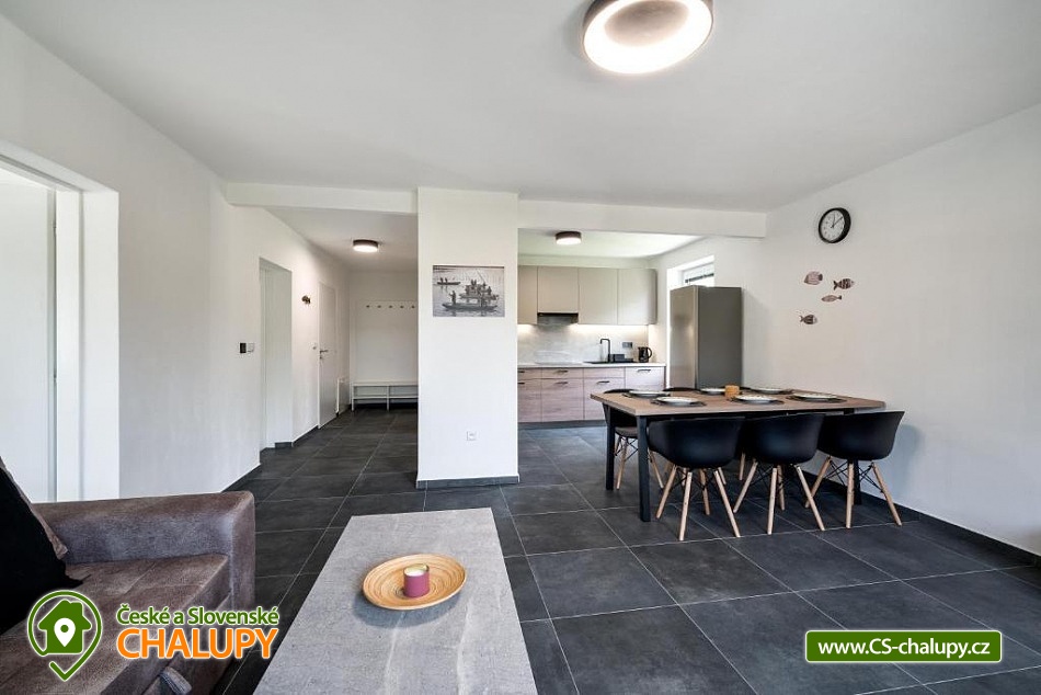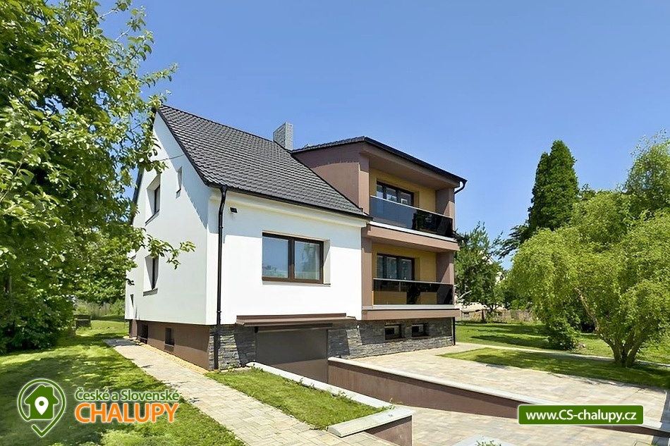 Cottage with sauna - Apartments Třeboň is located in the village of Stříbřec in the heart of the picturesque landscape of the Třeboň ponds. The nearby natural surroundings are interwoven with a number of hiking and cycling trails. The cottage offers accommodation for 12 people in two separately rented six-bed apartments with their own kitchen and bathroom. Both apartments have the same layout. There are two double bedrooms (1 double bed and 2 single beds) and 2 extra beds in the form of a sofa bed in the living room. The bedrooms are equipped with comfortable beds with high-quality mattresses, bedding and there are also bedside tables with a lamp. The windows are equipped with blackout curtains and outdoor blinds, which ensure a peaceful and undisturbed sleep. A cot is available for rent. You can spend time together in the living room with a comfortable sofa bed, coffee table and flat-screen TV, where you can fully use Wi-Fi and TV services. The living room is connected to a fully equipped kitchen (fridge with freezer, induction hob, dishwasher, microwave, oven, electric kettle, capsule coffee maker, toaster, dishes, cutlery, pots, pans, towels, a jar for dishes, kitchen utensils and basic ingredients such as salt and pepper). The kitchen includes a dining table with six chairs. A high chair is available for rent. Both apartments have a balcony. The sanitary facilities include one bathroom in each apartment with a modern shower and toilet. There is a washing machine, hairdryer, mirror, towels and hand soap. Heating is provided by a heat pump. For all guests, a common room with a children's playroom, table tennis and darts is available in the lower part of the cottage. You can relax in the sauna. Outside, you can sit on the spacious roofed terrace with comfortable garden seating for up to 6 people. There is also a fireplace including grilling forks for sausages. The children's playground is located next to the outdoor seating. A lockable bicycle shed can be used to store bicycles. Parking is available directly at the property. There are two parking spaces. The property is protected by an outdoor camera system. Hiking, cycling, swimming, mushroom picking and fishing are possible in the surroundings of the cottage. Swimming options include: Aurora Třeboň Spa, Nový Stříbřecký Pond, Staňkovský Pond, Rožmberk Pond, Hejtman Pond, Velký Hatínský Pond, Cep Sandpit, Novomlýnský Pond - Peršlák, Opatovický Pond, Svět Pond, etc. Excursions in the surrounding area are popular with visitors to Třeboň Castle, Jindřichův Hradec Castle and Chateau, Nová Bystřice Veterans Museum or České Budějovice. We look forward to seeing you here.