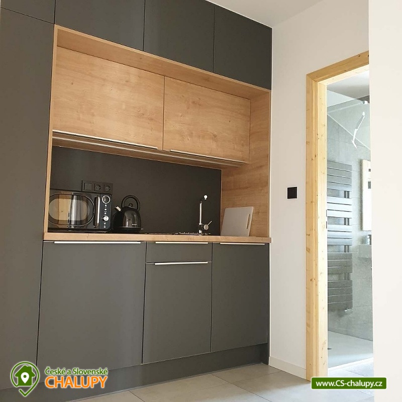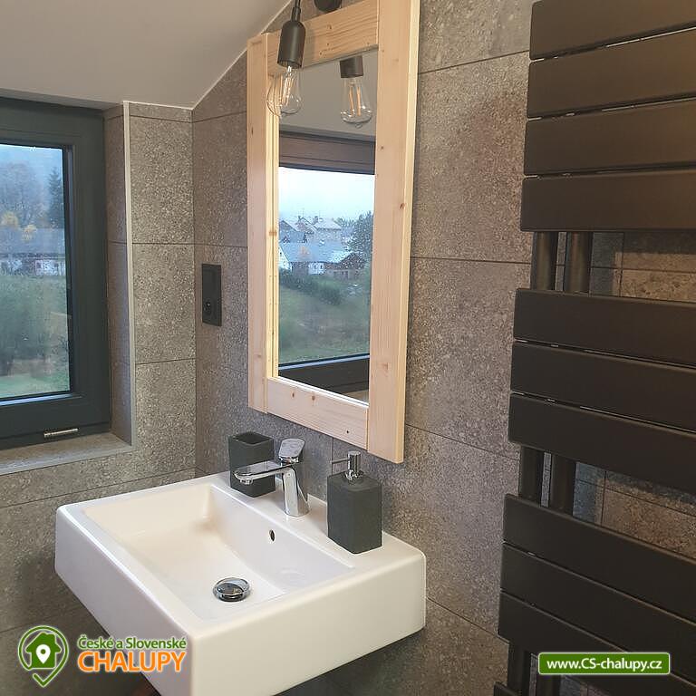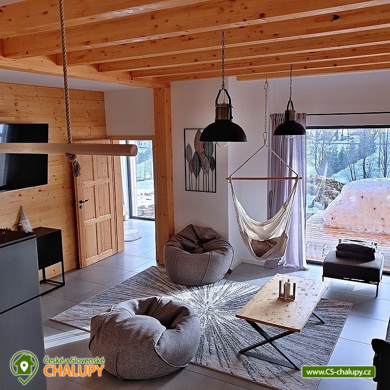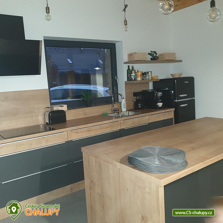 Chalupa s finskou saunou v údolí řeky Divoké Orlice, obec Orlické Záhoří část Jadrná. Chalupa je koncipována se dvěma apartmány v horním patře, z nichž každý má vlastní koupelnu, kuchyňku a dvě ložnice s TV, kde se vyspí až 8 osob (4 osoby na manželských postelích + 4 přistýlky formou dvou rozkládacích postelí šíře 140 cm). Kapacita jednoho apartmánu je tedy 8 osob a celé chalupy až 18 osob včetně dvoulůžkového pokoje v přízemí. K dispozici je velká společenská místnost, kde jsou krbová kamna, televize, plnohodnotná kuchyně s mikrovlnou troubou, varnou deskou, elektrickou troubou, myčkou a dalším vybavením. V přízemí je také samostatná toaleta a prostorná chodba k uložení lyžařského vybavení či kol. Sociální zařízení zahrnuje 3x koupelnu s WC a sprchovým koutem a další WC je ve společných prostorech. Podlahové vytápění je v celé chalupě a v každé koupelně je žebřík. Ve společenské místnosti jsou krbová kamna. K dispozici je zdarma vysokorychlostní internet. V obou apartmánech je v přízemí i na pokojích kabelové připojení a v ostatních prostorách WiFi. Pro Vaše nejmenší je tu židlička, postýlka, nočník, schůdek, chůvičky a v patře dětský koutek. Nutná domácí obuv. V letních měsících je k dispozici venkovní posezení s možností opékání a grilování. Parkování v létě i v zimě přímo u objektu, na vyhrazeném místě. Hledáte klid, ticho, nedotčenou přírodu, překrásné prostředí a možnost sportování v letním i zimním období v horské přírodě s příjemným zázemím? Jadrnka Vám poskytne ubytování a příjemné zázemí uprostřed Orlických hor. Pronájem je možný po dobu celého roku. Poloha obce umožňuje strávení klidné dovolené a zároveň můžete procestovat řadu krásných míst Orlických hor. Možnosti koupání: bazén Deštné v Orlických horách, koupaliště Dobré, koupaliště Rokytnice v Orlických horách, koupaliště Bystré, koupaliště Rychnov nad Kněžnou, bazén Rychnov nad Kněžnou, koupaliště Kunvald, koupaliště Hroška, bazén Mezilesí nebo koupaliště Dobruška. Lyžování - v místě udržované běžecké trasy, Orlické Záhoří - lyžařský vlek Jadrná (0,5 km), Bedřichovka - lyžařský vlek (1 km), Zieleniec - lyžařské středisko, sedačková lanovka (10 km) nebo např. Deštné v Orlických horách (14 km). Těšíme se na Vás u nás.