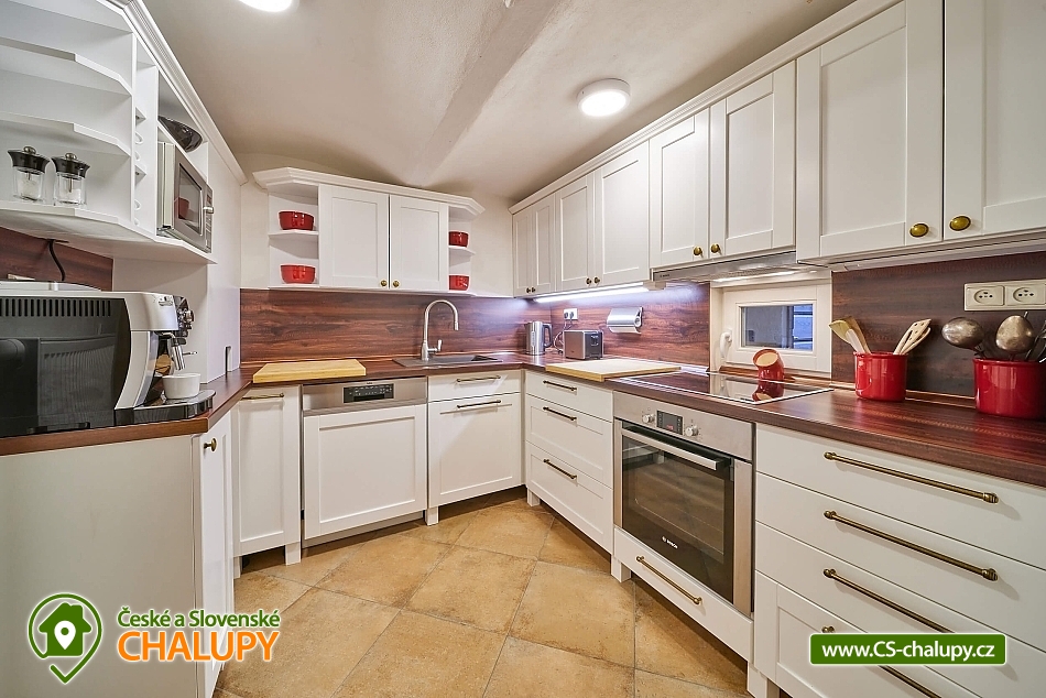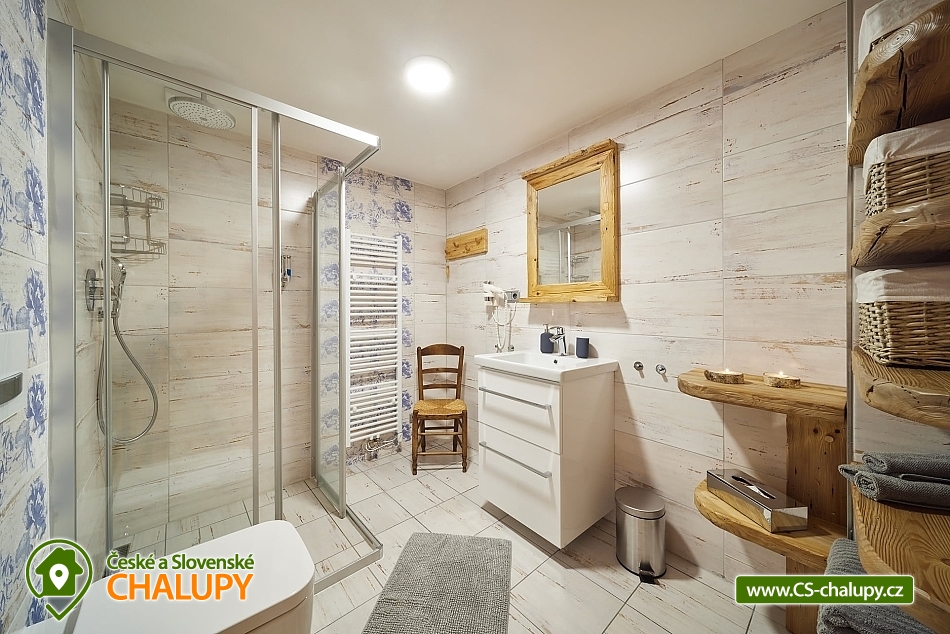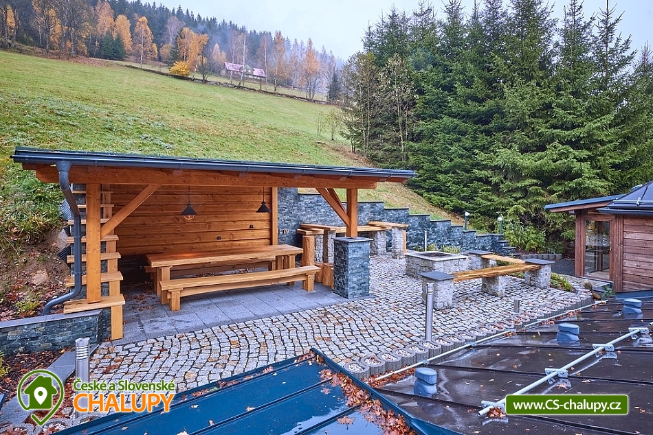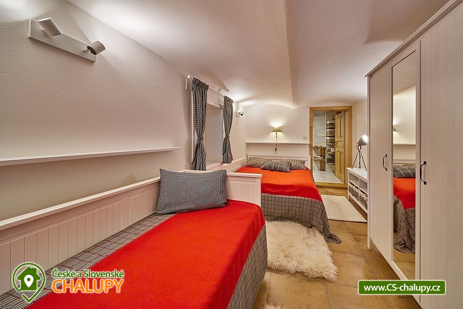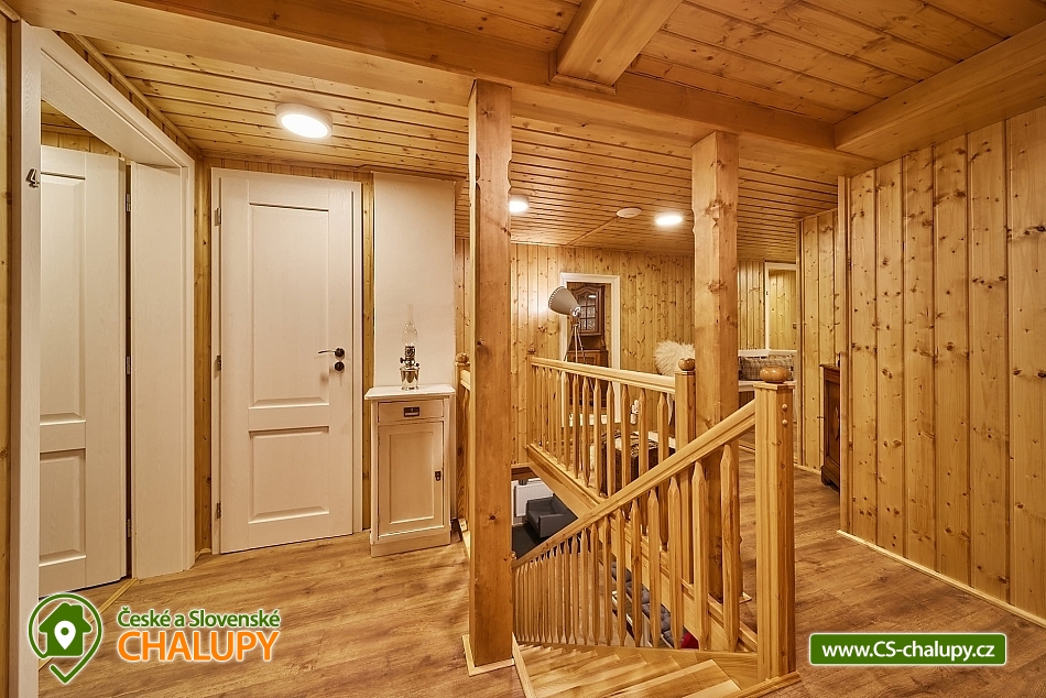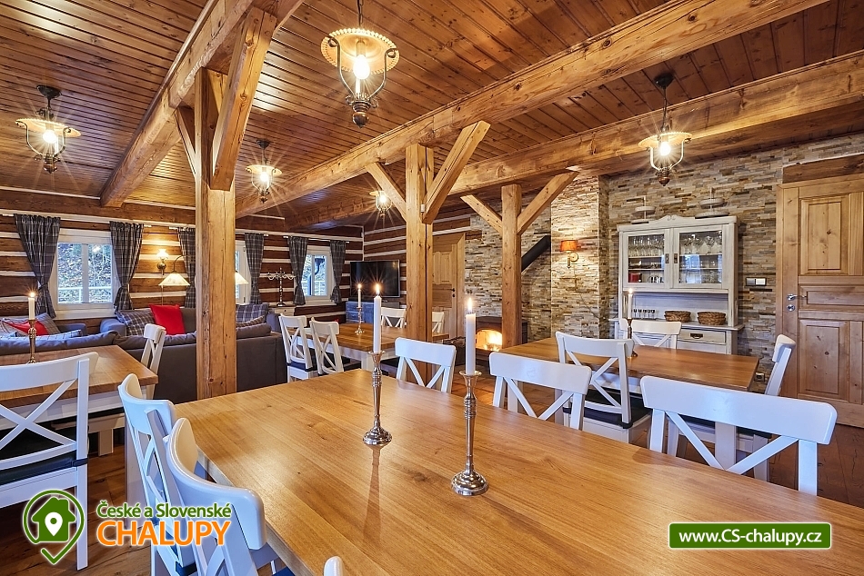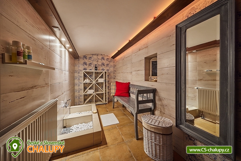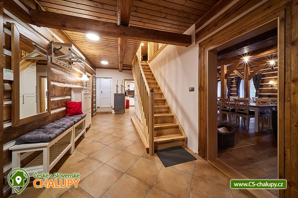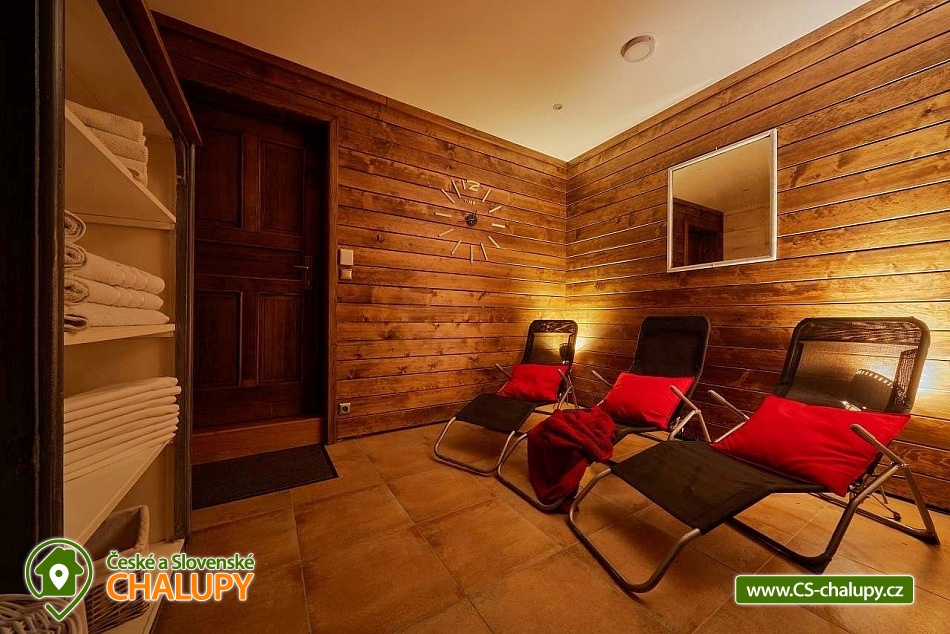 Luxusní roubená Chalupa s vlastním wellness se nachází v oblíbené horské obci Velká Úpa, patřící k městu Pec pod Sněžkou v Krkonoších. Obec leží na břehu řeky Úpy a patří mezi nejoblíbenější rekreační střediska Krkonoš v letních i zimních měsících. Komfortně vybavený objekt k pronájmu s naprostým soukromím - ideální pro rodiny, skupiny přátel nebo firemní teambuilding. Energii načerpáte ve vlastním malém wellness (kombinovaná infra a finská sauna, Kneippova lázeň a relaxační odpočinková místnost). Chalupa k pronájmu poskytuje ubytování pro až 22 osob v 5 ložnicích. POPIS: Samostatný apartmán v přízemí o velikosti 2+1 s koupelnou a WC, dále čtyři pokoje v prvním patře kompletně obložené dřevem, každý s koupelnou a WC (z toho jsou dva mezonetové/patrové pokoje). V každém pokoji a dále ve společenské místnosti je smart televizor se signálem Skylink, v celém objektu WiFi. Pro pokoje je k dispozici společná kuchyně s veškerým vybavením - indukční sporák, horkovzdušná trouba, mikrovlnka, myčka nádobí, kávovar, veškeré nádobí pro vaření a jídelní nádobí. Každý pokoj má k dispozici vlastní ledničku. V apartmánu plně vybavená kuchyně s jídelním stolem, indukční sporák, horkovzdušná trouba, mikrovlnka, myčka nádobí, lednička s mrazničkou, veškeré nádobí pro vaření a jídelní nádobí. Sociální zařízení: koupelny se sprchovými kouty a WC, v každé koupelně k dispozici osušky a ručníky, sprchový gel, papírové kapesníky, vysoušeč vlasů a topný žebřík. Vytápění chalupy je centrálně radiátory, zdroj tepla tepelné čerpadlo. V každé koupelně navíc připraven "teplofuk" na individuální přitopení. Každá koupelna a kuchyně má samostatný bojler. Ve společenské místnosti krbová kamna Yotul. Dřevo na topení v ceně. Za chatou je k dispozici venkovní posezení s ohništěm na grilování, krytá pergola s velkým stolem a prosklená zimní zahrada pro chladnější večery nebo snídani v paprscích ranního slunce. Parkování: Příjezd možný bez problému až k objektu i v zimě - chalupa se nachází vedle hlavní silnice z Velké Úpy směr Pec pod Sněžkou, zhruba v polovině vzdálenosti. K dispozici garáž - prioritně pro hosty apartmánu, u objektu další tři venkovní parkovací místa na vlastních pozemcích a možnost parkování i na sousedním pozemku. K dispozici je také prostorná garáž s horkovzdušným sušákem na boty a stojanem na lyže. V okolí: V létě turistika, kola, koloběžky, lanovka na Sněžku, Portášky, Bramberk. Možnost dojet busem na Černou Horu (cca. 20 minut, zastávka před chatou). V zimě lyžování (skiareál Pec pod Sněžkou - Javor, Zahrádky, Bramberk, skiareál Portášky ve Velké Úpě, Ski areál Černá Hora v Jánských Lázních. Zastávka skibusu před chatou. Běžecké lyžování - upravené trasy mezi Pecí pod Sněžkou a Černou Horou, návaznost tras směr Špindlerův Mlýn a další. Těšíme se na Vás u nás.