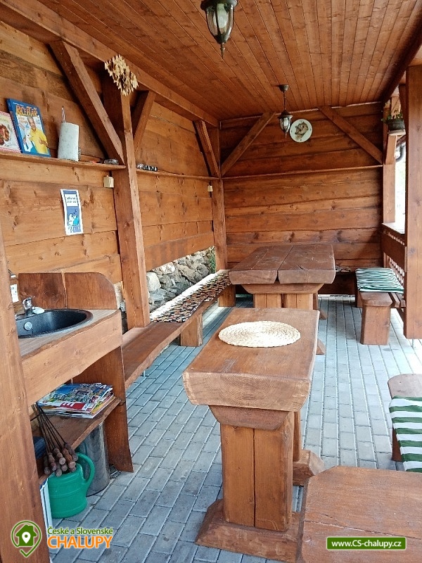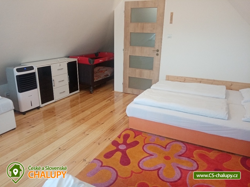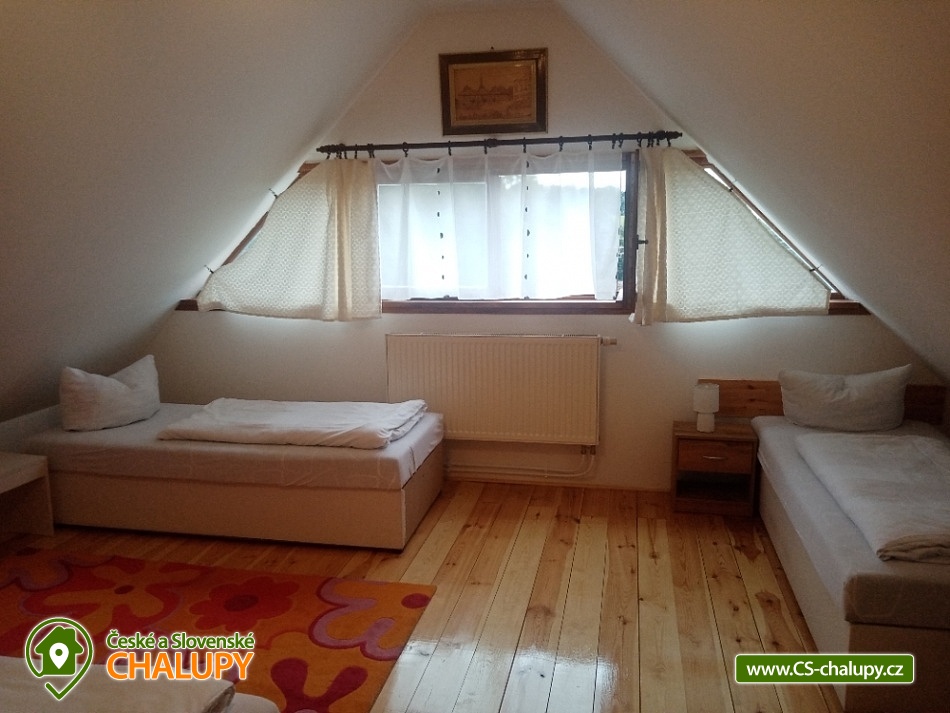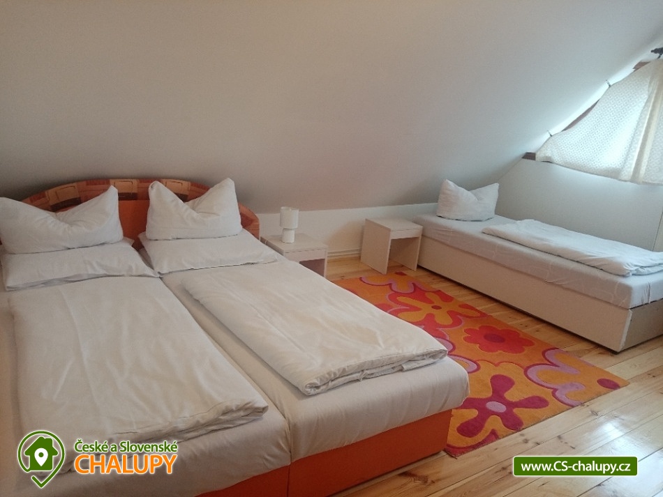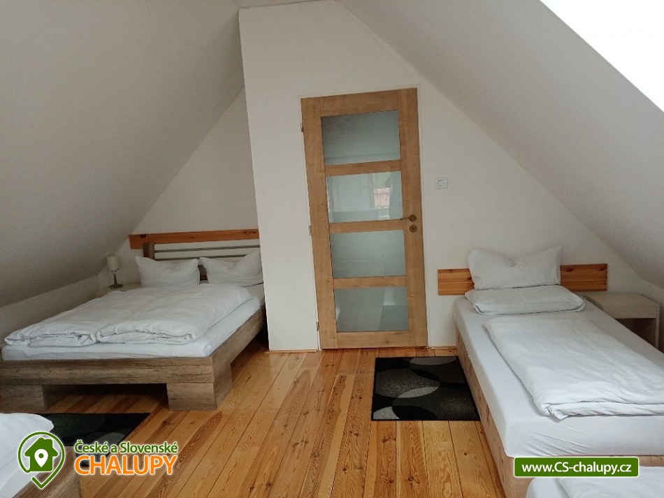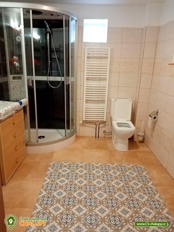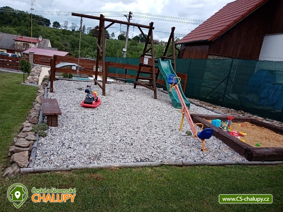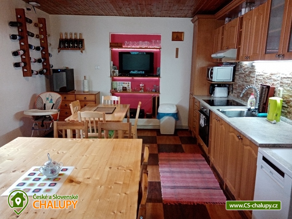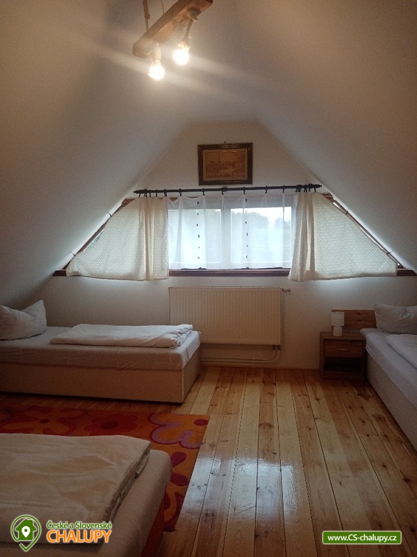Cottage Lazny - Strasin - accommodation Sumava - swimming pool and sauna. Very nicely furnished, newly renovated 4-room cottage (120 m2) is located in the small village Lazny Sumava and offers rental for max. 12-14 persons. Entrance to the hallway. From the corridor on the right is the living room (25 m2), which is equipped with 2 sofas and TV. From the hallway on the left is accessible kitchen (18 m2), which is available ceramic hob (4 cooking units), el. oven, fridge / freezer, dishwasher, percolator, toaster, toaster, el. kettle, dining area for 12 persons, high chair, TV and radio. The large bathroom, which also enters from the hallway, is equipped with a massage shower, sink, toilet and washing machine - boiler 180 l. The bathroom is equipped with equipment for children (changing table, baby bed, bath, potty). Steep stairs lead from the living room to the attic. There are 2 separate bedrooms and a separate toilet with sink. The layout of the beds in the bedrooms is as follows: 1 / (25 m2) with 2 double beds and 2 beds and 2 / (25 m2) with 2 double beds and 2 beds. In the attic beware of the sloping walls. Dogs are not allowed in the attic. The cottage has an Internet connection (WI-FI). Central el. heating. Non-smoking property. The cottage is situated in a large fenced garden (approx. 1000 m2), where guests can use the recessed swimming pool (4 x 3 x 1,2 m) with sliding roof and solar shower, trampoline (diameter 4,5 m), pergola with outdoor seating , fireplace, infrared sauna for 3 persons with shower (the shower is out of operation in winter), fireplace with benches and children's activities (swings, slide, sandpit, playhouse). Fenced parking. The garden of the cottage is guarded by a camera system with recording. Lazny village is situated in the picturesque Šumava countryside 18 km southeast of Sušice and 10 km northeast of Kasperske Hory. The surrounding area is ideal for hiking and cycling trips throughout the Šumava and Pošumaví. However, those who prefer historical monuments or passive relaxation will also be pleased. Swimming in a natural swimming pool in Nezdice in the Bohemian Forest (3 km), in a swimming pool in the village of Zihobce (5 km) and in aquaparks in Susice (18 km) or in Horazdovice (25 km). Tennis courts on site (0.1 km). Gym, squash, bowling and boat rental for descending the Otava River in Sušice (18 km). Fishing on the river Otava (15 km). Skiing in the surroundings: Nezdice na Sumave (3 km): 1 ski lift, length of ski slopes: 1,6 km, night skiing, cross-country trails. Kasperske Hory (10.5 km) 794 m above sea level: 3 lifts, length of slopes: 1.9 km, difficulty light to medium, night skiing, artificial snow, snowboarding, 40 km of maintained cross-country trails, ski school, ski rental, ski service. Zadov (15km) 890 - 1120 m: 2 lifts, 4 lifts, length of slopes: 4,5 km, difficulty light to medium, night skiing, artificial snow, snowboarding, 52 km maintained cross-country trails, ski school, ski rental, ski service .