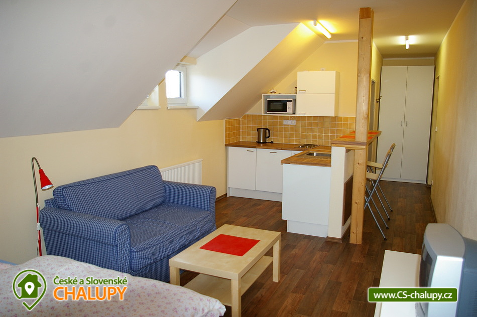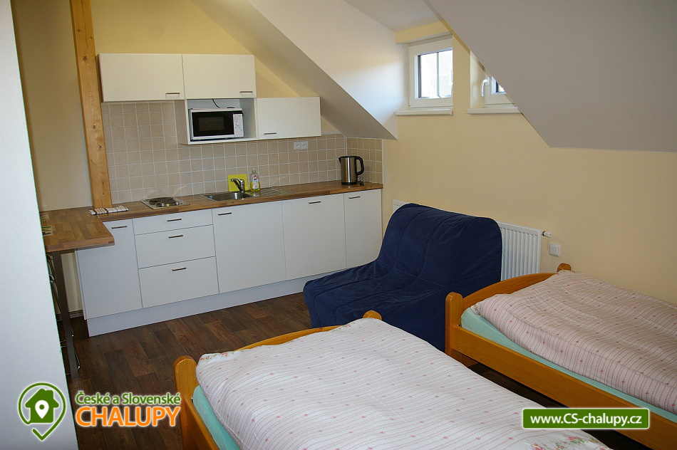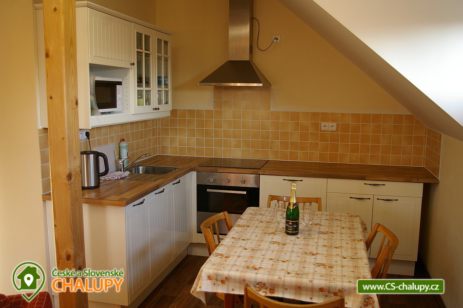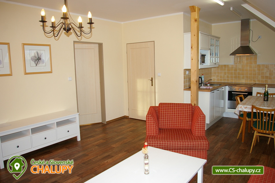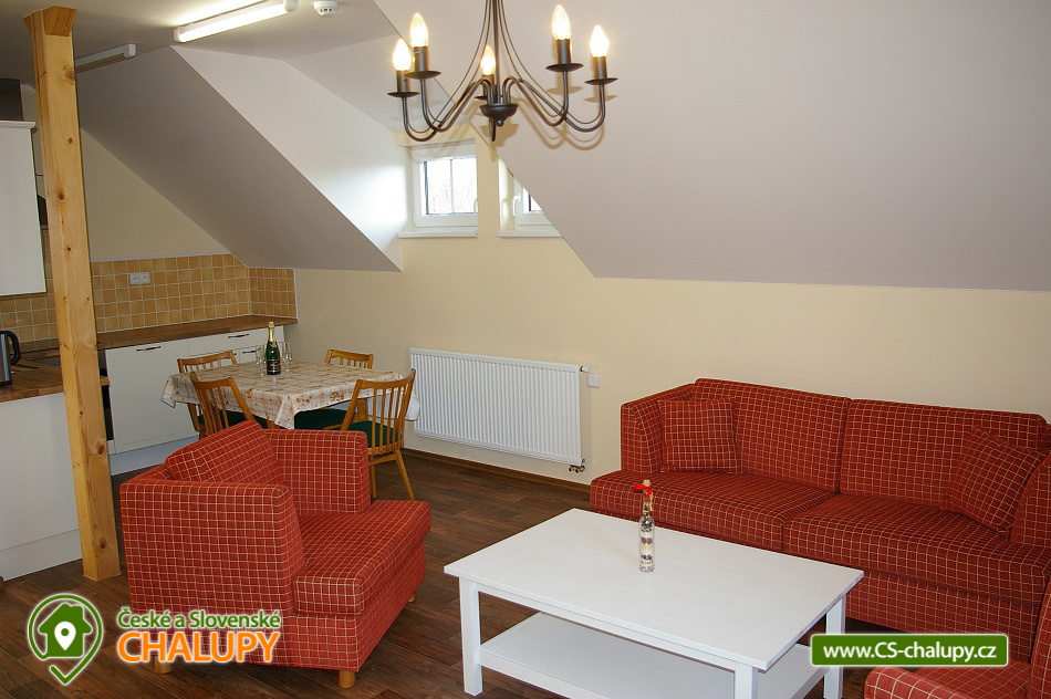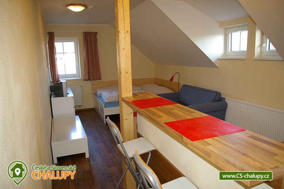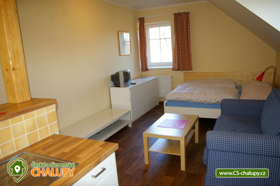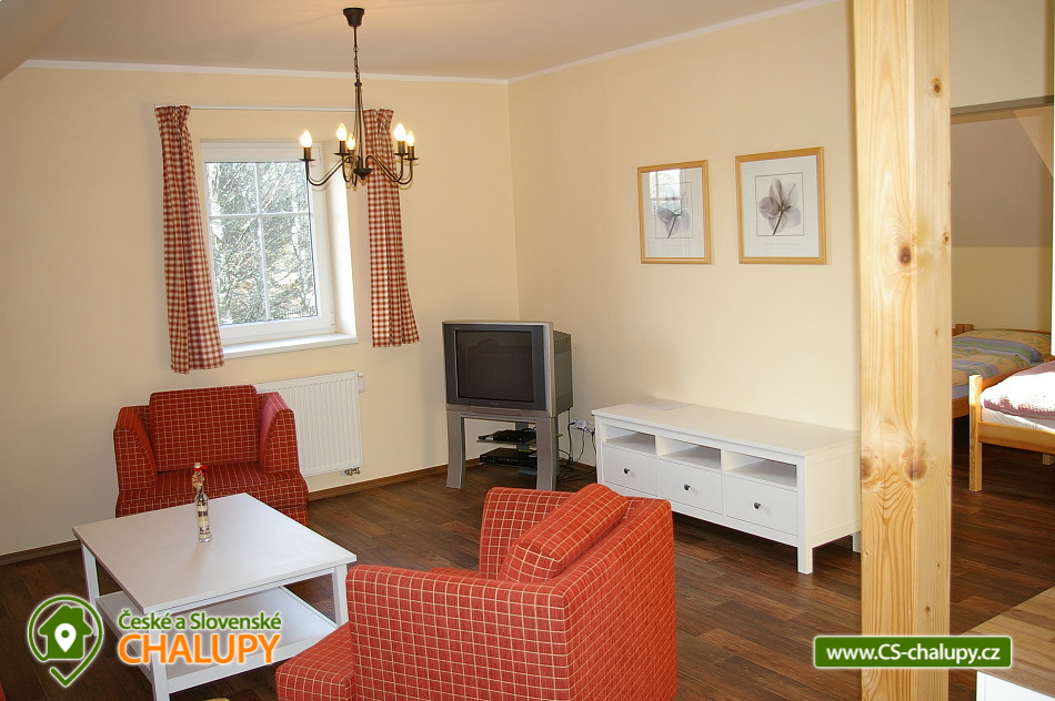 Chalet Ke Slati - Borová Lada, Šumava. Rent cottages Borová Lada, Šumava. Accommodation cottage Šumava, district Prachatice. Cottage Ke Slati is located on the outskirts of Borová Lada. A picturesque village surrounded by the beautiful nature of Šumava National Park lies at an altitude of 900 m. Near the cottage flows Teplá Vltava, which is near Vltavský brook. Rent a floor of a cottage, which can be rented as a whole to a group of clients, or it is possible to rent separately a 6-bed apartment and two 2-bed rooms. Apartment equipment: kitchen with standard equipment, fridge, stove with ceramic hob and electric oven, dishwasher, microwave, kettle, TV + DVD player, bathroom, toilet. Double room equipment: kitchen with standard equipment, refrigerator, double hot plate, microwave, kettle, television, bathroom, toilet. Wheels and skis can be stored in the garage. Free parking at the property. The entire building is non-smoking. Approximately 100 meters from the cottage is a well-stocked shop and two restaurants. Mail is another 100 meters further. There is a bicycle and ski rental in the village. In the summer months you can use the natural swimming pool. The town of Vimperk is 18 km away.