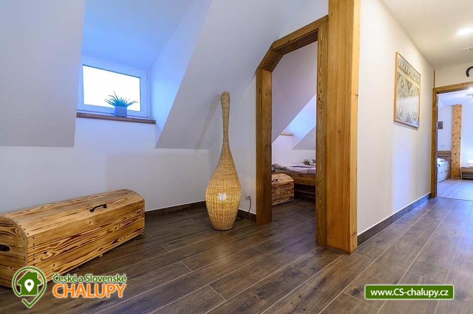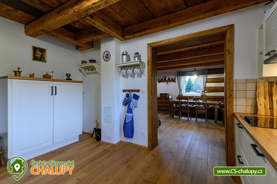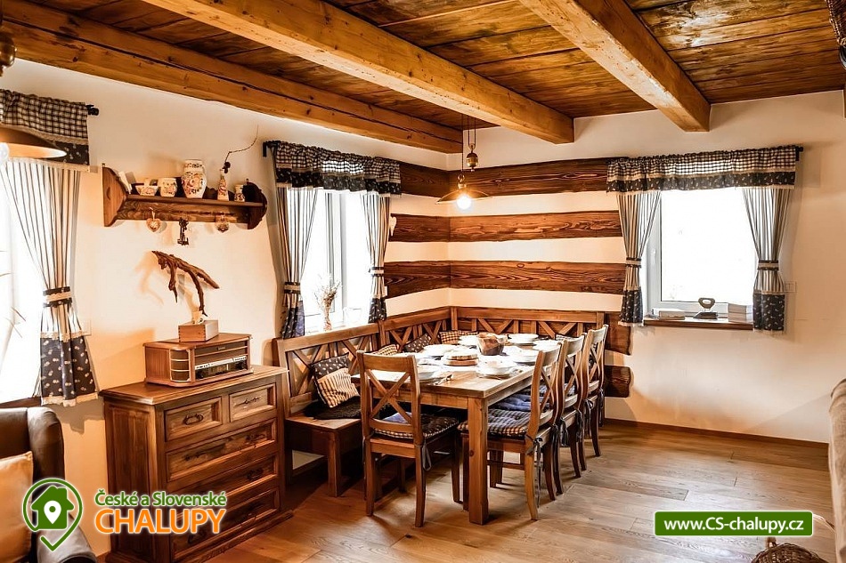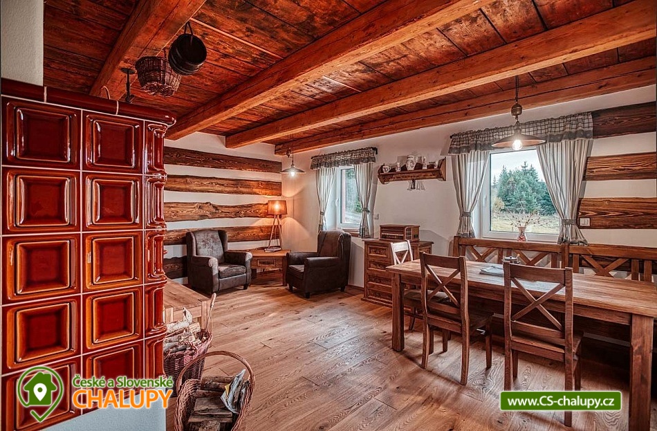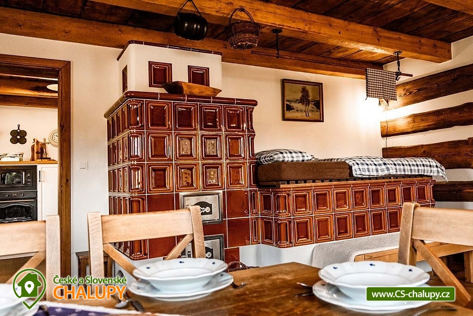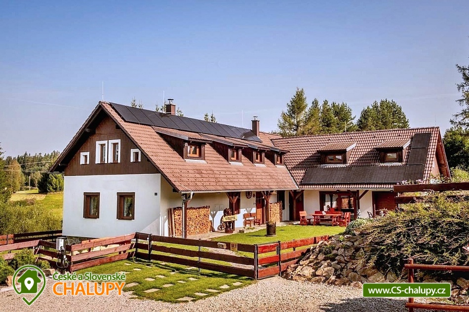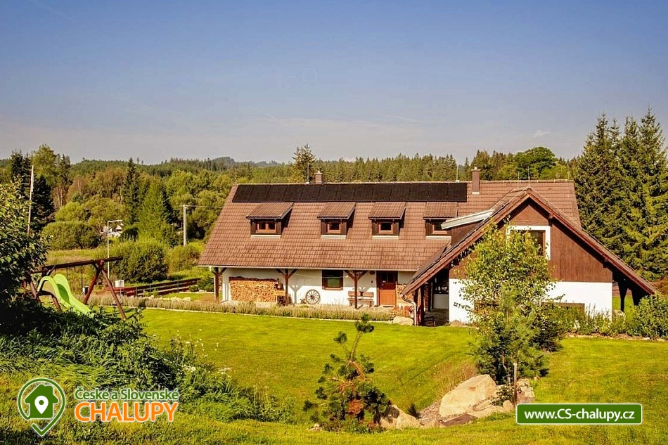 Stylová chalupa Šumava s kachlovými kamny leží u řeky Blanice nedaleko Volar v malé osadě Arnoštov - pod okny chalupy teče Puchéřský potok, ve kterém se můžete vykoupat a osvěžit. Chalupa se nachází na okraji obce v CHKO Šumava budete tedy téměř bez sousedů. Díky této jedinečné poloze máte možnost objevit zapomenutou Šumavu bez stovek turistů, kdy se budete pouze kochat přírodou. Výlet na Sněžnou nebo rozhlednu na Knížecím Stolci jsou toho bezpochyby důkazem. Nedaleko chalupy v obci Ktiš (13 km) je krásné nově vybudované koupaliště nebo můžete vyrazit do lanového parku u Libínské rozhledny (15 km) a po cestě se zastavit vykoupat u Křišťanovického rybníku. V zimě jste pak za 38 minut ve skiareálu Mitterdorf. Ve Volarech pak najdete pivní a konopné lázně nebo bazén. Okolí naší chalupy nabízí vše pro Vaši aktivní rodinou dovolenou. Chalupa má 2 podlaží, sklep a je plně luxusně vybavená. V přízemí je plně vybavená kuchyně - el. sporák se sklokeramickou deskou a pečící troubou, lednička s mrazákem, mikrovlnná trouba, toastovač, varná konvice, kávovar (kapsle Nespresso), pračka se sušičkou a žehlička. U nás najdete i společenskou místnost s jídelním stolem, krbovými kamny s ležením pro 2 osoby, pohodlná křesla s lampou ke čtení, TV, rádio (CD+USB). V přízemí je dále také koupelna se sprchovým koutem a WC. V podkroví se pak nachází tři samostatné ložnice, každá s dvoulůžkem (manželská postel) + možnost přistýlky (2x postel) a opět koupelnou se sprchovým koutem a WC. Vytápění zajištěno tepelným čerpadlem (podlahové topení) a krbovými kamny na dřevo. U chalupy je k dispozici zastřešená terasa s posezením a venkovním topidlem pro chladné večery a k tomu přenosné ohniště a gril. Pro děti je pak k dispozici mnoho vybavení jako je trampolína, houpačka, skluzavka, pískoviště, vzduchovka s terčem, tenisové rakety (kurt 5 km), badmintonové rakety, luk a šípy s terčem, fotbalový míč a branka, petanque a v případě nepříznivého počasí pak také krytý stůl na stolní tenis, šipky a samostatná herna pro děti. Na výlety a cyklovýlety pro Vás máme zdarma k zapůjčení přívěsný vozík Thule (1 dítě). Parkovat lze přímo u chalupy (3 auta).