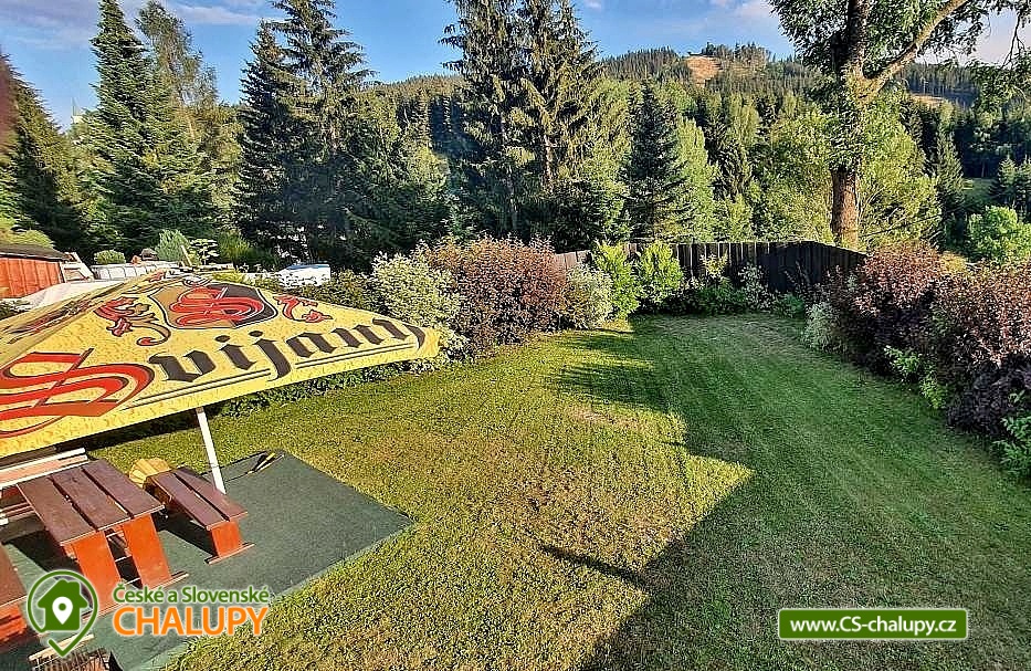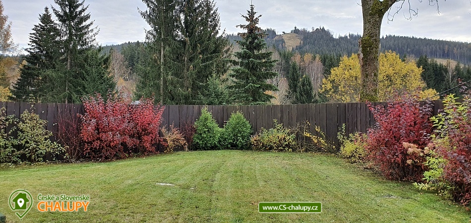„Cottage Anna with a fenced plot and a view of Tanvaldský Špičák.“