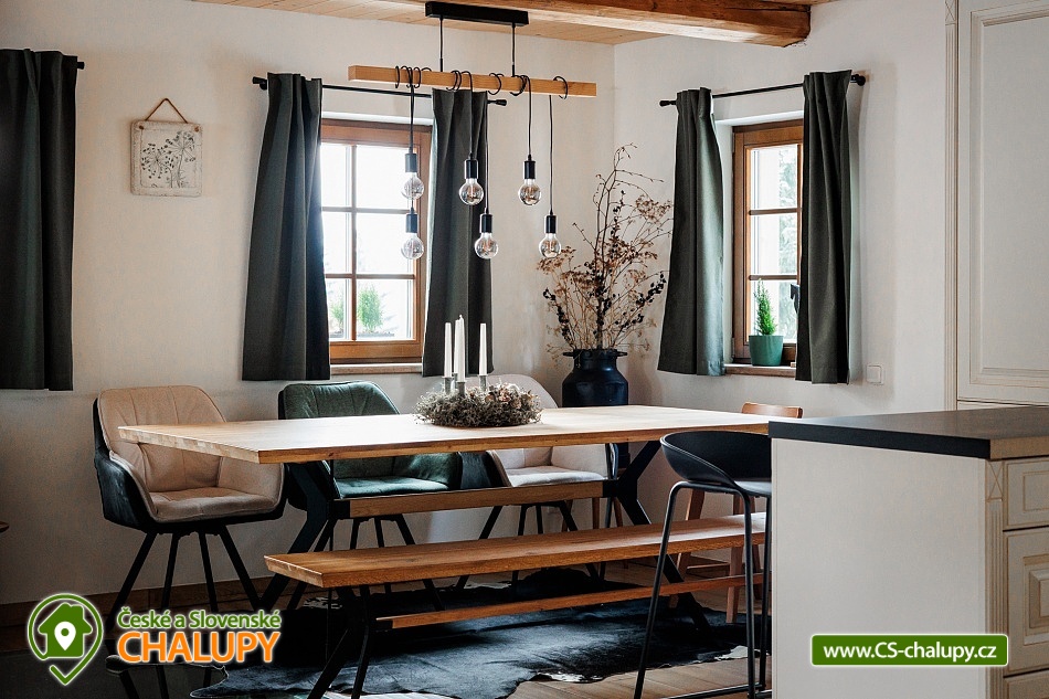 Chalupa Mariánská hora 776 se nachází v Jizerských horách u areálu Tanvaldský Špičák a Jizerské magistrály (Jizerská padesátka). Díky své poloze lze v zimě i v létě provozovat mnoho sportovních i rekreačních aktivit. Chalupa nabízí ubytování pro až 10 osob ve 3 samostatných ložnicích. POPIS: Kapacita je maximálně 10 osob s tím, že chalupa obsahuje 8 standardních lůžek v horním patře ve třech ložnicích a možnost 2 přistýlek ve formě rozkládacího gauče v obývacím pokoji. Vybavená kuchyň a jídelna (myčka, indukční deska, el. trouba, lednice, mikrovlnka, rychlovarná konvice, kávovar, toustovač, nádobí pro 10 osob, jídelní stůl, židle, lavice, dětská židlička). Obývací pokoj (rozkládací gauč, křeslo, konferenční stolek, stolek s TV). Lůžka jsou rozmístěna ve třech pokojích. V prvním pokoji se nachází manželská postel, ve druhém pokoji se nachází jednolůžko a manželská postel a ve třetím pokoji jednolůžko a pohovka pro 2 osoby pro každodenní spaní. Nechybí ani obývák s knihovnou, TV a playstation, kuchyňská linka s lednicí, kávovarem a varnou konvicí a koupelna s vanou a WC. Součástí pronájmu jsou čisté lůžkoviny a ručník na každou nahlášenou osobu. Venku lze využít ohniště s grilem, posezení a po domluvě tepelné hořáky (za poplatek). Horní patro je propojeno dřevěným schodištěm s přízemím, kde je obývací prostor s kuchyňskou linkou a jídelnou, lyžárna se sušákem na 8 párů bot, koupelna se sprchovým koutem, WC, infrasaunou a extra toaleta. Sociální zařízení: V chalupě jsou k dispozici 2 koupelny. Koupelna v přízemí se sprchovým koutem, WC a infra saunou. V přízemí extra toaleta. V prvním patře koupelna s vanou a WC. Vytápění objektu je zajištěno kombinací el. vytápění nebo krbu. Chalupa disponuje 3 místy k parkování přímo u chalupy. Okolí: Přehrada Desná (Protržená přehrada), Vodní nádrž Souš, Rozhledna na světlém Vrchu, Rozhledna Špičák, Mariánský schody, Muzeum výroby hraček Detoa. V nedalekém Liberci a Jablonci nad Nisou, Zábavní centrum Babylon, IQ Landia, Zoo Liberec, Bazény, Dinopark, Ještěd. Zima: u chalupy se nachází menší sjezdovka s občerstvením „Vlek U Tomáše". Těšíme se na Vás u nás.