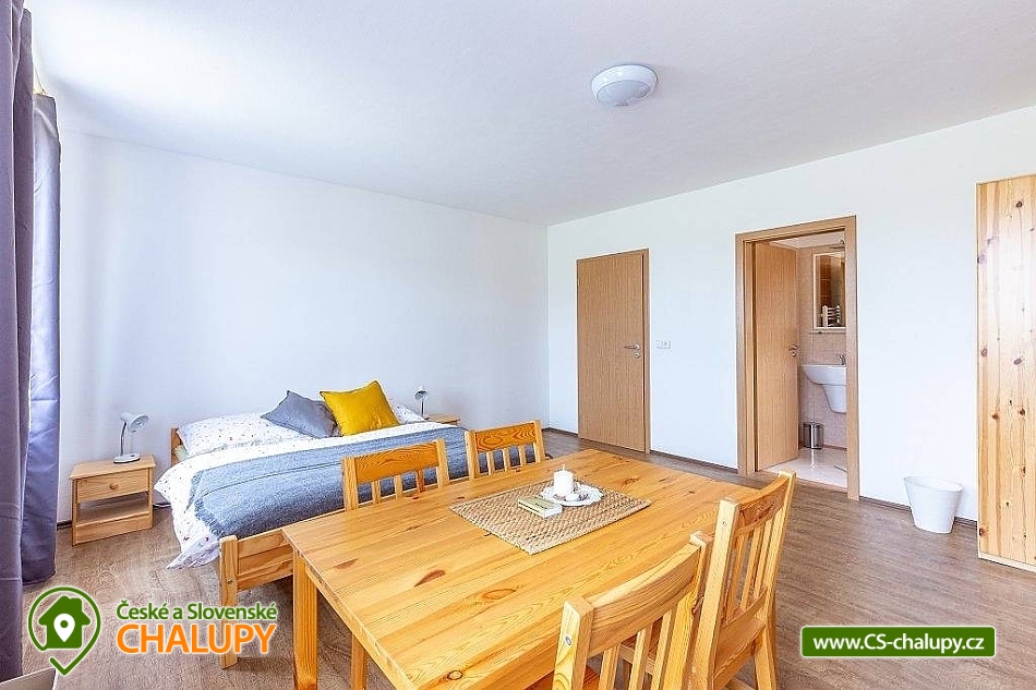 Chalupa Třeboňsko s koupacím jezírkem a saunou se nachází uprostřed nádherné přírody jižních Čech nedaleko obce Borovany na Třeboňsku. Pokud si chcete užít klidné, ničím a nikým nerušené dny v přírodě, jste u nás správně. Chalupa k pronájmu poskytuje ubytování pro až 13 osob ve 3 ložnicích. V první ložnici je manželská postel, palanda a jedno samostatné lůžko. Ve druhé i třetí ložnici je manželská postel a palanda. V každé ložnici je stůl se židlemi a šatní skříň. Potkávací místo - prostorná společenská místnost, je plně vybavena pro vaši zábavu i pohodlí. Kromě kuchyně je ve společenské místnosti velký stůl, pohovky, křeslo, krb, wifi internet a televize. Kuchyň je plně vybavena: varná plocha a troubou, mikrovlnka, varná konvice, toustovač i myčka. Ke každé ložnici připadá samostatná koupelna se sprchovým koutem a WC. Venkovní prostory poskytnou kryté sezení, velký gril a příjemný výhled na přilehlé louky a pastviny. Ve dvoře je dřevěný domeček plný dříví a náčiní k roztopení krbu nebo grilu. Pokud si budete chtít zasportovat, vedle chalupy máme připravené hřiště na volejbal či badminton a ve dvoře je stůl na stolní tenis. Zaparkovat můžete před chalupou nebo ve dvorku. Místa je tu dost. Třeboňsko je protkané cyklistickými trasami, je tu nespočet rybníků a krásná příroda, ale i spousta historických památek. Ve vedlejší vesničce Jílovice se nachází lokální pivovar. O kousek dál v Třeboni jsou lázně i zámek a taky známá hrobka Domanín. Dalším blízkou atraktivitou jsou například Novohradské hory nebo Terziino údolí. Možnosti koupání: rybník Velké Bahno a Lom Trhové Sviny. Těšíme se na Vás u nás.
