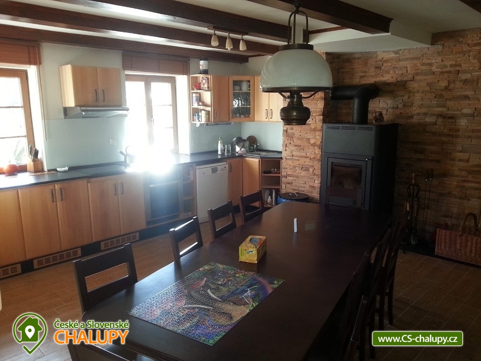 Chalupa u říčky Bílá Bystřice leží v krásném prostředí horského městečka Pernink (900 m.n.m.) - nabízíme ubytování pro až 14 osob ve 3 ložnicích. Chalupa je dvoupodlažní po celkové rekonstrukci. Obytná plocha je cca 170 m2. V přízemí se nachází vstupní hala se schodištěm, obytná kuchyně s rozkládacím stolem pro až 14 osob, koupelna se sprchovým koutem, dvěma umyvadly a WC, dále samostatné WC, obývací pokoj s dvěma rozkládacími pohovkami (š. 140 cm) a dalším jídelním stolem a technická místnost. Ve druhém podlaží se nachází chodba, koupelna se sprchovým koutem, umyvadlem, WC a 3 pokoje. Dva pokoje jsou 4 lůžkové (vždy manželská postel a dvě samostatné postele). Jeden pokoj je 3-4 lůžkový (manželská postel a samostatná postel s výsuvnou přistýlkou 80 x 190 cm). V obytné kuchyni jsou krbová kamna napojená na teplovodní výměník, kterým je možno vytápět celý objekt, ale je možné topit i el. kotlem. Ohřev TUV je zajištěn el. bojlerem 160 l. Vybavení kuchyně: el. trouba, mikrovlnná trouba, myčka nádobí, lednička s mrazákem. V obývacím pokoji je LCD televizor. Wifi je k dispozici. Parkování pro 3 až 4 auta je možné na vlastním pozemku přímo u chalupy. Pozemek je ohraničen potokem Bílá Bystřice. Okolí chaty vybízí k celoročním sportovním aktivitám. Jaro, léto a podzim se nesou v duchu horské cyklistiky nebo turistických výletů. Cyklistické a turistické stezky jsou všude v okolí. Relaxovat můžete také v 10 km vzdálených Lázních Jáchymov nebo vyrazit za kulturou do Karlových Varů (20 km). V zimě: Skiareál pro nenáročné lyžaře a děti je přímo v Perninku cca 700 m od chalupy. Běžecké trasy přímo v okolí obce. Skiareál Klínovec je vzdálen 15 km. Kitearéna Abertamy 3 km a vyhlášený Skiareál Plešivec je cca 3,8 km. Těšíme se na Vás u nás.