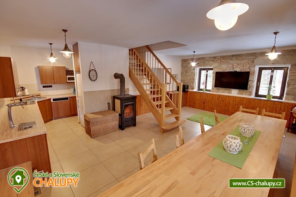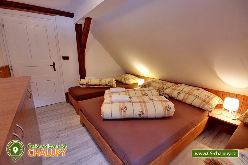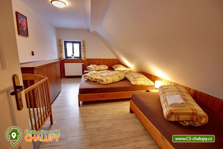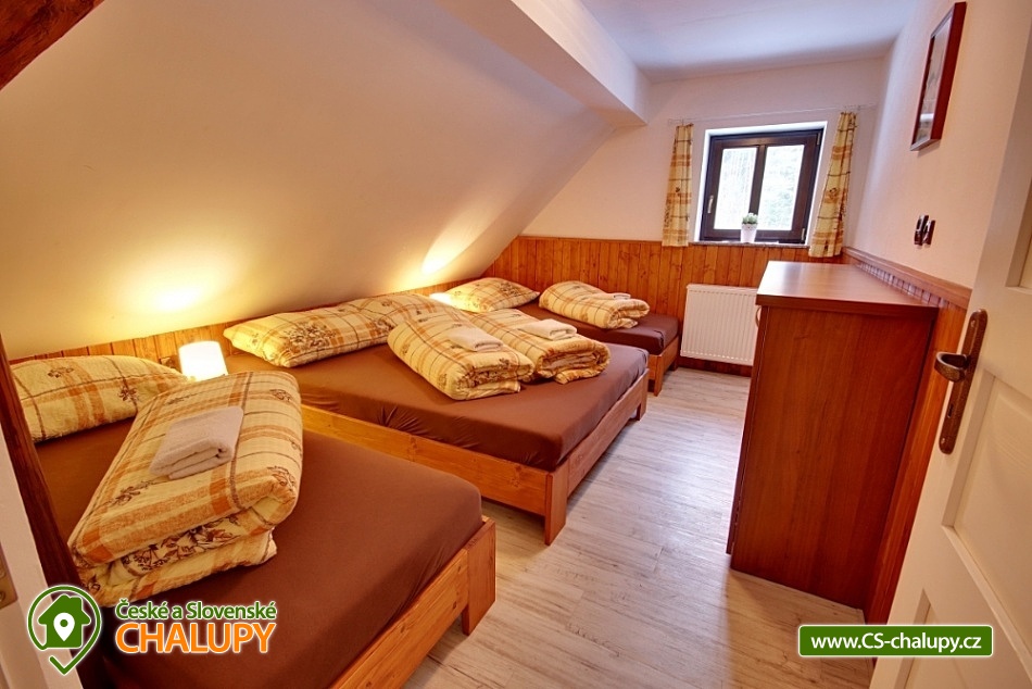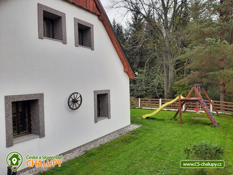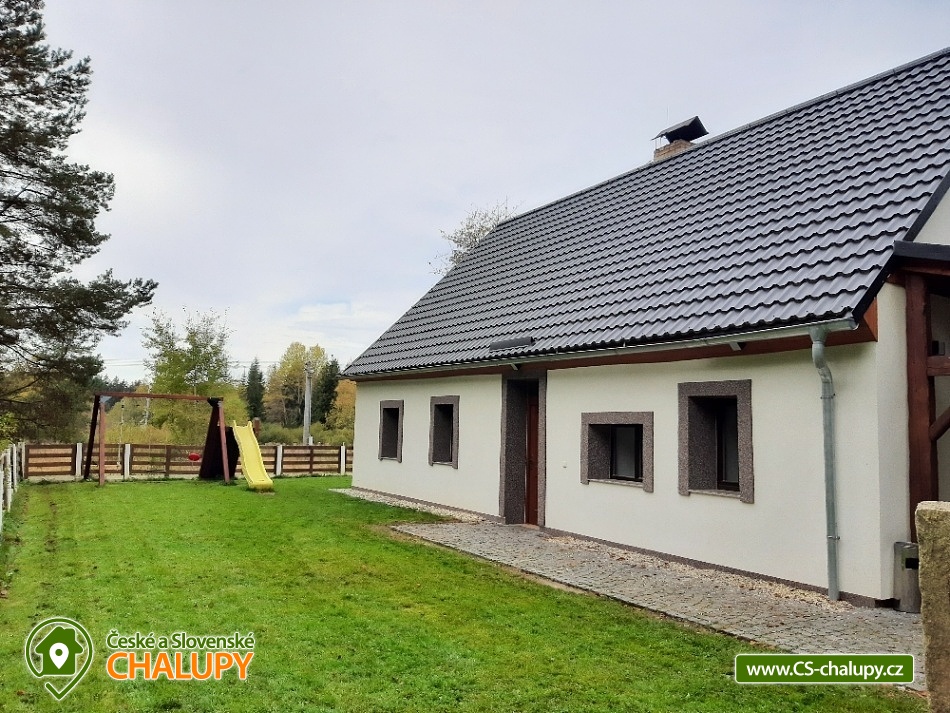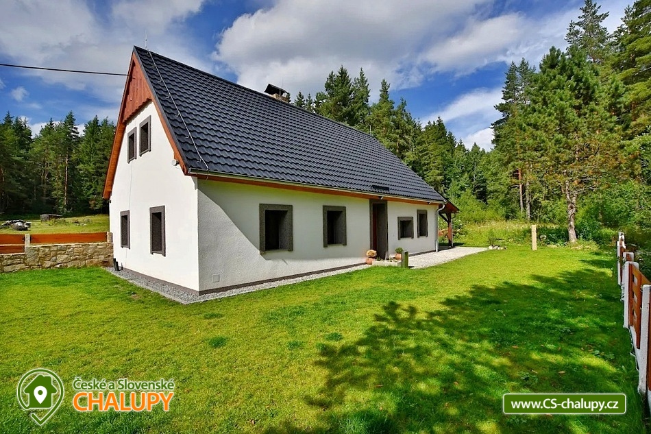 Chalupa Chlum - Volary. Accommodation cottage Šumava, southern Bohemia. Our cottage is in the heart of the Šumava National Park in the middle part after a complete reconstruction. The cottage is right next to the forest for all demanding clients who want something perfect. Exceptional place for adults (drafts, grill, terrace, peace) and for your children (children's corner, sandbox, no traffic at all). Chalet for rent provides accommodation for 16 people in a total of 4 bedrooms (4 beds each). In the kitchen there is dishwasher, electric kettle, microwave oven, stove + ceramic hob, TV 109 cm, vacuum cleaner and cot. In the object: 2x separate sanitary facility (2x shower, 3x Wc, 2x wash-basin, 1x washer), central heating, electric boiler and fireplace with exchanger. The cottage is a wooden pergola with a barbecue for your goodness, of course there is a fireplace and unspoiled nature that you will enjoy, because the nearest neighbors are 500 m from us. Part of the cottage is also a stylish stodůlka where is available garden furniture or sieves for drying mushrooms, the barn also serves for your use, for example bicycle storage, skiing, etc. Parking is possible directly at the object unlimited. We can arrange breakfast or half board after agreement. Restaurant within 3 km (Volary) or recommend to order pizza from Volar. The most famous tourist destinations are the Boubín Forest with a lookout tower, Libínské Sedlo with a lookout tower and a cableway, Plešné Lake, Schwarzenberg canal with sailing, Three-alley, Lipno lake, cyclists or skaters around the Vltava (Nová Údolí - Nová Pec). Famous towns: Prachatice, Český Krumlov, Strakonice, Hluboká, České Budějovice, Passau (Germany). A tennis court can be booked in the summer and a local swimming pool and sauna are available. You can visit the playground, the city museum, the Valaar menhirs, the crossing, the old town with typical volary houses. Nearby there is a railway station with a train exit in the direction of Prachatice, Strakonice, Český Krumlov and Nové Údolí (transition to Bavaria). Of course there are marked tourist circuits around the city. In winter, perfect conditions for skiing in German Mitterdorf (15 minutes from the house, very affordable family fare) are also suitable for the smallest skiers, the nearest center is the České Žleby (10 minutes). After skiing, you can visit the nearby thermal baths in Waldkirchen (including a salt-water 35-degree thermal pool) or the Volare town swimming pool.