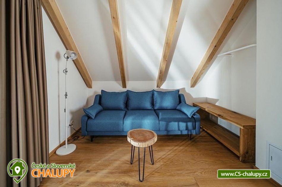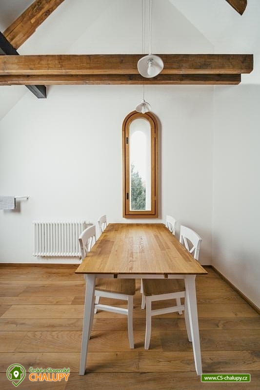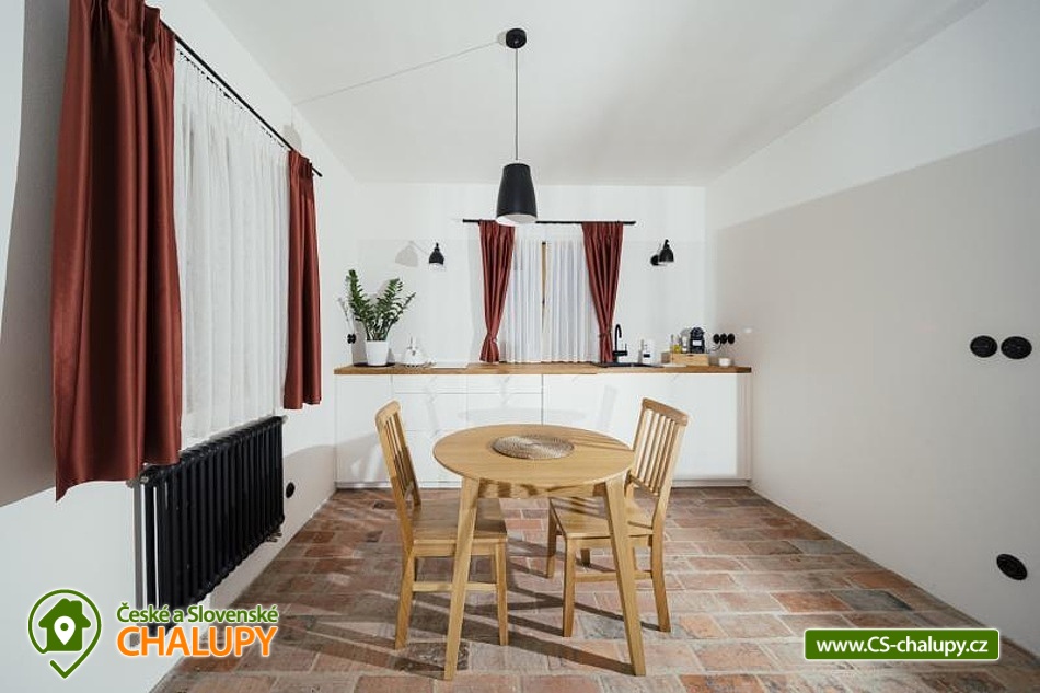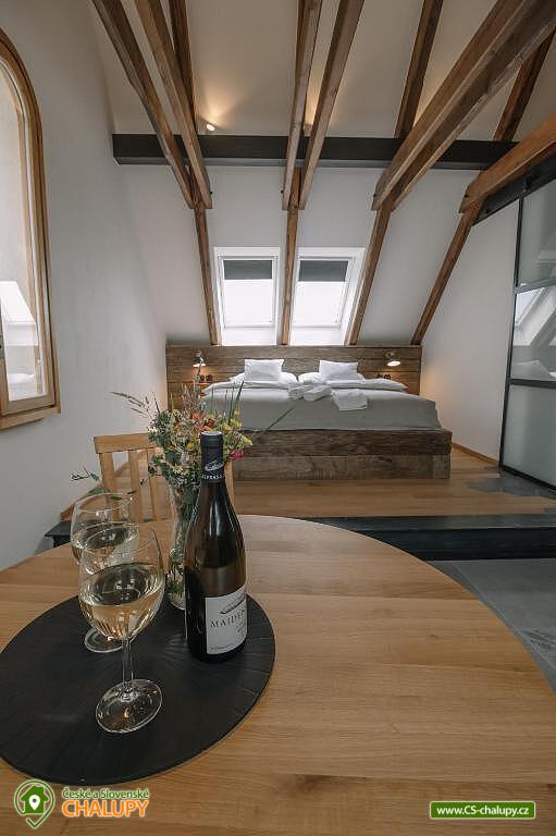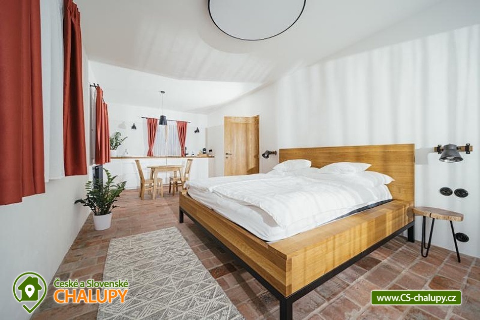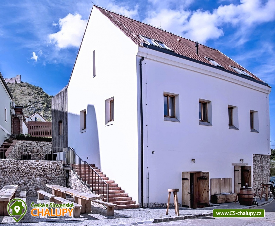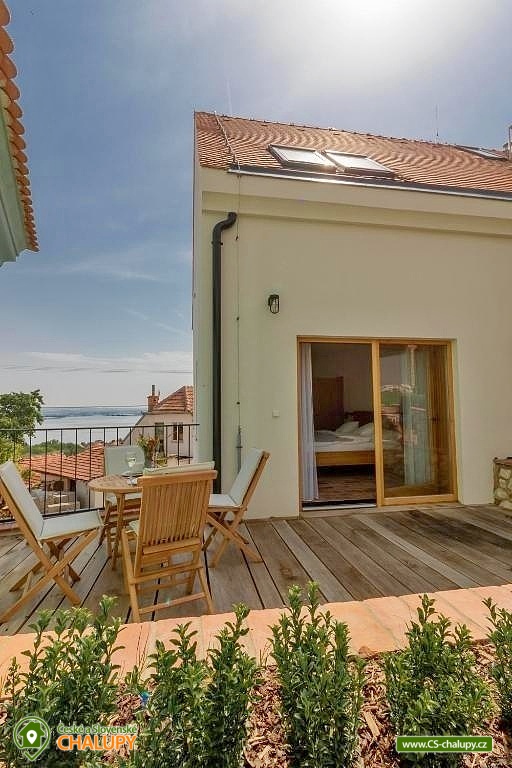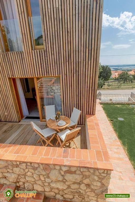Apartmánová chalupa pod hradem Děvičky se nachází v obci Pavlov, v krásném prostředí CHKO Pálava, u Novomlýnské nádrže na jižní Moravě. Komfortní stavení plné masivního dřeva, dobrého řemesla a elegantního a přitom prostého, čistého designu. Ctí tradici a zároveň nabízí ryze současný komfort. Užívat si budete úžasný výhled na zříceninu hradu Děvičky a na druhé straně na Novomlýnské nádrže, kde se můžete vykoupat. Chalupa nabízí ubytování s možností snídaně pro 8 osob ve čtyřech samostatně pronajímaných dvoulůžkových apartmánech s manželskou postelí a vlastní kuchyní a koupelnou. Po domluvě je možné ve dvou apartmánech zajistit dvě přistýlky pro děti řešené rozkládací pohovkou a dvě dětské postýlky. POPIS: Dřevěné apartmá - prostorné apartmá s oddělenou ložnicí s obývací místností od kuchyně s jídelní místností a velkoformátovým oknem s výhledem na zříceninu hradu Děvičky. Cihlové apartmá - stylové apartmá s podlahou z půdových cihel, s velkými prosklenými dveřmi na terasu nad Novomlýnskými nádržemi. Betonové apartmá – apartmá vhodné pro rodiny s dětmi, s oddělenou ložnicí od obývací a jídelní části, s krbovými kamny a pohodlným sofa a s terasou. Ocelové apartmá – útulné apartmá s postelí z masivních pražců, černou stylovou okouzlující koupelnou a přiznanými střešními trámy. Všechny apartmány mají plně vybavenou kuchyň (jídelní stůl, lednice, kávovar s kapslemi Nespresso, rychlovarná konvice s čajíkem, lednice, indukční vařič s nádobím, vinný servis a jídelní servis). Sociální zařízení ve všech apartmánech zahrnuje jednu koupelnu s WC. K dispozici jsou ručníky, příručníky a osuška, župan a pantofle, kosmetika, toaletní potřeby, mýdlo, šampon a fén. Dále je součástí apartmánů klimatizace a topení s termostatem a ovládáním, čtecí lampy, gauč nebo křeslo (dle apartmá) a komfortní odemykání na čipové karty. V celém objektu je k dispozici WIFI připojení na internet. Venku lze posedět na zahradě. K dispozici je gril a ohniště. Součástí objektu je restaurace s bistrem a kavárnou a vinný sklep. Parkovat lze přímo u objektu. K dispozici je nabíječka na elektrokola. V okolí objektu možnost turistiky, cykloturistiky, koupání, rybaření a houbaření. V blízkosti je jízdárna, tenisové kurty a golfové hřiště. V nedalekém okolí lze projít několik vinařských stezek a navštívit spousty dobrých vinařství. Mezi možnosti koupání patří např.: vodní nádrž Nové Mlýny, lom Mariánský mlýn, aquapark Pasohlávky Aqualand Moravia, koupaliště Mikulov - Riviéra, bazén Hustopeče, koupaliště Hustopeče, koupaliště Březí, rybník Šutrák, koupaliště Horní Bojanovice, koupaliště Němčičky, Mlýnský rybník, koupaliště Žabčice, atd. K výletům v okolí láká Pálavské vrchy - CHKO Pálava, Dívčí hrady Děvičky, Svatý kopeček v Mikulově, Siročí hrádek a Stolová hora nad obcí Klentnice, Kočičí skála, Kozí hrádek v Mikulově, Lednicko Valtický areál nebo Dolní Věstonice. Těšíme se na Vás u nás.