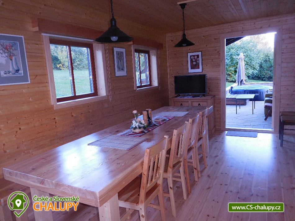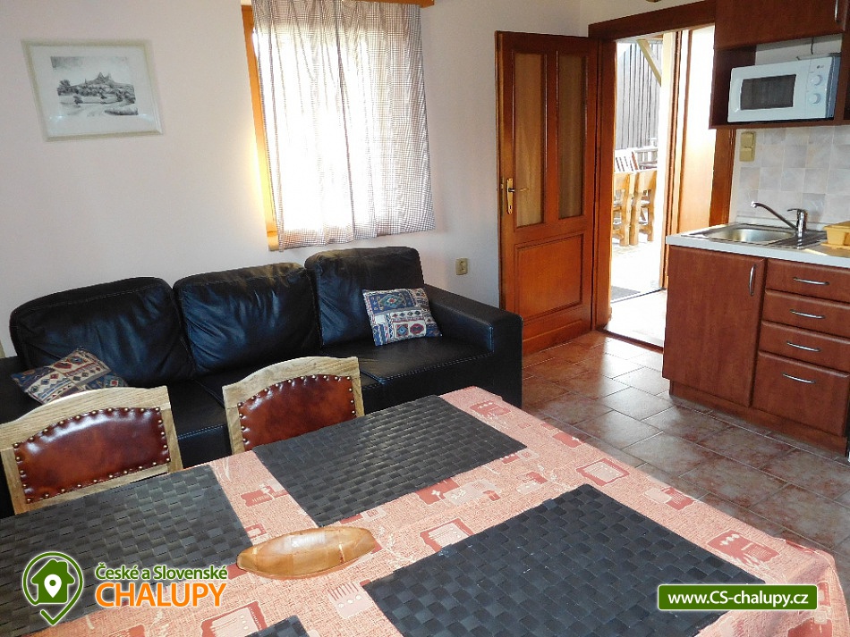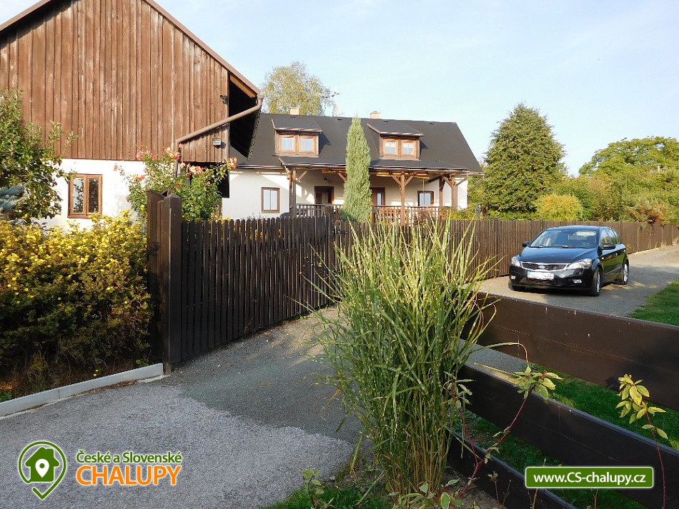 Chalupa u hradu Trosky - Zlatá stezka Českého ráje. Chalupa disponuje dvěma samostatnými apartmány umožňující pobyt jedné nebo dvou rodin s rozsáhlým zázemím kolem objektu. Pronajímat lze jak celý objekt tak jednotlivé apartmány. Kapacita apartmánů se samostatným vchodem je 10 osob (5 + 5 osob). Panorama objektu tvoří výhled do údolí s Podtroseckými rybníky a kulisou hradu TROSKY tyčící se nad terasou včetně nočního nasvícení hradních věží. Dva samostatné apartmány přímo pod hradem Trosky u Zlaté stezky Českého ráje. Vybavení objektu - Každý apartmán má plně vybavenou obývací kuchyň, ložnici, která je umístěna v podkroví (po domluvě je možné umístění dětské postýlky), dále koupelnu s WC a předsíň se šatnou. Navazuje zastřešená terasa, která je vybavena stylovými selskými sety. Součástí vybavení je venkovní gril a zázemí pro děti (pískoviště, houpačky a velký oplocený prostor pro dětské hry a sportovní vyžití). K ubytovacímu objektu patří hospodářská budova, kde je místnost ke společnému posezení a hrám, vybavená LCD televizorem. Zároveň je zde malá letní kuchyň a dostatečný prostor pro uložení kol a ostatní vybavení. Pokoje: kuchyň - lednice, mikrovlnná trouba, varná konvice, varná jednotka, dále je vybavena veškerým nádobím, jídelní kout, pohovka, televize koupelna + WC - sprchový kout, umyvadlový set, - teplá voda ložnice - dvoulůžko, + 2x válenda, noční stolky se světly, vybavena povlečením. Ložnice – vybavení je včetně kompletního povlečení všech lůžek. Na výletech pěšky nebo na kole budete okouzleni scenérií pískovcových skal, malebných údolí se spoustou rybníků a nezapomenutelných výhledů do kraje. Na malém území České ráje na Vás čeká množství hradů, zámků, muzeí a spousta krásných výletních restaurací s příjemným posezením. V okolí doporučujeme: Zámek - Sychrov, Hrubý Rohozec, Hrubá Skála, Kopicův statek - pískovcové sochy vytesané do skal, Chov koní - farma Borčice, Lázně Sedmihorky, Rozhledna Kozákov s výhledem do dalekého okolí včetně hřebenů Krkonoš, Obrácené zvony na zvonici v Rovensku pod Troskami, Skalní město - pískovcové skály s vyhlídkami do okolí, Hrad Kost, Valdštejn, Muzeum panenek v Troskovicích, Hrad Trosky, Jinolické rybníky, Prachovské skály, Přírodní zábavný park ,,Šťastná země" pro děti i dospělé, Lovecký zámeček Humprecht, Údolí Podtroseckých rybníků.