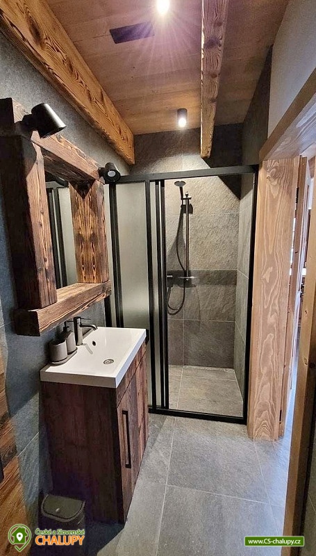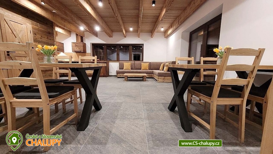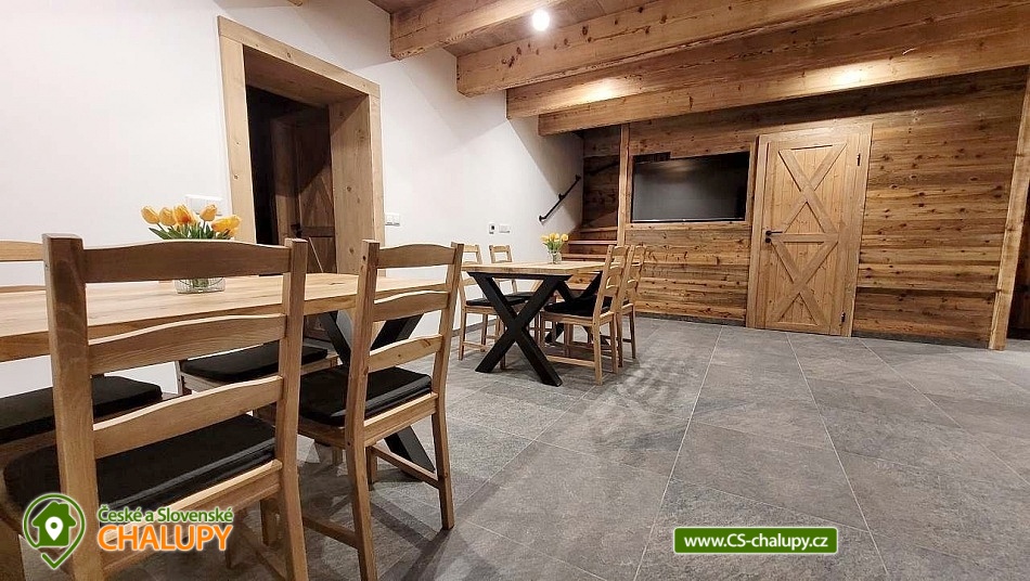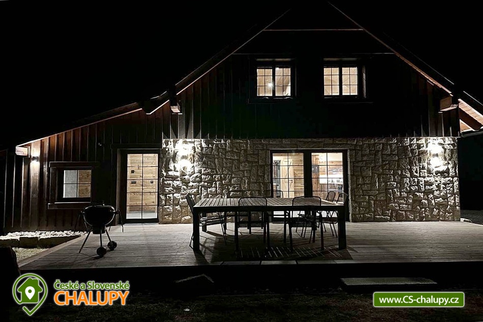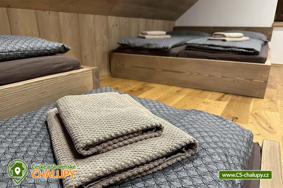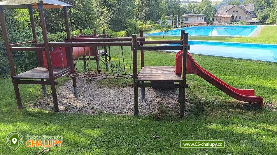 A mountain cottage with an outdoor pool on the border of the Jizera Mountains and the Giant Mountains is located in the village of Zlatá Olešnice. The village includes a bike park, swimming pool, ski resort and cross-country skiing trails. The cottage offers accommodation for up to 10 people in 3 bedrooms. There is one ground floor double bedroom (1 double bed) and two quadruple bedrooms upstairs (2 double beds and 2 pull-out beds for 2 people). All bedrooms have made beds and towels. The interior of the cottage is dominated by stone and wood with a beautiful structure, which creates a pleasantly warm atmosphere. On the ground floor, you can spend time together in a spacious living room with a sofa, TV with SAT, dining area and fully equipped kitchen (fridge with freezer, hob, oven, microwave, dishwasher, electric kettle, dishes, toaster, blender and capsule coffee machine - Nespresso, Caffissimo/Tchibo, Dolce Gusto and adapter for ground coffee). The sanitary facilities include two bathrooms with shower and toilet on the ground floor and one separate toilet on the floor. Heating is provided by underfloor heating, which is regulated by thermostats in each room. WIFI internet connection is available throughout the building. Outside, you can sit on a spacious terrace with a grill. There is also another covered seating area and a fireplace located near the terrace and the forest. There is an outdoor pool. In the summer season, you can use the ping-pong table, football goals, badminton net or play football and lazy tennis or petanque on the spacious meadow right in front of the terrace. Parking is available directly at the property. In the vicinity of the property, there are opportunities for hiking, cycling, swimming, mushroom picking, fishing, skiing and cross-country skiing. There are tennis courts, a riding stable and a golf course nearby. There is a bike park, a pump track for children and a workout ground right next to the cottage. Swimming options include: Zlatá Olešnice Swimming Pool, Jablonec nad Jizerou Swimming Pool, Železný Brod Municipal Swimming Pool, Jilemnice Swimming Pool, Špindlerův Mlýn Aquapark, etc. In the vicinity, there are ski areas and children's slopes including night skiing - Zlatá Olešnice Ski Area, Sklenařice Ski Area, Šachty - Vysoké nad Jizerou Ski Area, Paseky nad Jizerou Ski Area and others. The Jizerská magistrala for cross-country skiers with a starting point runs near the cottage. For trips in the surrounding area, the Jára Cimrman Lighthouse in Příchovice, the Palacký trail and valley in Kamenice, the Bozkov dolomite caves, the Mumlavský waterfall in Harrachov, the Tanvaldský Špičák lookout tower, the Museum of Local History for Vysoké nad Jizerou, the Tanvald - Kořenov rack railway or the Museum of Glass and Costume Jewelry in Jablonec nad Nisou are all worth a visit. We look forward to seeing you there.