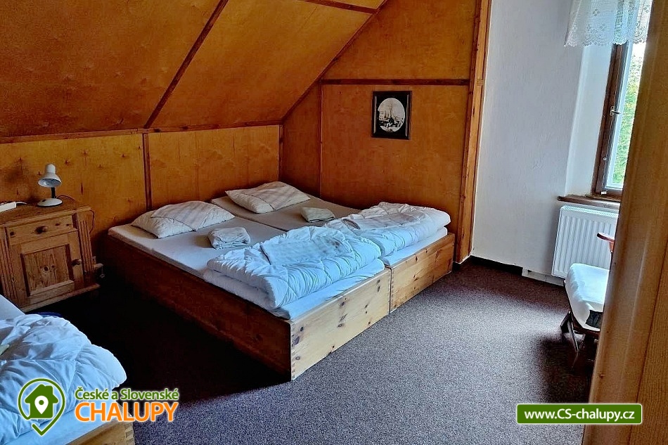 Chalupa u lesa s oplocenou zahradou v klidné části Krušných hor, poloha nedaleko od CHKO Slavkovský les, obec Kraslice. Okolí chalupy skýtá klid, soukromí a čistý horský vzduch. Kapacita chalupy je až 16 osob ve 4 ložnicích. Hostům je k dispozici společenská místnost v přízemí, v 1. patře 4 pokoje po 4 lůžkách a v suterénu vinárna s pípou, krbem i krbovými kamny k možnému společnému posezení. Sociální zařízení: 2x wc a 2x sprchovací kout, v přízemí také automatická pračka. Vytápění chalupy je elektrické + krbová kamna ve společenské místnosti a ve vinárně krb a krbová kamna. Možnost parkovat před chalupou. Cesta až k chalupě je udržovaná, v zimním období doporučujeme s sebou řetězy. Okolí: Poloha chalupy je předurčena k procházkám, cykloturistice, běžeckému lyžování v okolí nebo sjezdovému lyžování ve střediscích Bublava a Stříbrná (6 km) Klínovec a Boží Dar (30 km), na své si přijdou i milovníci hub a všichni, kteří rádi sbírají borůvky. V blízkosti asi (3 km) je hraniční přechod do Německa. V Sokolově 25 km je pro veřejnost otevřený po celý rok krytý bazén. U Přebuze je přírodní koupaliště a pěkné koupání je u Chodova - Bílá voda. Asi 26 km od Kraslic je známý hrad Loket. Poblíž je CHKO Slavkovský les a Svatošské skály. V okolí chalupy jsou příjemné procházky. Těšíme se na Vás u nás.