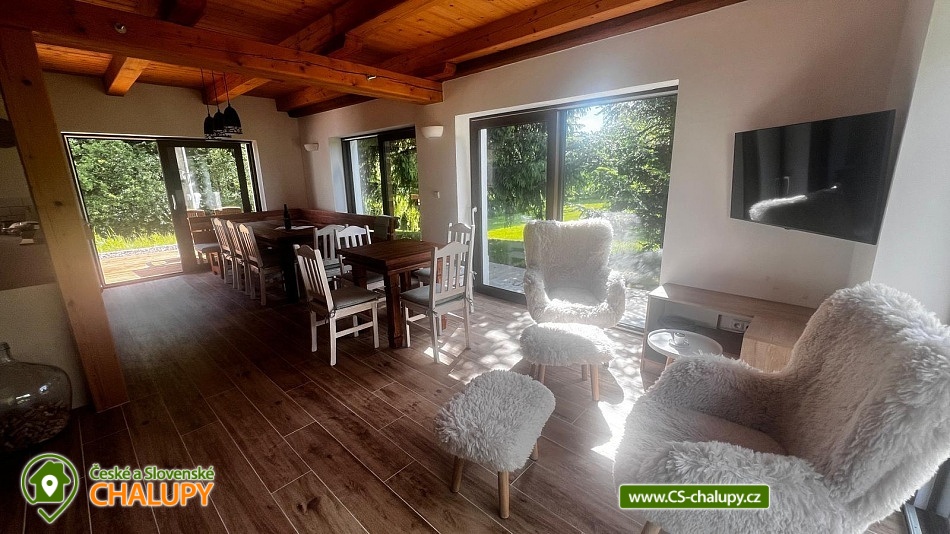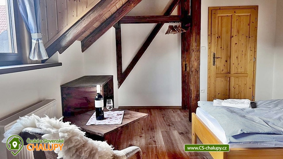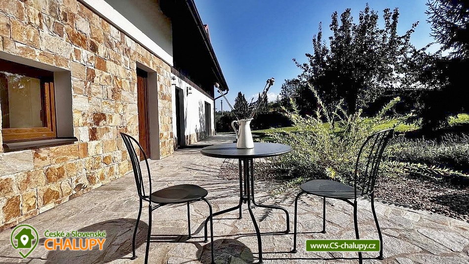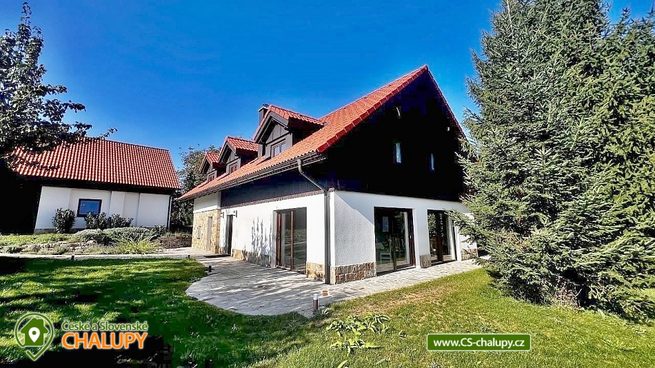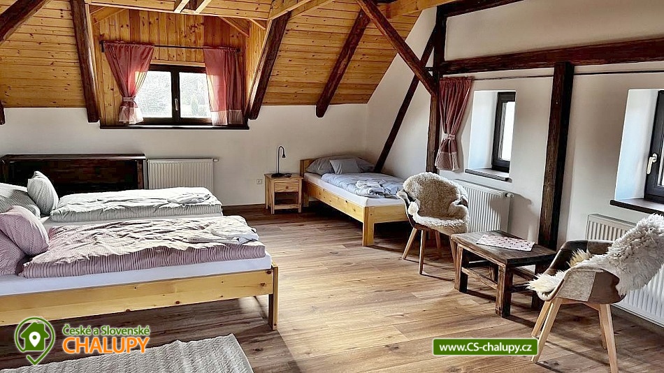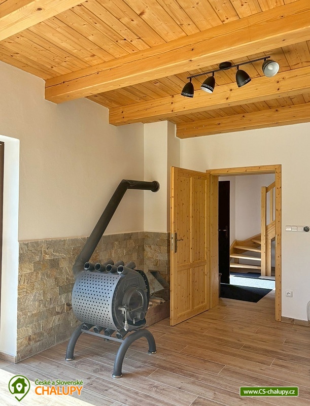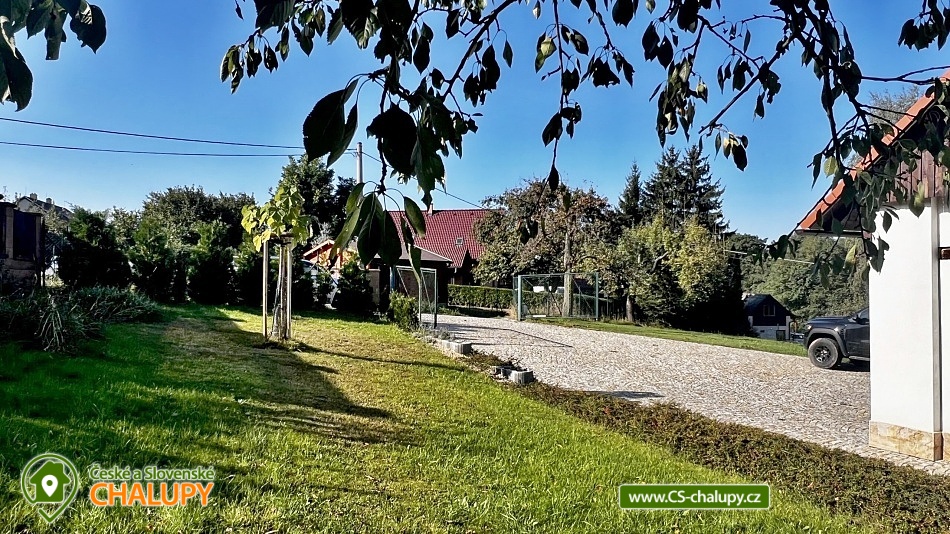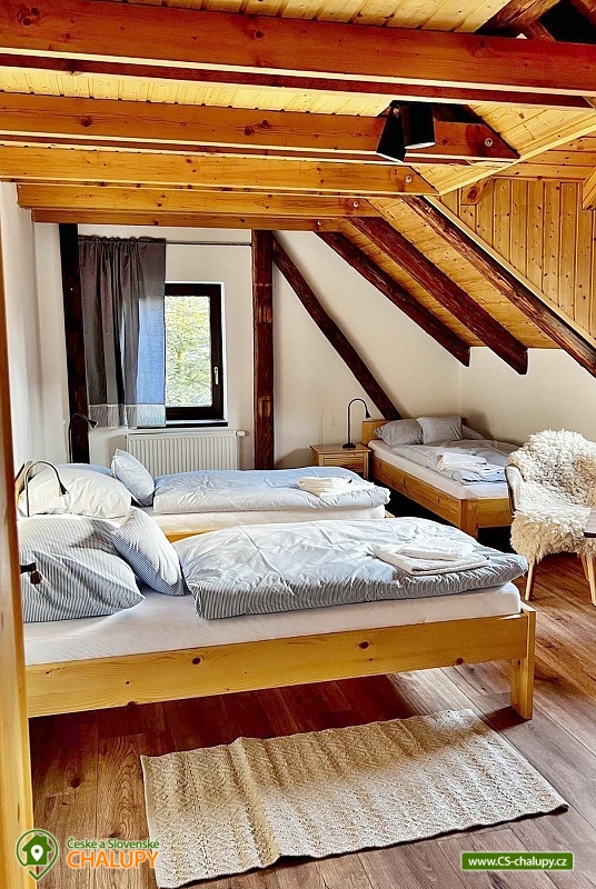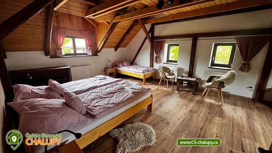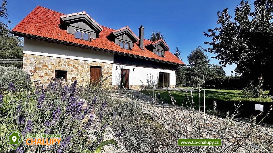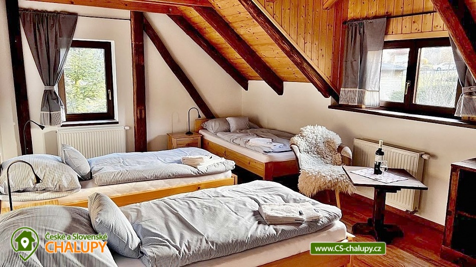 The cottage at Grandma's is located in the picturesque village of Lhotky, near the towns of Náchod, Nové Město nad Metují and the Rozko dam. The spacious cottage offers accommodation for 10 people in three bedrooms (1x four-bed and 2x three-bed). There is a large living area with a TV, a fireplace, a dining table and a fully equipped kitchen (dishes, refrigerator, freezer, induction stove, oven, microwave, dishwasher, toaster, kettle, Nespresso coffee machine including capsules and a hand blender). The sanitary facilities include three bathrooms with a shower, toilet and bidet. There is a washing machine, dryer, cot, high chair, wood for the fireplace, bed linen, towels and Wi-Fi access. The property is heated by a heat pump. There is also a wood-burning stove, which creates a pleasant atmosphere during cooler evenings. Parking is possible directly at the property. The cottage has a terrace with outdoor seating, a grill, a fireplace and a sandpit. The building also includes a room for storing bicycles and skis, and there is also a possibility to charge electric bicycles. The beautiful nature around the cottage attracts people for walks, mushroom picking, hiking and cycling. Swimming options: Rozko Dam, pinka Pond, Brodský Pond, Náchod Swimming Pool, Náchod Swimming Pool, Police nad Metují Swimming Pool, Jaroměř Swimming Pool, Broumar Opočno Swimming Pool. Tips for trips: Dvůr Králové nad Labem Zoo and Safari Park, Grandma's Valley, Náchod Chateau, Nové Město nad Metují Chateau, Opočno Chateau, Kuks Baroque Area, Adrpach-Teplice Rocks, Pekelské Valley. In winter, you can visit several nearby ski areas: Sedloňov Ski Area, Detné Ski Center in the Orlické Mountains, Orlické Záhoří Ski Area, Mladé Buky Ski Area in the Krkonoe Mountains. We look forward to seeing you here.