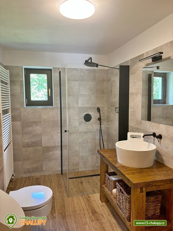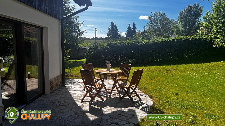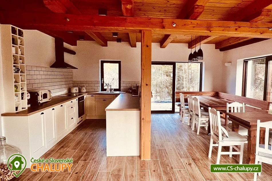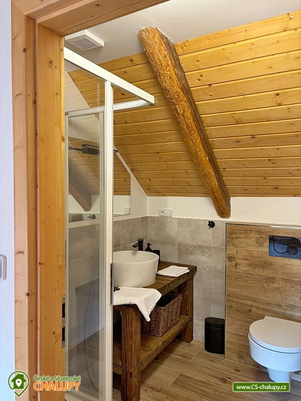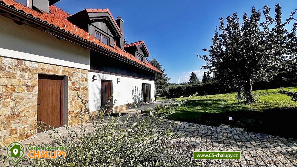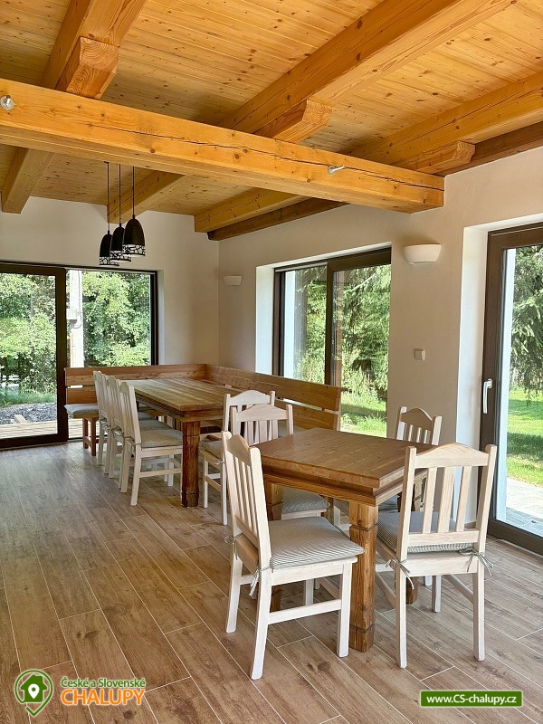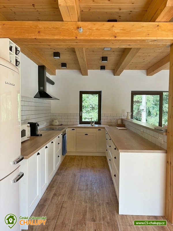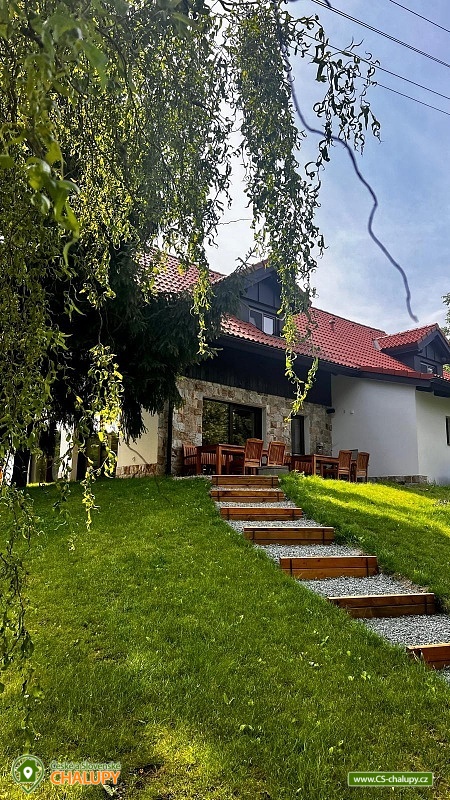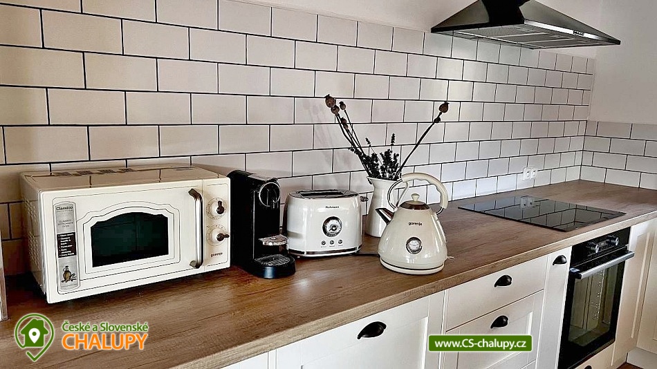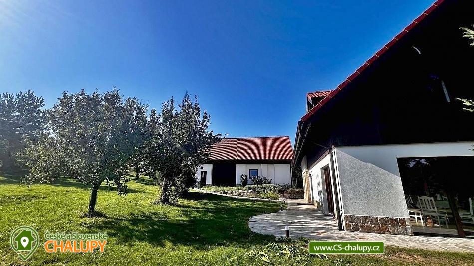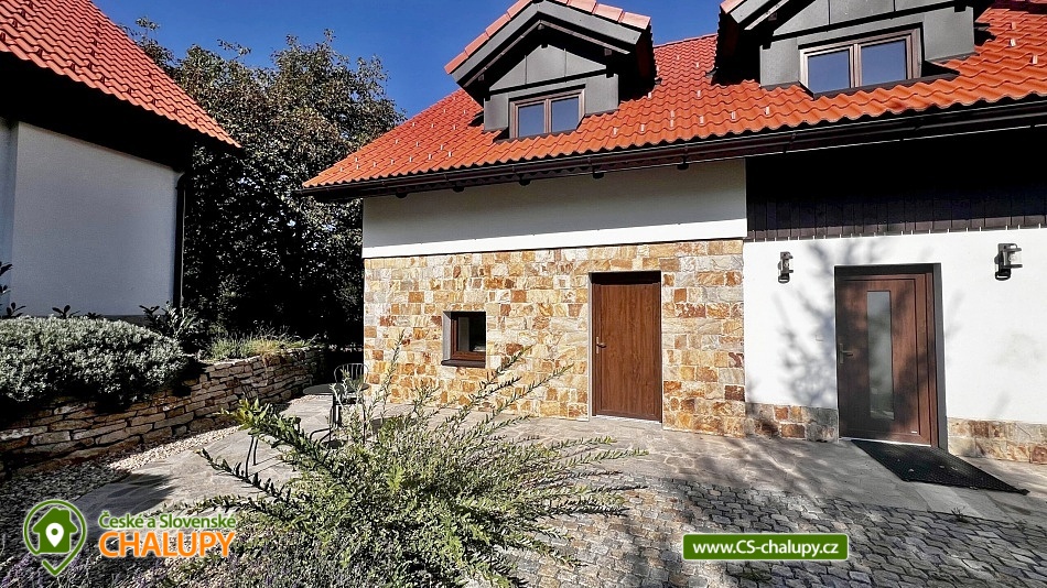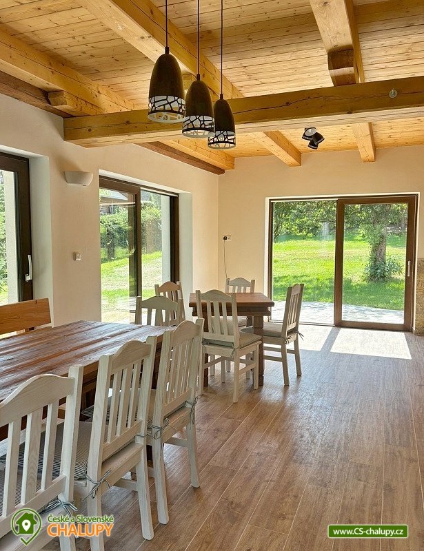 The cottage at Grandma's is located in the picturesque village of Lhotky, near the towns of Náchod, Nové Město nad Metují and the Rozko dam. The spacious cottage offers accommodation for 10 people in three bedrooms (1x four-bed and 2x three-bed). There is a large living area with a TV, a fireplace, a dining table and a fully equipped kitchen (dishes, refrigerator, freezer, induction stove, oven, microwave, dishwasher, toaster, kettle, Nespresso coffee machine including capsules and a hand blender). The sanitary facilities include three bathrooms with a shower, toilet and bidet. There is a washing machine, dryer, cot, high chair, wood for the fireplace, bed linen, towels and Wi-Fi access. The property is heated by a heat pump. There is also a wood-burning stove, which creates a pleasant atmosphere during cooler evenings. Parking is possible directly at the property. The cottage has a terrace with outdoor seating, a grill, a fireplace and a sandpit. The building also includes a room for storing bicycles and skis, and there is also a possibility to charge electric bicycles. The beautiful nature around the cottage attracts people for walks, mushroom picking, hiking and cycling. Swimming options: Rozko Dam, pinka Pond, Brodský Pond, Náchod Swimming Pool, Náchod Swimming Pool, Police nad Metují Swimming Pool, Jaroměř Swimming Pool, Broumar Opočno Swimming Pool. Tips for trips: Dvůr Králové nad Labem Zoo and Safari Park, Grandma's Valley, Náchod Chateau, Nové Město nad Metují Chateau, Opočno Chateau, Kuks Baroque Area, Adrpach-Teplice Rocks, Pekelské Valley. In winter, you can visit several nearby ski areas: Sedloňov Ski Area, Detné Ski Center in the Orlické Mountains, Orlické Záhoří Ski Area, Mladé Buky Ski Area in the Krkonoe Mountains. We look forward to seeing you here.