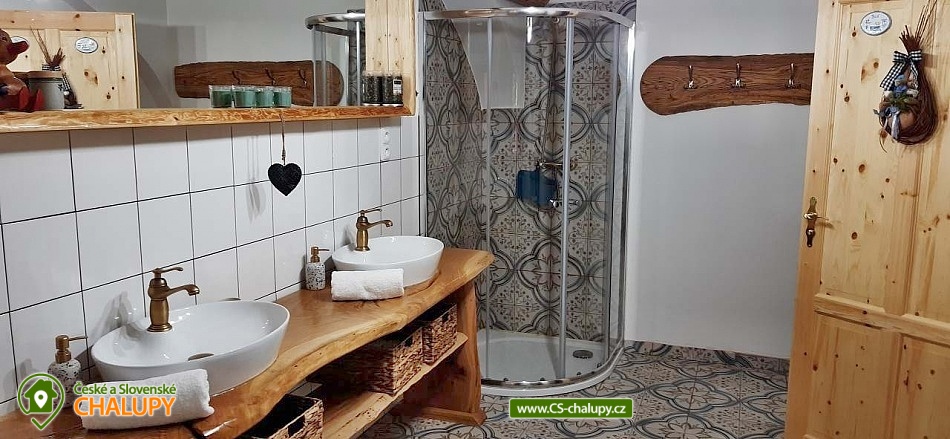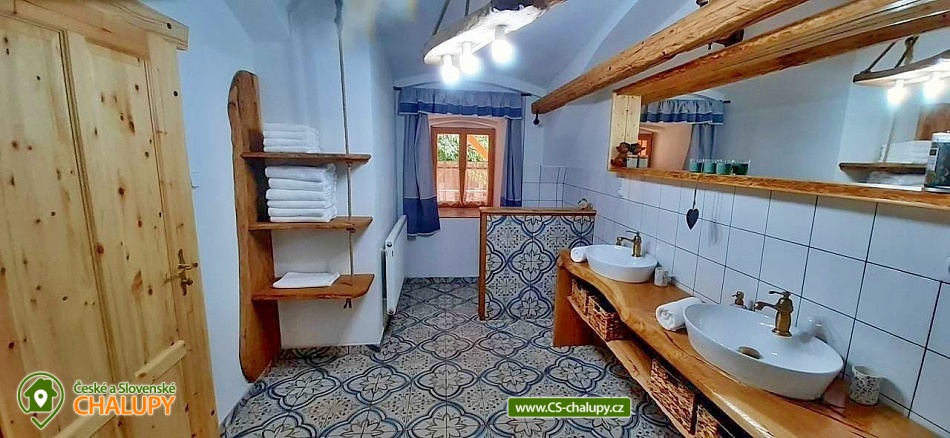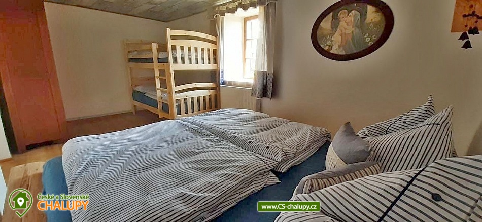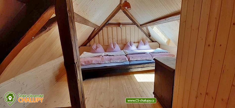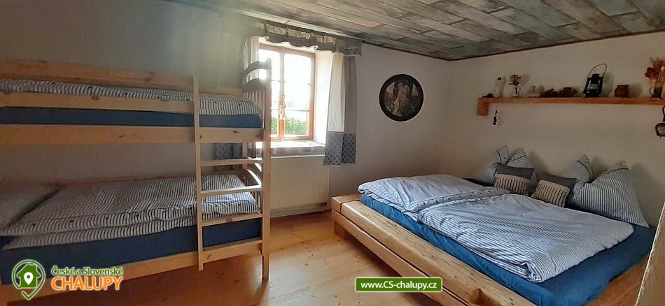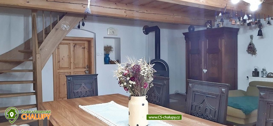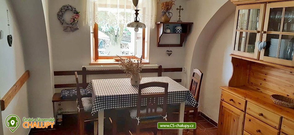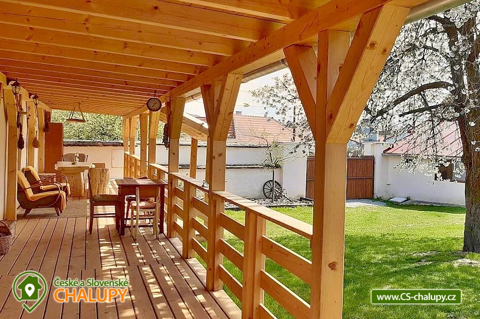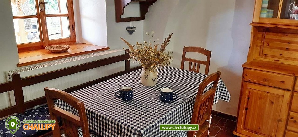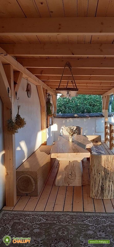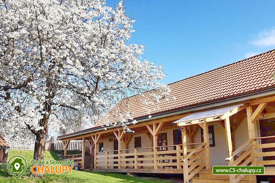 The magical, ancient and newly renovated Chalupa Pod třešní is located in the village of Dešov on the border of the Vysočina region and the South Moravian region, not far from the Vranovská Reservoir. The cottage has a large enclosed yard providing complete privacy and a huge covered porch with seating and a hanging rocking chair. You can look forward to beautiful trips in the surrounding natural landscape or relaxing in a hot tub. The cottage Pod třešní offers accommodation for 15 people in the main building of the cottage and in the cottage. Part of the main building is a living room serving as a common room with a fireplace, sofa bed (2 extra beds), TV, dining table and a fully equipped kitchen with a tiled stove, on which you can cook or even bake. The kitchen also has a fridge, freezer, dishwasher, gas stove, oven, kettle and everything needed for cooking. In the attic of the cottage there is a bedroom with a spacious four-bed and one single bed. Opposite across the yard is a separate room where there are two more four-bed bedrooms. Each bedroom has one double bed and one bunk bed. A cot is available for rent. WIFI internet connection is available throughout the building. The social facilities include two bathrooms with shower and WC, one is located in the main building of the cottage and the other in the outhouse. A washing machine is available. Heating is provided in both parts by a gas boiler and a fireplace stove. Air conditioning is available. Outside, you can spend free time on the covered porch. Behind the cottage is a large garden that connects to the pond. There is a grill and a fire pit. Furthermore, part of the outdoor space is a roofed shed with billiards, darts and a couch. There is a covered playhouse for children, toys, a sandbox, an outdoor kitchen and books are available. They can also look forward to a children's playground with a slide located in the garden. For an additional fee, you can arrange heating and a bath in a bathing barrel (at a temperature of 38 - 40°C), which is pleasant even in cold weather. You can park directly at the building. In the surroundings of the cottage, hiking, cycling, swimming, fishing and mushroom picking are possible. There are tennis courts nearby and a new children's playground about 400 m from the cottage. Swimming options include, for example: Nimpšov swimming pool, Bítovská zátoka, Hrachovec pond, Moravské Budějovice swimming pool, Jemnice Biotop, Vranovská dam, Plichťák dam, Vidlák pond, Jaroměřice nad Rokytnou swimming pool, Dolní Modletický pond, etc. Vranov nad Dyjí, Bítov Castle, Rumburak Lookout and the Red Chapel, Cornštejn Castle Ruins, Jaroměřice nad Rokytnou Castle, Jewish Quarter and Cemetery in Třebíč - UNESCO, St. Prokop's Basilica, Podyjí National Park, Telč and others. We look forward to seeing you here.