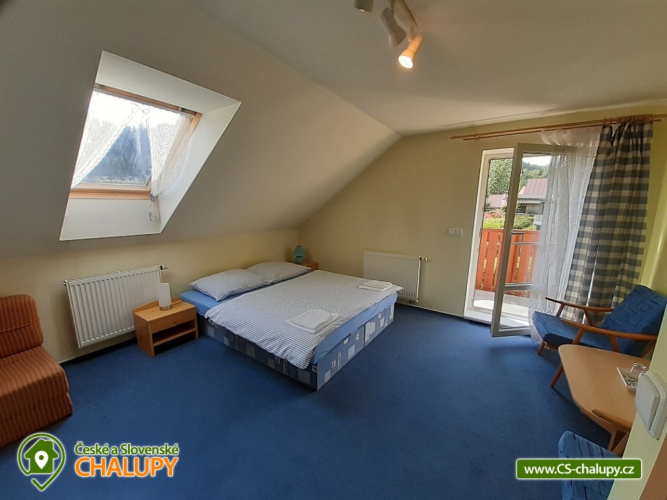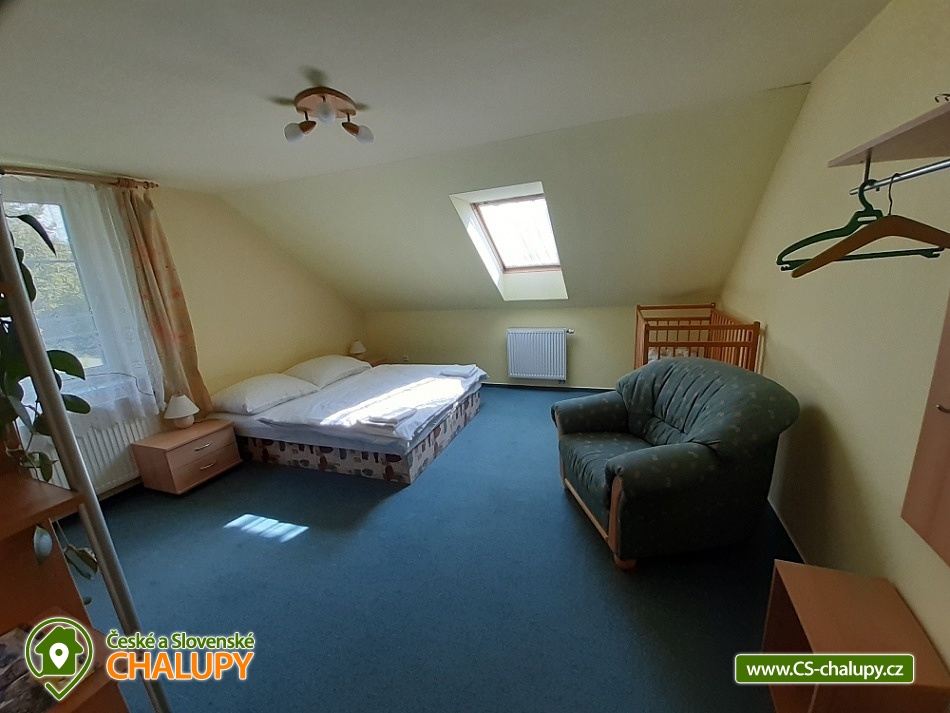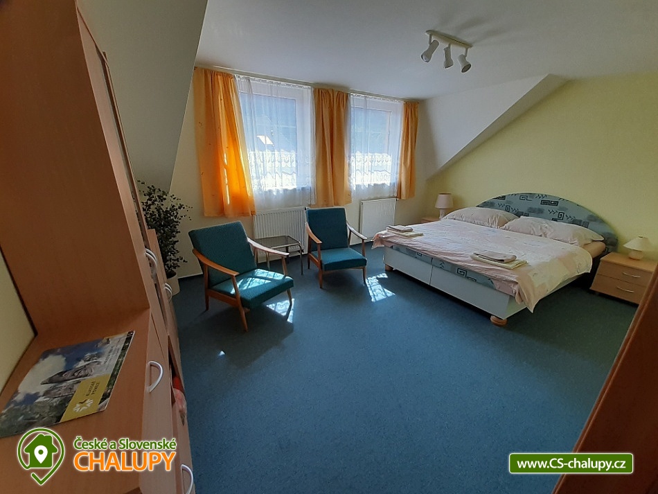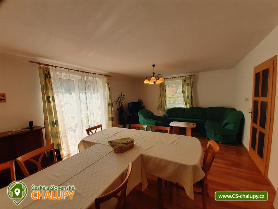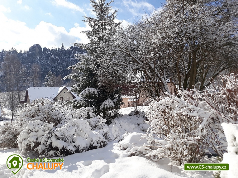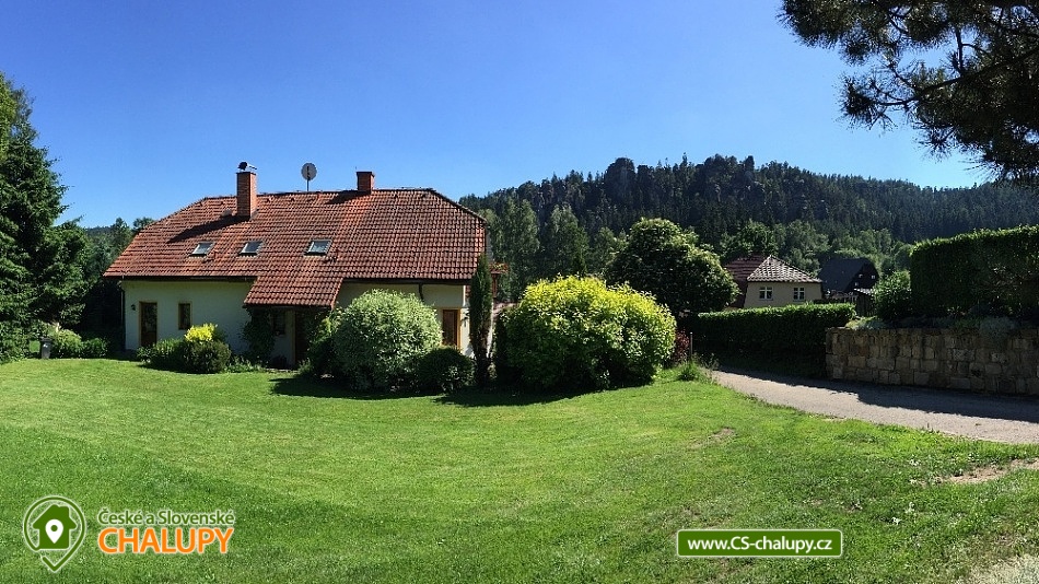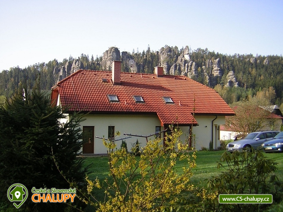 Chalupa u skalního města - CHKO Broumovsko. Chalupa má kapacitu až 15 osob v 6 ložnicích. Chalupa s vyhlídkou na Adršpašské skalní město je situována na jižním svahu proti skalnímu městu, asi 1 km od parkoviště Adršpach. Chalupa nabízí v 1. patře 3 samostatné pokoje (každý s WC a koupelnou) a 1 apartmán (2 pokoje s koupelnou a wc), dva pokoje jsou s balkonem a vyhlídkou na skalní město. V přízemí je 1 bezbariérový pokoj (koupelna, wc) a společenská místnost (sat/TV) s jídelnou pro 12 osob. K dispozici je kompletně vybavená kuchyň s ledničkou, myčkou, el. sporákem, mikrovl. a horkovzd. troubou, toustovač, atd., a jídelním koutem. Venkovní terasa s možností grilování. Dětské postýlky a hřiště s pískovištěm k dispozici. Topení elektrokotel. Vlak i autobus jsou v místě. Chalupa se nachází v chráněné krajinné oblasti, která láká k turistice, cykloturistice, horolezectví a odpočinku. K nejvyhledávanějším místům patří skalní města Adršpach, Teplice nad Metují, Ostaš, Broumovské stěny, polská skalní města a jejich okolí. Za návštěvu dále určitě stojí Broumov - benediktinský klášter, muzeum, skupina broumovských kostelů. Police nad Metují - muzeum, klášter, muzeum stavebnice Merkur, papírové muzeum. Broumovské stěny - Hvězda, Slavný. Jiráskovy skály. Kuks. Zámek Náchod, Nové Město nad Metují. Ratibořice - Babiččino údolí, Dobrošov - dělostřelecká pevnost, Zoo ve Dvoře Králové nad Labem, Trutnov, Krkonoše, Sněžka. V obci je hraniční přechod do Polska, kde lze navštívit další skalní města, zoo, zámek Ksiaz (jeden z největších polských zámků), aquapark, muzeum hornictví, podzemní komplexy ze 2.světové války, lázeňská města a tržnice. Těšíme se na Vás u nás.