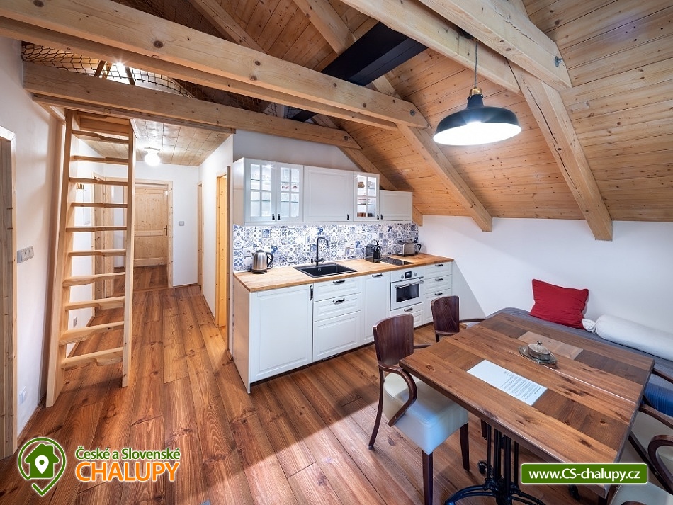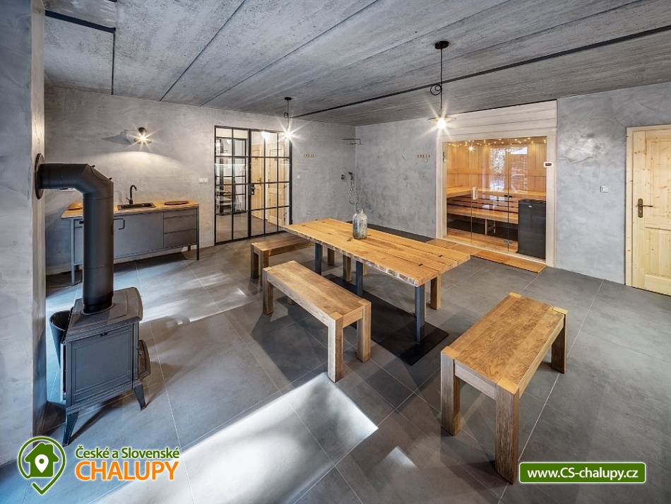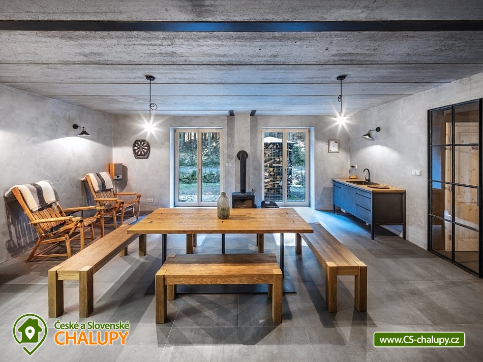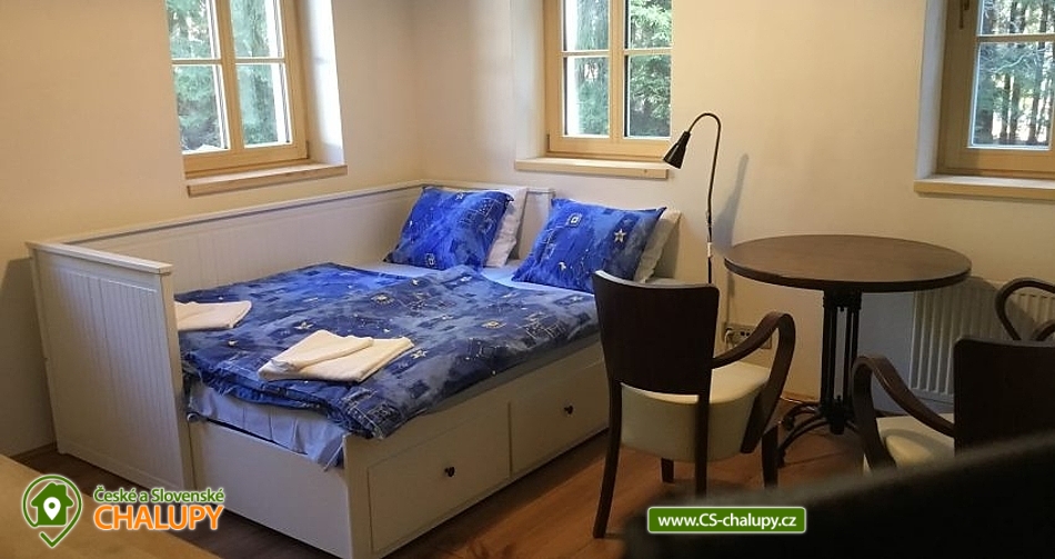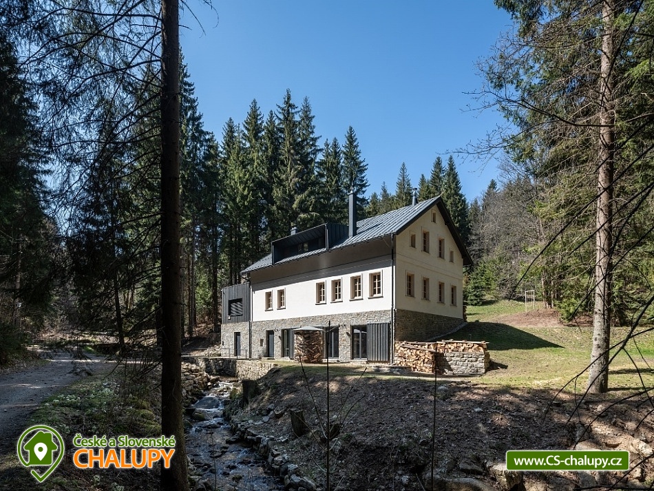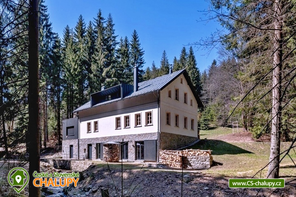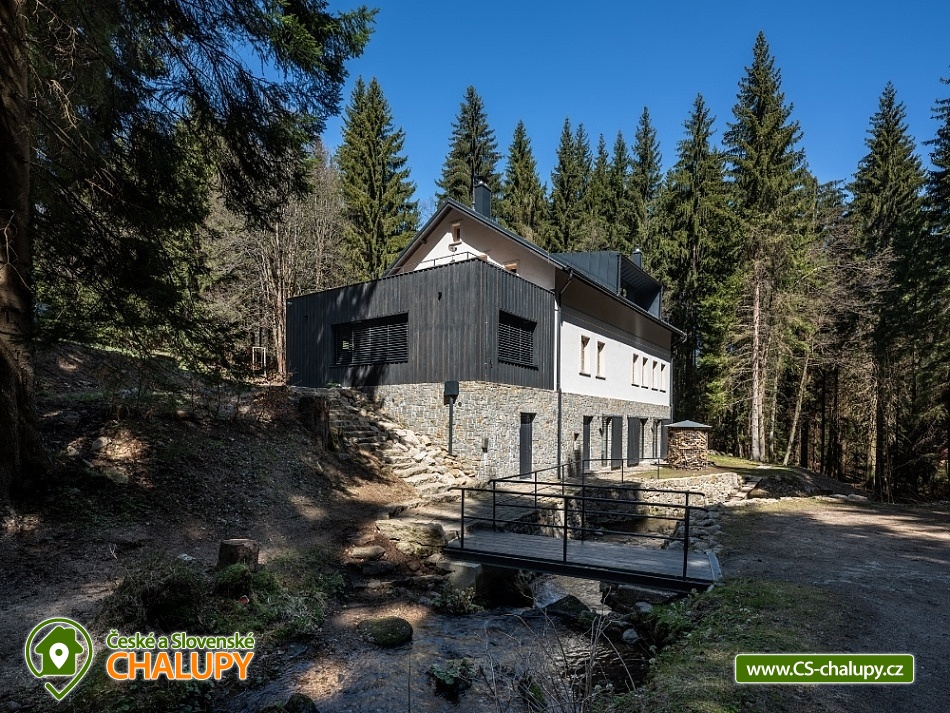 Chalupa u Tesařovského potoka - Krkonoše a Jizerky. Chalupa se saunou se nachází na romantické samotě v lese na rozhraní Krkonošského národního parku a Chráněné krajinné oblasti Jizerské hory. Chalupa nabízí ubytování ve dvou nadstandardně zařízených apartmánech. Každý apartmán umožňuje komfortní ubytování čtyřem osobám, s přistýlkami pak šesti osobám (apartmán L) , resp. sedmi osobám (apartmán P). Některé přistýlky jsou vhodné pouze pro děti do 12-ti let. Maximální celková kapacita obou apartmánů je tedy 13 osob (max. 10 dospělých). Apartmán "L" má dvě samostatné ložnice (každá je vybavena manželskou postelí), jídelnu s kuchyňským koutem, sprchový kout a dvě toalety. Kuchyňský kout je vybaven veškerým potřebným nádobím, včetně rychlovarné konvice a opékače toastů, el. varnou deskou, kombinovanou troubou (elektrický gril, mikrovlnka), lednicí, myčkou nádobí, odsavačem par, krbovými kamny, TV a také kapslovým kávovarem Nespresso. V apartmánu je přistýlka (rozkládací gauč pro dvě osoby) situována v jídelně. Přistýlka (pro dvě osoby) je vhodná jak pro děti, tak pro dospělé. Apartmán "P" má dvě samostatné ložnice (každá je vybavena manželskou postelí), jídelnu s kuchyňským koutem, sprchový kout a dvě toalety. Kuchyňský kout je vybaven veškerým potřebným nádobím, včetně rychlovarné konvice a opékače toastů, el. varnou deskou, kombinovanou troubou (elektrický gril, mikrovlnka), lednicí, myčkou nádobí, odsavačem par, krbovými kamny, TV a také kapslovým kávovarem Nespresso. V apartmánu je přistýlka pro dvě osoby na tzv. hambálku (půda) přístupném po mlynářských schodech. Přistýlka je vhodná zejména pro děti, ale i pro sportovně založené dospělé menšího vzrůstu. V případě potřeby je možné jako další lůžko využít i gauč v jídelně s kuchyňským koutem. Kromě popsaných apartmánů disponuje chalupa vlastní kombinovanou saunou (klasická + infrazářiče) pro max. 6 osob a společenskou místností pro až 13 osob. Ve společenské místnosti jsou k dispozici šipky, karty, společenské hry a ozvučení (CD přehrávač se zesilovačem a reprobednami), na vyžádání pak projektor a promítací plátno. V celém objektu je Wi-Fi připojení. Přímo na místě lze zakoupit omezený sortiment nápojů (víno, pivo, balenou vodu a kapsle do kávovaru Nespresso). Kola, lyže, kočárek, atp. lze uschovat v samostatné, alarmem chráněné a vyhřívané místnosti. Přímo před objektem lze zdarma parkovat (chalupa je přístupná po lávce přes Tesařovský potok). U objektu je dále k dispozici menší hřiště (cca 12 x 6 m) na volejbal, badminton nebo jiné sporty a také kryté venkovní posezení. Síť, míč, rakety na badminton, atp. jsou zdarma k zapůjčení v chalupě. Rovněž tak plynový zahradní gril (za poplatek). V celém objektu je zákaz kouření! V okolí: Oblíbené lokality jsou na dosah nejen na území Jizerských hor, ale i Krkonoš mezi nejznámější z nich patří osada Jizerka, rašeliniště na Smědavě, rozhledna Štěpánka, golfové hřiště Mýtiny (Harrachov), Mumlavský vodopád, Dvoračky, vodní nádrž Souš, pramen Labe, naučná stezka Jizerských hor, a mnoho dalších. Navštívit se dá taky polská strana - třeba Szklarki vodopád a Sklarska Poręba. Chalupa je ideálním východiskem pro letní i zimní sporty, hlavně pěší turistiku, cykloturistiku, golf, běžecké a sjezdové lyžování. Zimních radovánek si můžete do sytosti užít na sjezdovkách v Harrachově, Příchovicích a Rejdicích. Na běžky se můžete vydat třeba po proslulé Jizerské magistrále. V letních měsících je možné vyrazit za vodními hrátkami v okolí nebo na golf v Harrachově, kde najdete také squashové kurty nebo fitness centrum. Tenisové kurty jsou pak v nedalekém Tanvaldu. Na své si přijdou také milovníci cykloturistiky a samozřejmě houbaři.