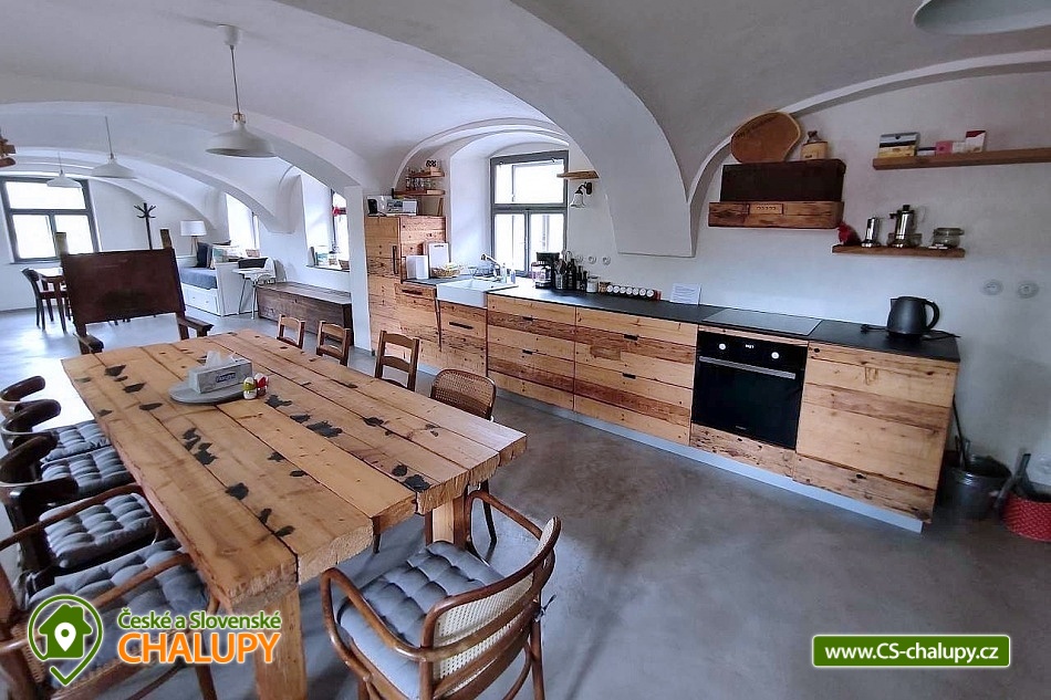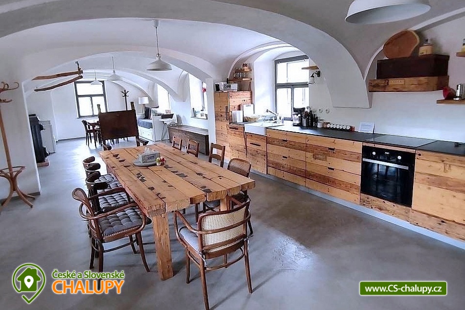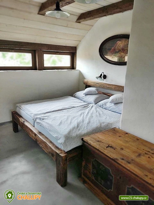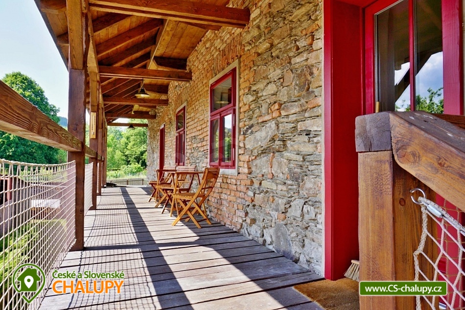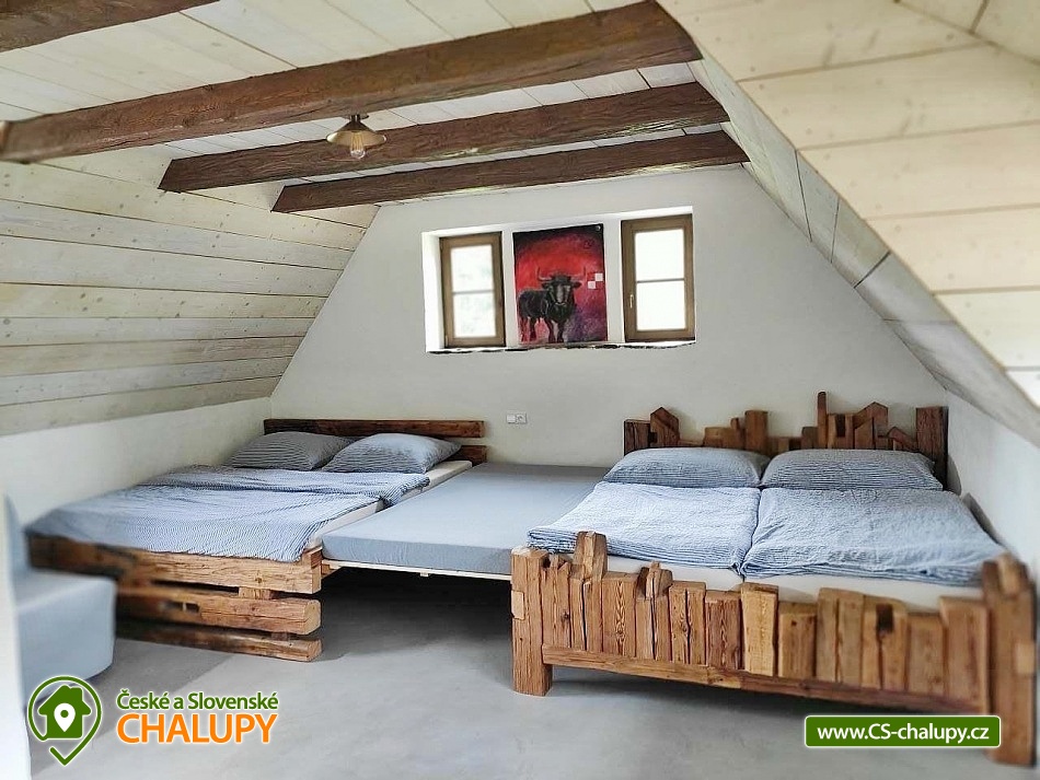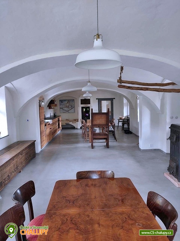 Cottage by the water mill - located near the highest peak of Devět skal in the Žďárské vrchy Protected Landscape Area. The cottage is part of the water mill complex, whose history dates back to the 15th century, and a small hydroelectric power plant is still operational there - there is a possibility of natural swimming right next to the cottage. The cottage can accommodate up to 13 people in 3 bedrooms. DESCRIPTION: Access to the property is via external stairs via a roofed porch (terrace) with an outdoor seating area, from which you enter the interior of the cottage. The entrance hallway has hangers and a sink. The spacious living room with vaulted ceilings is equipped with a dining and kitchenette, a fireplace insert and 2 sofa beds (both sofas offer full sleeping space for 2 people). There is direct access from the living room to the roofed porch (terrace). Another space on the ground floor is a bathroom with a shower and toilet. A high chair is available for small children, and a travel cot and a bath tub are available on request. From the entrance hall, stairs lead to the attic, where there are 3 separate bedrooms, a second bathroom (shower, sink) and a separate toilet. The layout of the beds in the bedrooms is as follows: 1. with a double bed, 2. with a double bed and 3. with 2 double beds and a sofa bed for 1 person, with the possibility of adding 1 additional sleeping place. The kitchenette has a ceramic hob (4 cooking units), electric oven, fridge with small freezer compartment, dishwasher, microwave, coffee maker, capsule coffee maker (Tchibo), toaster and electric kettle. WIFI is available in the living room. In the basement of the cottage under the porch (terrace) there is a cellar suitable for storing bicycles and skis. The cottage is located on an unfenced plot, where guests can use a fireplace and a portable grill. Sanitary facilities - The cottage has 2 toilets and 2 showers. Heating - The property is heated by electric underfloor heating and a fireplace insert in the living room. The property has a paved parking area for 3 cars and a grassy area for any additional cars. NOTE: The cottage is located near the Svratka River, from which a watercourse (up to 1.5m deep) leads to the cottage (to the mill). ATTENTION! The watercourse is free to enter, there is no railing, fence or playpen. Therefore, caution should be taken when moving children!!! The power plant staff may occasionally come to the mill area to clean and maintain the watercourse. SURROUNDINGS: Ruins of Štarkov Castle near Jimramova, Prosíčka Rock Lookout, Jimramov Ski Resort - skiing, Dalečín Ski Resort - skiing, Ruins of Dalečín Castle, Dráteničky Rock Formation, Drátenická Rock, Pasecká Rock, Devět Skal, Medlov, Sykovec and Milovský Ponds, Polička Swimming Pool and Karasín Lookout Tower. We look forward to seeing you here.