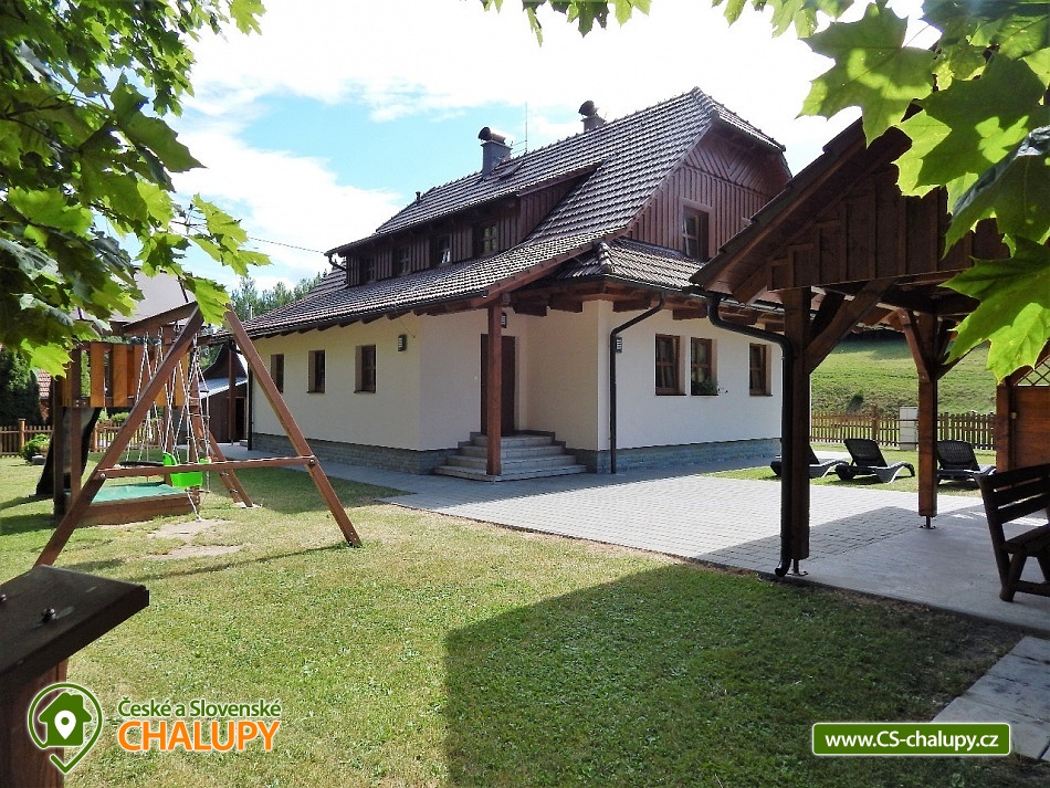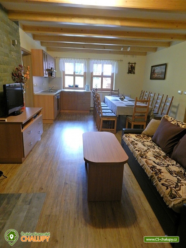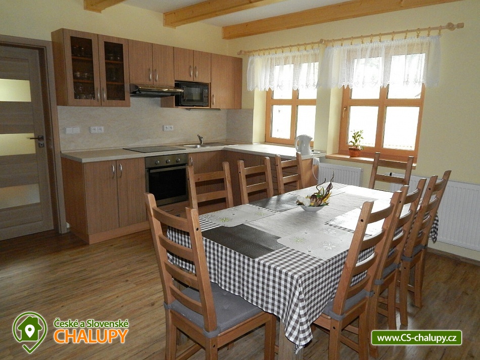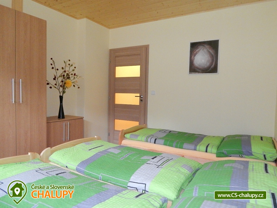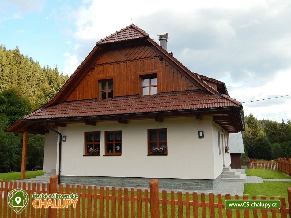 Chalupa v srdci Valašska - poloha na rozhraní Javorníků a Beskyd. Chalupa k pronájmu pro až 20 osob ve 2 apartmánech se nachází západně od centra Velkých Karlovic v malebném údolí. Nabízíme i bezbariérové ubytování v přízemí ve velké bytové jednotce, kde se nachází upravená bezbariérová prostorná koupelna, kuchyň s posezením i ložnice v přízemí. V chalupě je celkem 6 ložnic, ubytovat se je možné v malém apartmánu o kapacitě 8-mi lůžek nebo ve velkém apartmánu o kapacitě 12-ti lůžek (popř. obsadit celou chalupu - 20 lůžek). I v případě, že obsadíte pouze malý apartmán budeme garantovat, že zbývající lůžka (chalupa) zůstanou neobsazená a celá zahrada je k dispozici pouze pro Vás. Vaše soukromí a pohodlí je pro nás prioritou. K dispozici je vybavená kuchyň vč. lednice, mikrovlnné trouby, varné konvice, sporáku a dalších elektrických spotřebičů. Chalupa je dále vybavena TV a SAT, DVD přehrávačem a internetem, který je samozřejmě v ceně pobytu. K vytápění lze použít krbová kamna nebo elektrokotel. Součástí objektu je oplocená zahrada, ve které máte možnost venkovního posezení a grilování. Pro vyžití Vašich dětí je pak připraveno pískoviště a houpačka. U chalupy je i prostor pro uložení kol, kočárků nebo lyží. V objektu se nachází celkem 4 sprchové kouty a WC, z toho 1 sprchový kout ve velké bytové jednotce je uzpůsoben pro méně pohyblivé. Parkování je možné přímo u objektu. Pokud patříte mezi milovníky turistiky, cykloturistiky, houbaření nebo lyžování, nebo snad jen chcete poznat život na Valašsku, odpočinout si od každodenních starostí, užít si odpočinku s možností kdykoli vyjít do přírody a přitom být na místě i v zimě lehce dostupném autem, nemůžete si snad vybrat lepší místo. Nabízíme Vám ubytování na rozhraní Javorníků a Beskyd v centru turistiky na Valašsku. V zimních měsících bývá tento kraj hojně navštěvován především lyžaři. Jsou zde lyžařská střediska s moderními vleky. Začátečníci a zdatnější lyžaři mají vytvořeny vhodné podmínky. Zájemci o běžecké lyžování mohou využít různě náročné upravené běžecké trasy. Rádi Vám po příjezdu poradíme. Těšíme se na Vás u nás.