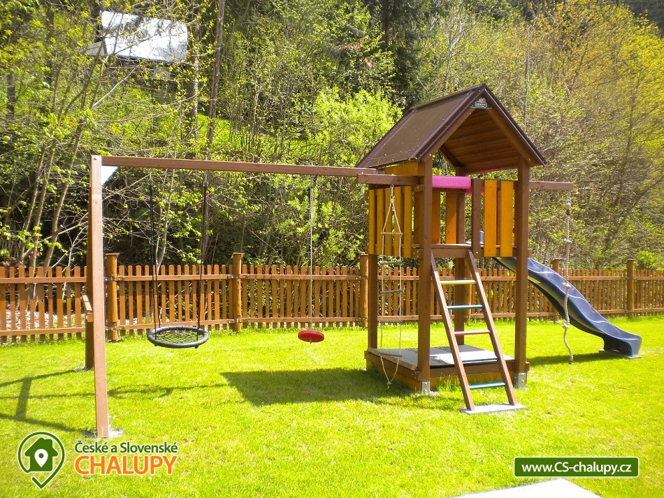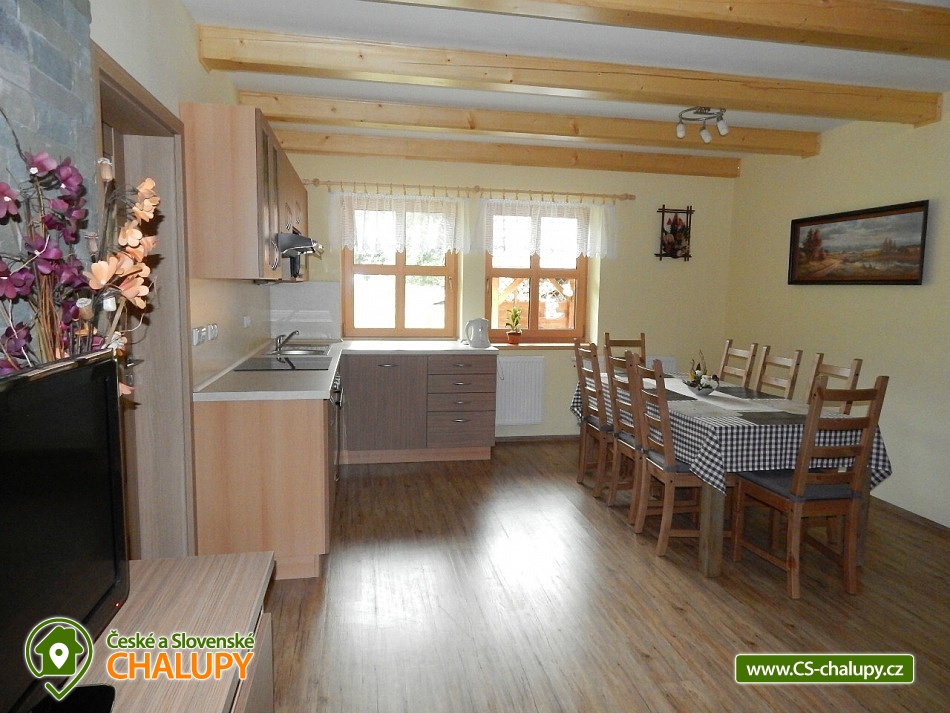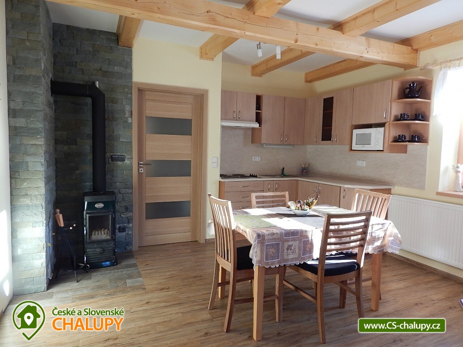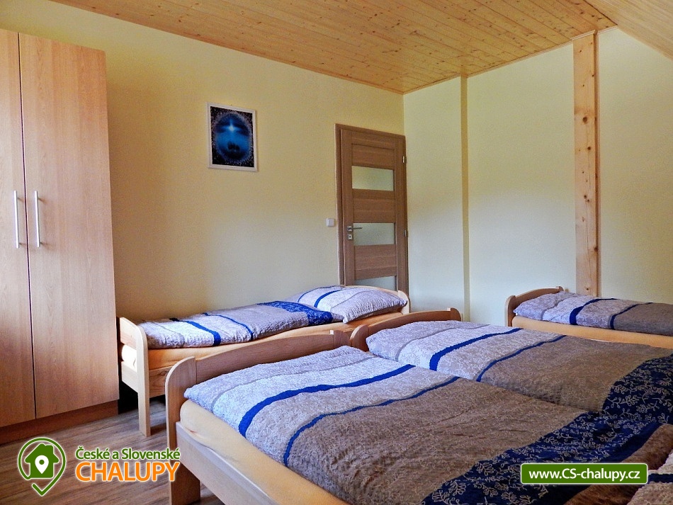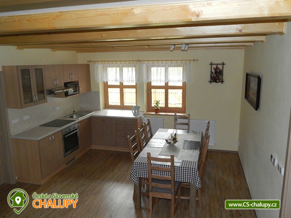 Chalupa v srdci Valašska - poloha na rozhraní Javorníků a Beskyd. Chalupa k pronájmu pro až 20 osob ve 2 apartmánech se nachází západně od centra Velkých Karlovic v malebném údolí. Nabízíme i bezbariérové ubytování v přízemí ve velké bytové jednotce, kde se nachází upravená bezbariérová prostorná koupelna, kuchyň s posezením i ložnice v přízemí. V chalupě je celkem 6 ložnic, ubytovat se je možné v malém apartmánu o kapacitě 8-mi lůžek nebo ve velkém apartmánu o kapacitě 12-ti lůžek (popř. obsadit celou chalupu - 20 lůžek). I v případě, že obsadíte pouze malý apartmán budeme garantovat, že zbývající lůžka (chalupa) zůstanou neobsazená a celá zahrada je k dispozici pouze pro Vás. Vaše soukromí a pohodlí je pro nás prioritou. K dispozici je vybavená kuchyň vč. lednice, mikrovlnné trouby, varné konvice, sporáku a dalších elektrických spotřebičů. Chalupa je dále vybavena TV a SAT, DVD přehrávačem a internetem, který je samozřejmě v ceně pobytu. K vytápění lze použít krbová kamna nebo elektrokotel. Součástí objektu je oplocená zahrada, ve které máte možnost venkovního posezení a grilování. Pro vyžití Vašich dětí je pak připraveno pískoviště a houpačka. U chalupy je i prostor pro uložení kol, kočárků nebo lyží. V objektu se nachází celkem 4 sprchové kouty a WC, z toho 1 sprchový kout ve velké bytové jednotce je uzpůsoben pro méně pohyblivé. Parkování je možné přímo u objektu. Pokud patříte mezi milovníky turistiky, cykloturistiky, houbaření nebo lyžování, nebo snad jen chcete poznat život na Valašsku, odpočinout si od každodenních starostí, užít si odpočinku s možností kdykoli vyjít do přírody a přitom být na místě i v zimě lehce dostupném autem, nemůžete si snad vybrat lepší místo. Nabízíme Vám ubytování na rozhraní Javorníků a Beskyd v centru turistiky na Valašsku. V zimních měsících bývá tento kraj hojně navštěvován především lyžaři. Jsou zde lyžařská střediska s moderními vleky. Začátečníci a zdatnější lyžaři mají vytvořeny vhodné podmínky. Zájemci o běžecké lyžování mohou využít různě náročné upravené běžecké trasy. Rádi Vám po příjezdu poradíme. Těšíme se na Vás u nás.